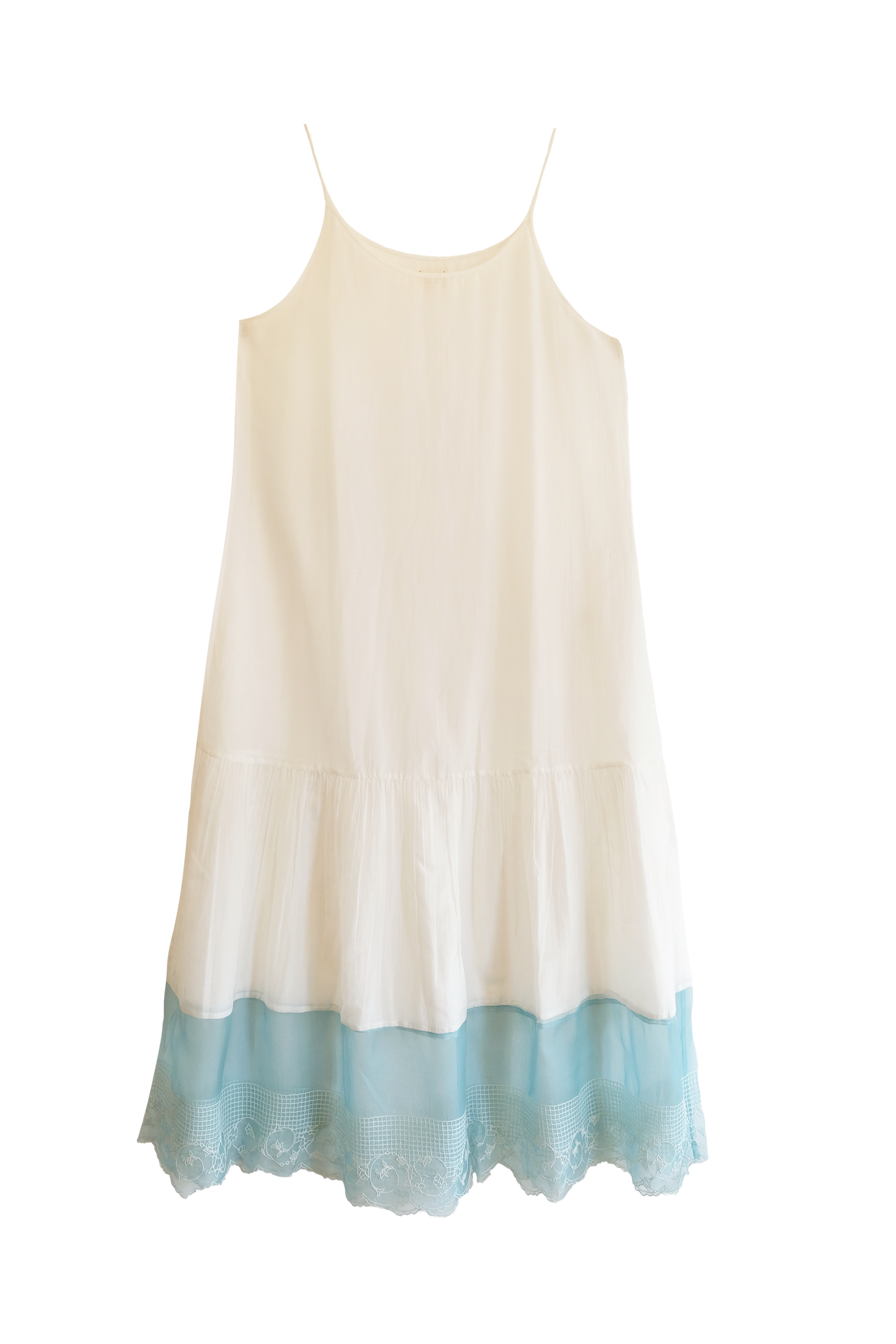 A tiered lining in cotton silk, adorned with an embroidered organza trim along the hem, beautifully highlighted by intricate thread and zari work throughout.