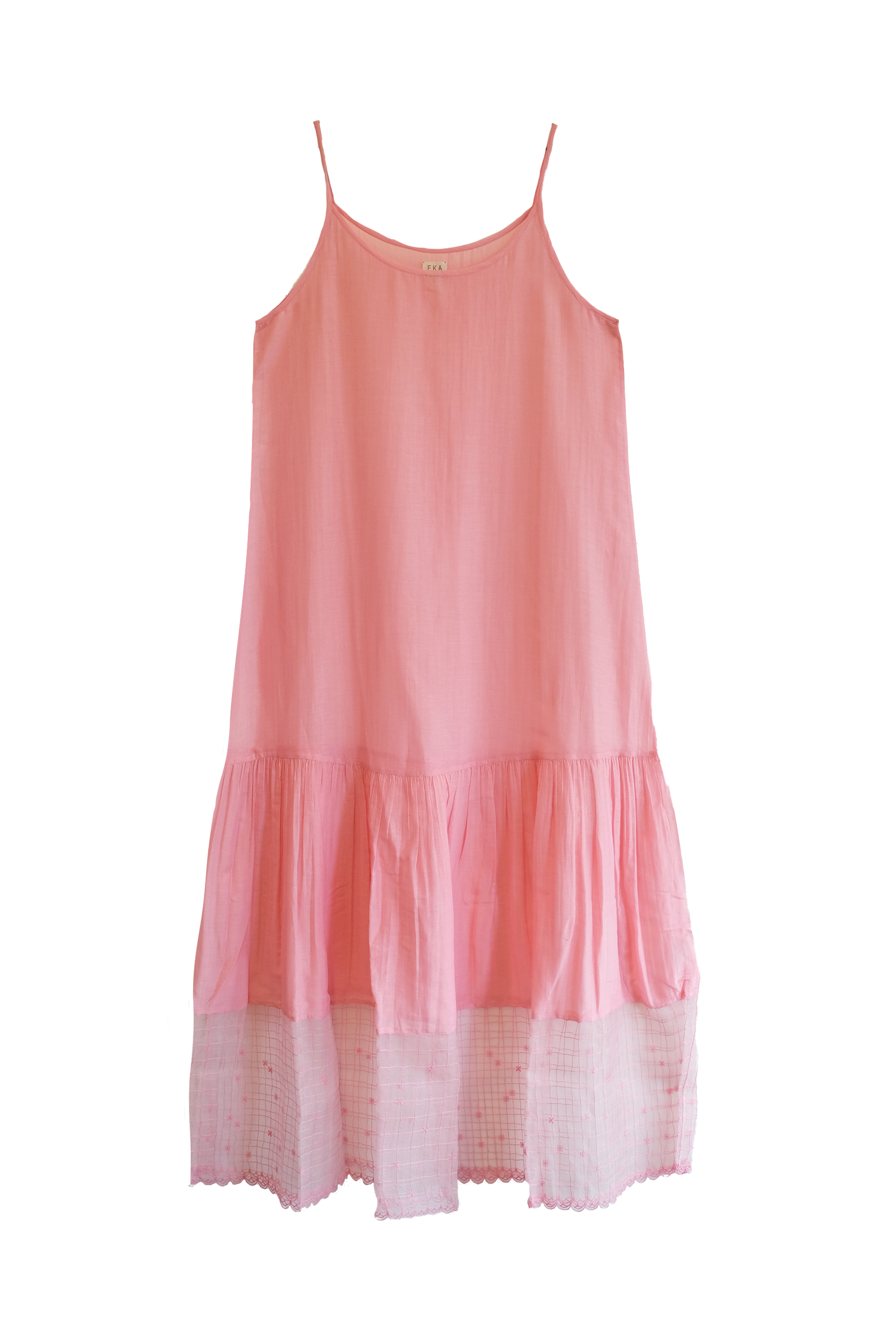 A tiered lining in cotton silk, adorned with an embroidered organza trim along the hem, beautifully highlighted by intricate thread and zari work throughout.