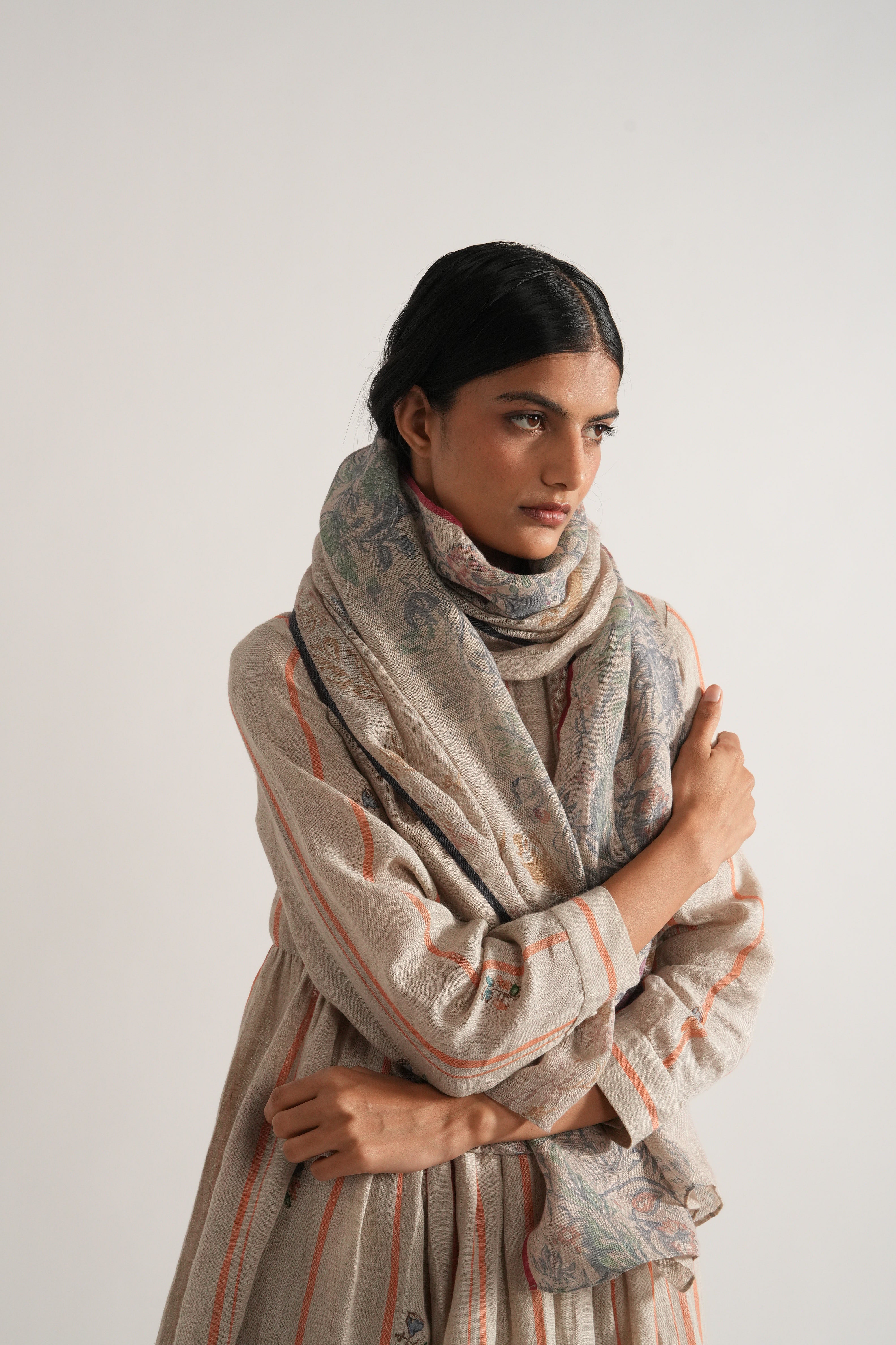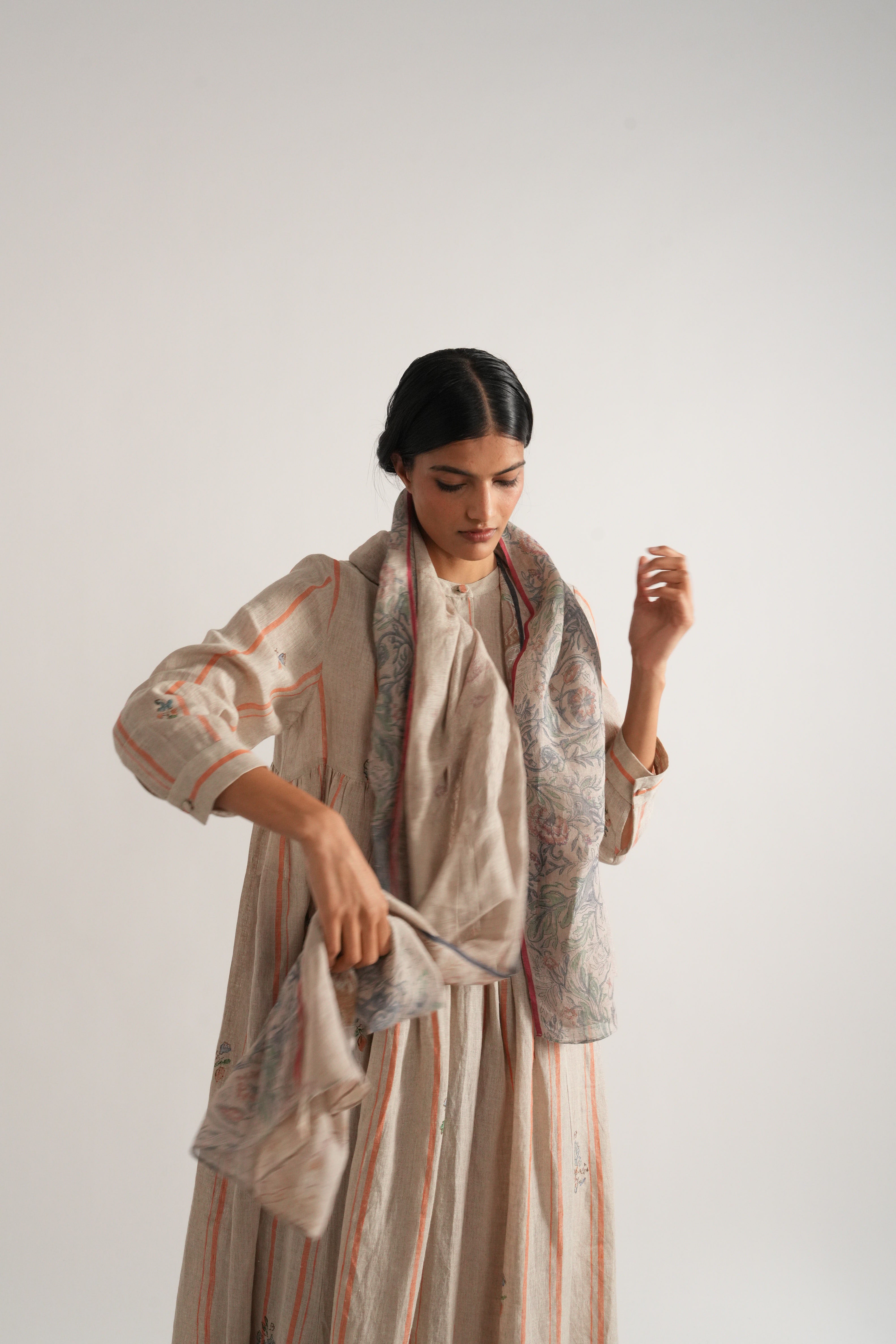 Stole in hand block printed handwoven linen gauze with complimenting selvage