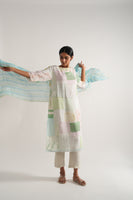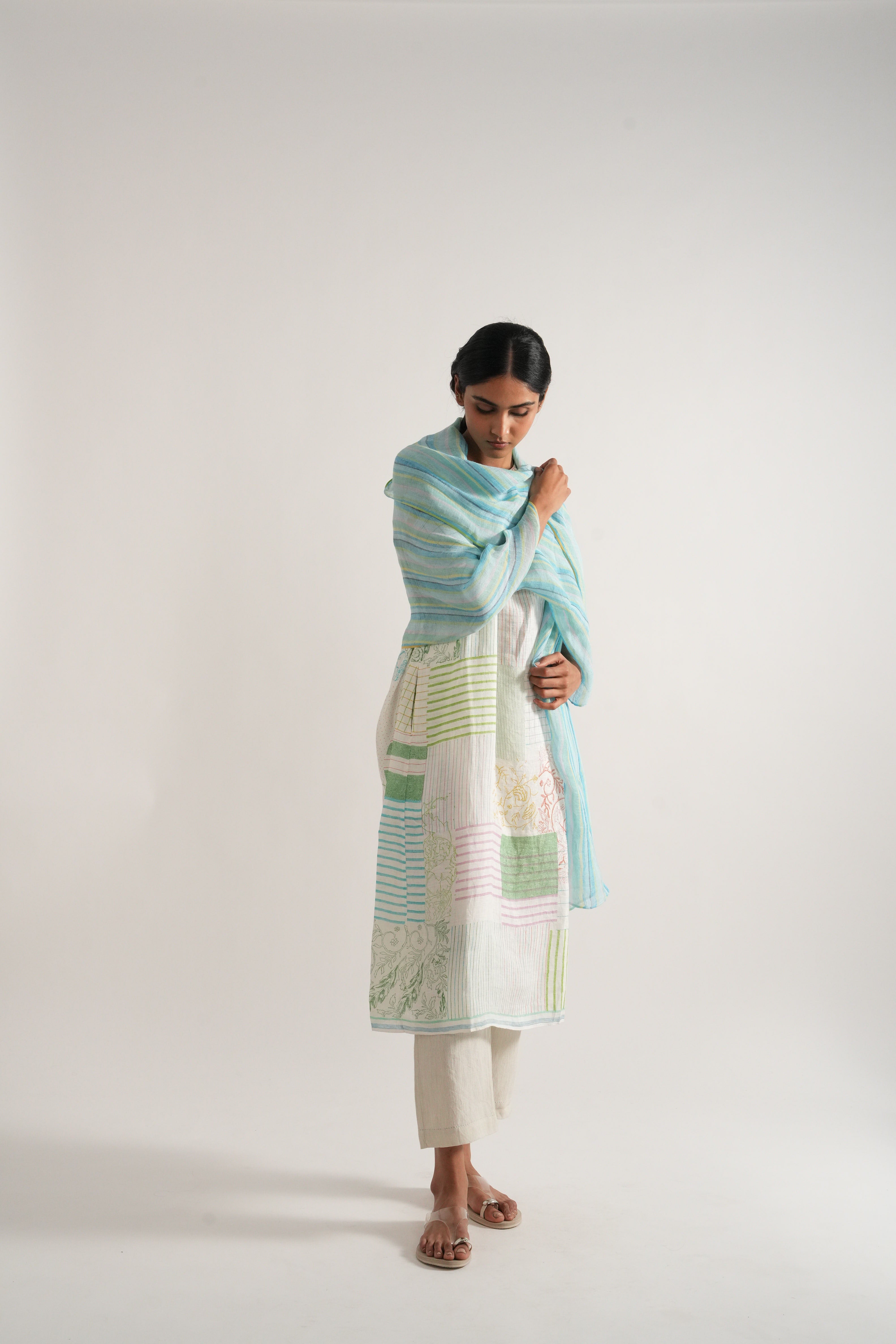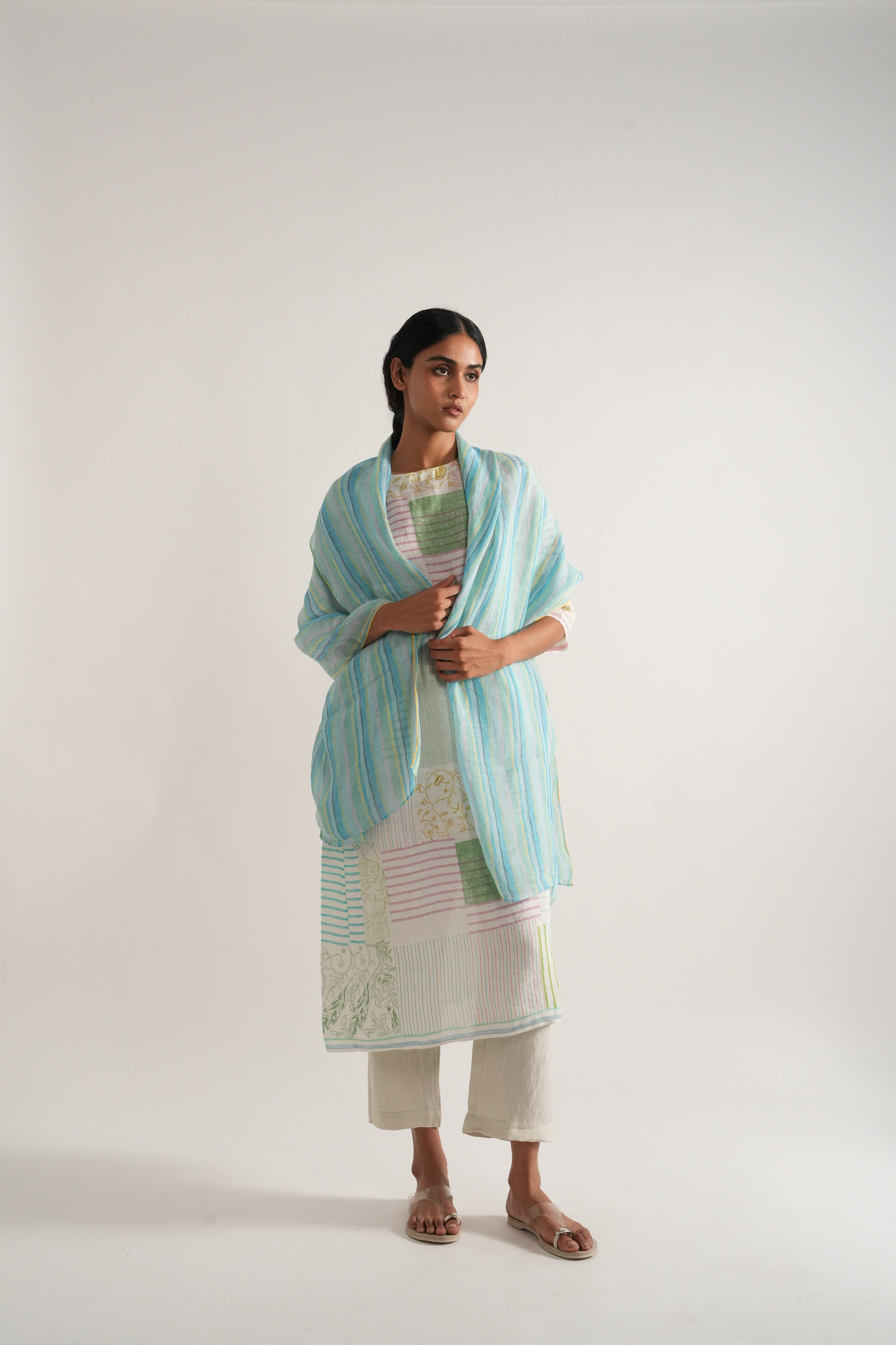 Stole in multicolor yarn dyed stripes in handwoven linen gauze