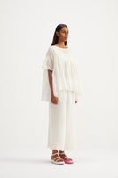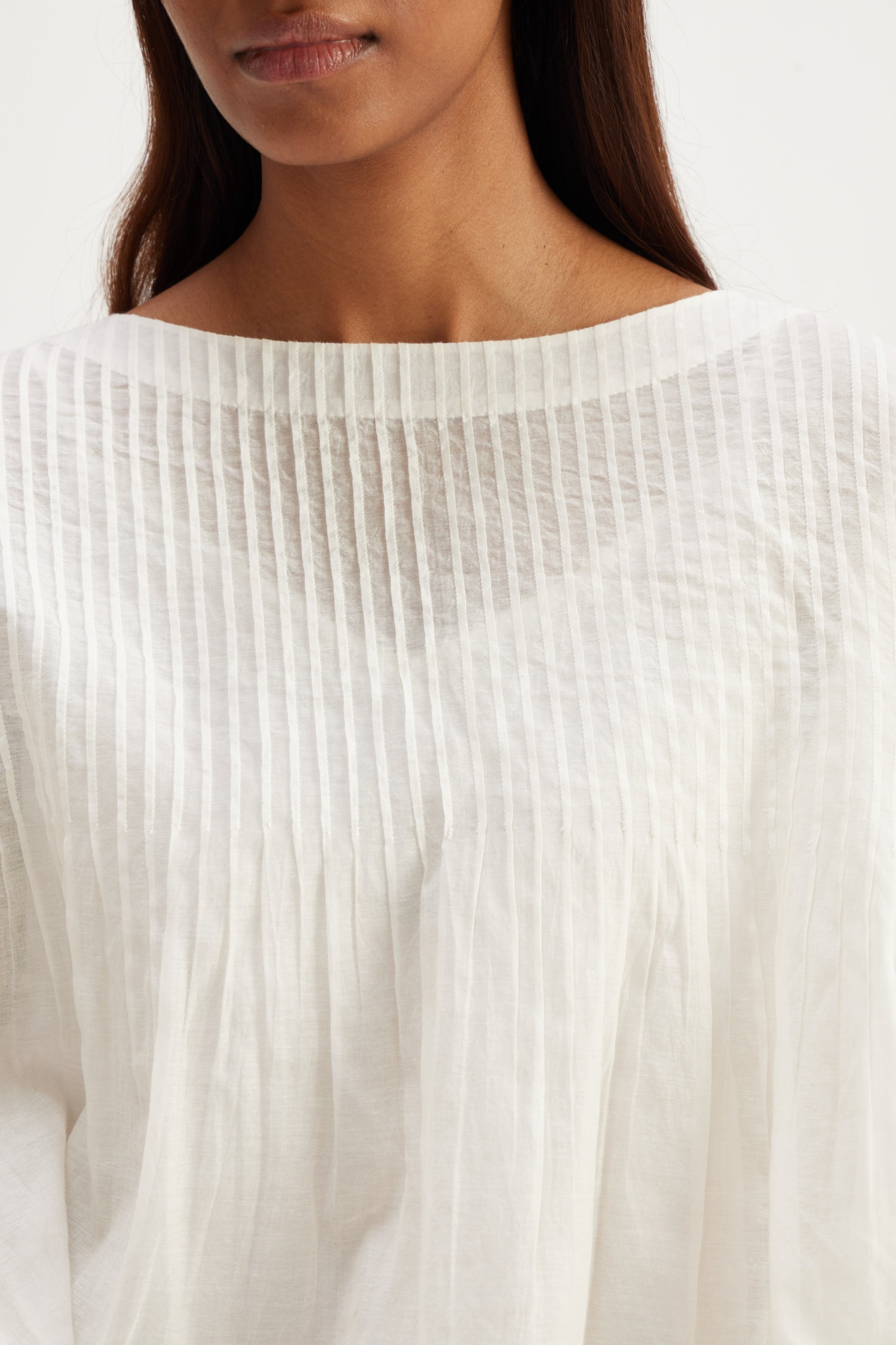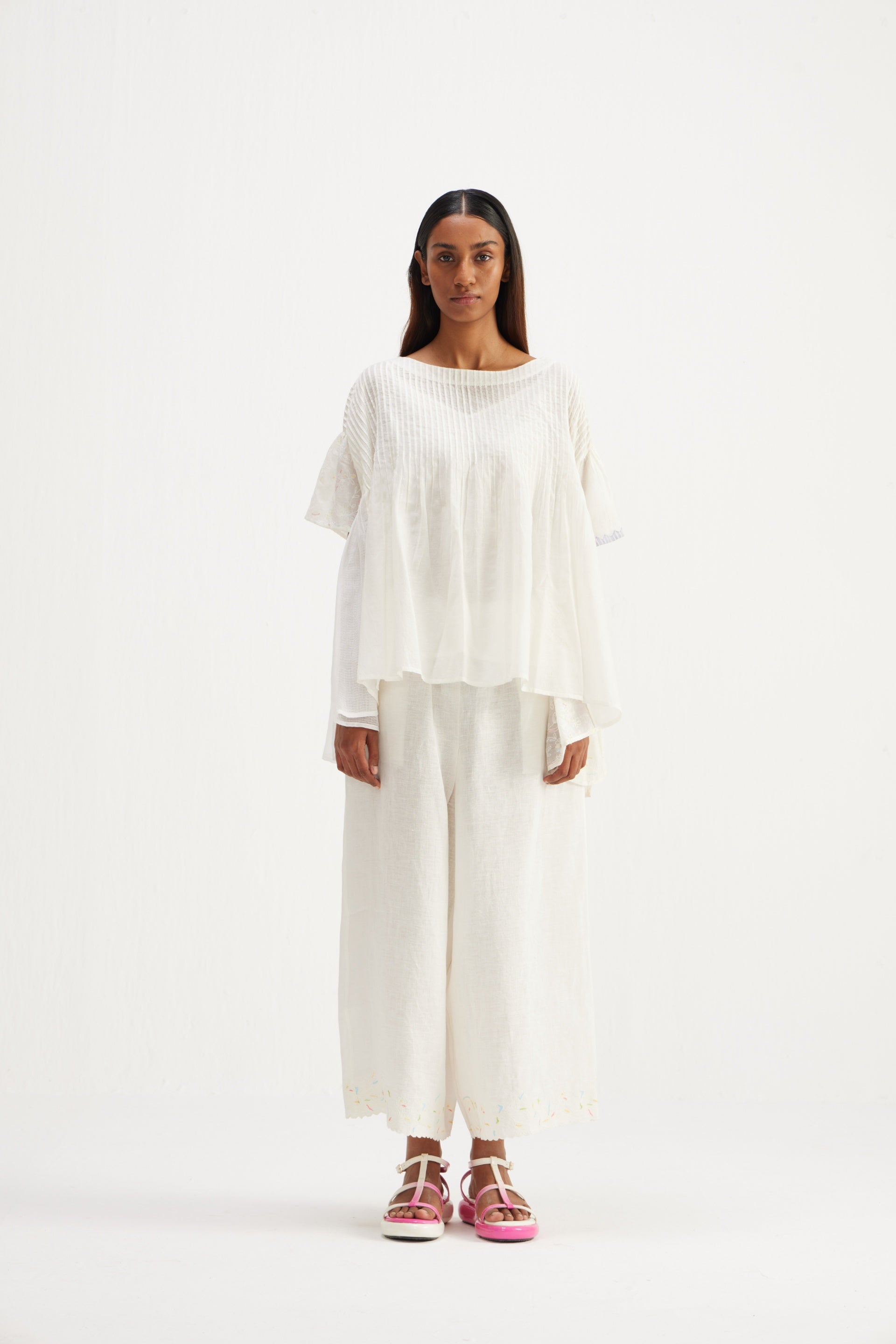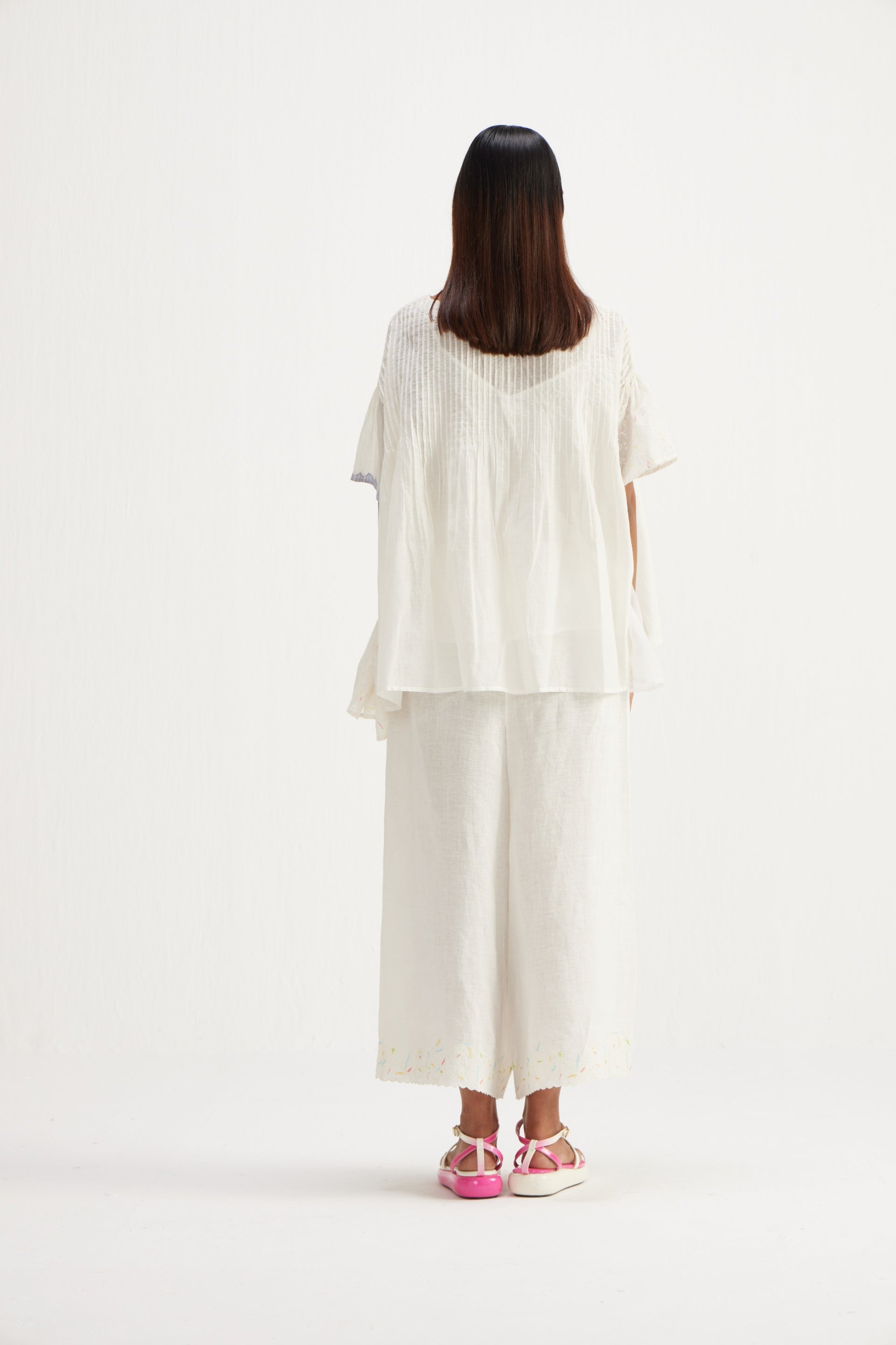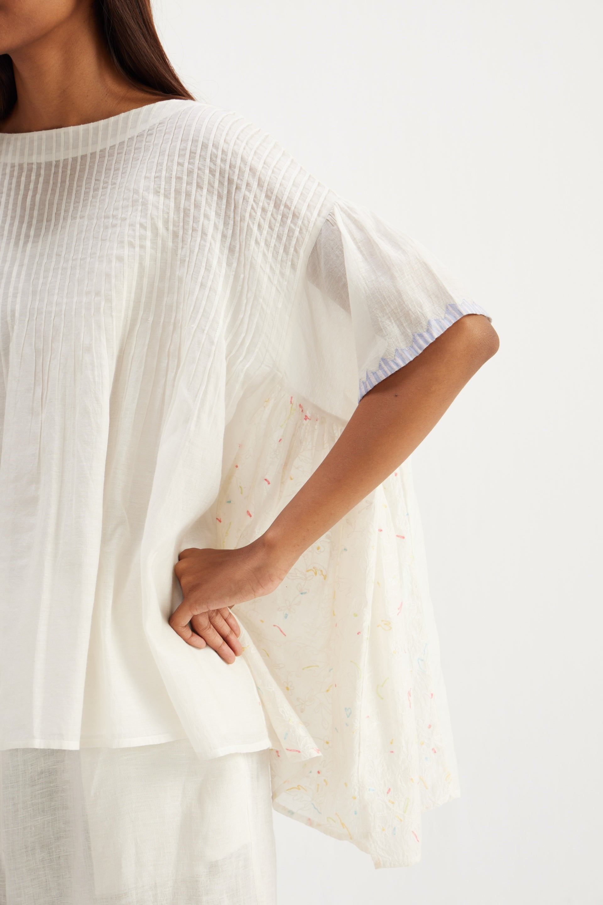 Oversized top with pintucks, delicate floral embroidery and printed chevron applique detail. Comes with a seperate cotton silk lining.
