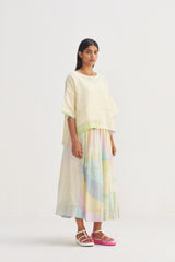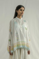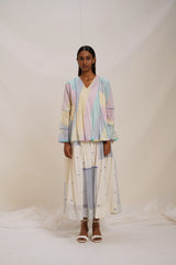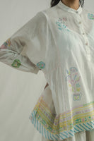 A relaxed-fit stand collar top with a front placket , featuring gathered kota on the sides. Crafted from a multi-color handblock printed cotton-silk blend, with an all-over placement print . Comes with a separate cotton silk lining .