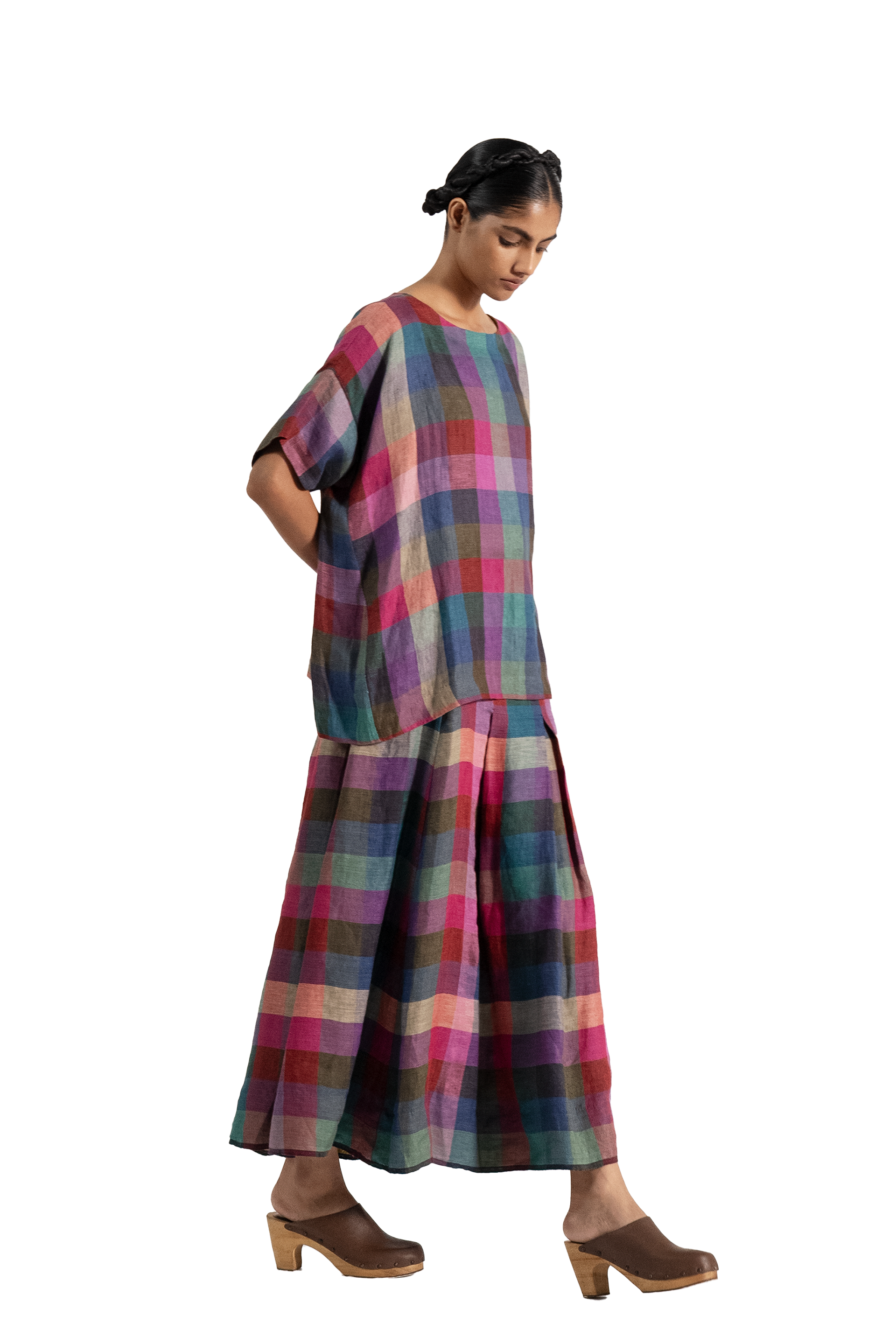 Boat Neck One Size Top With Shoulder Drop Detail In 100% Linen Twill.