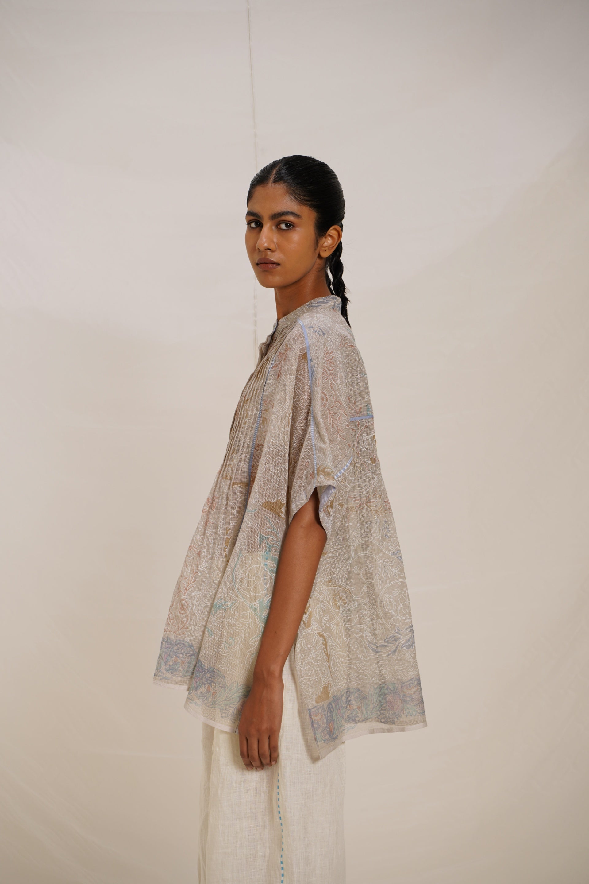 Short top a delightful mix of vibrant floral patterns and contrasting details in all over floral print and contrast border design. The floral motifs are carefully designed and the cropped silhouette adds a modern, youthful vibe the fabric allows the floral print to maintain its vibrancy, ensuring that the colors remain rich and eye-catching. 5 blocks are used to make a complete pattern. Comes with a separate lining.