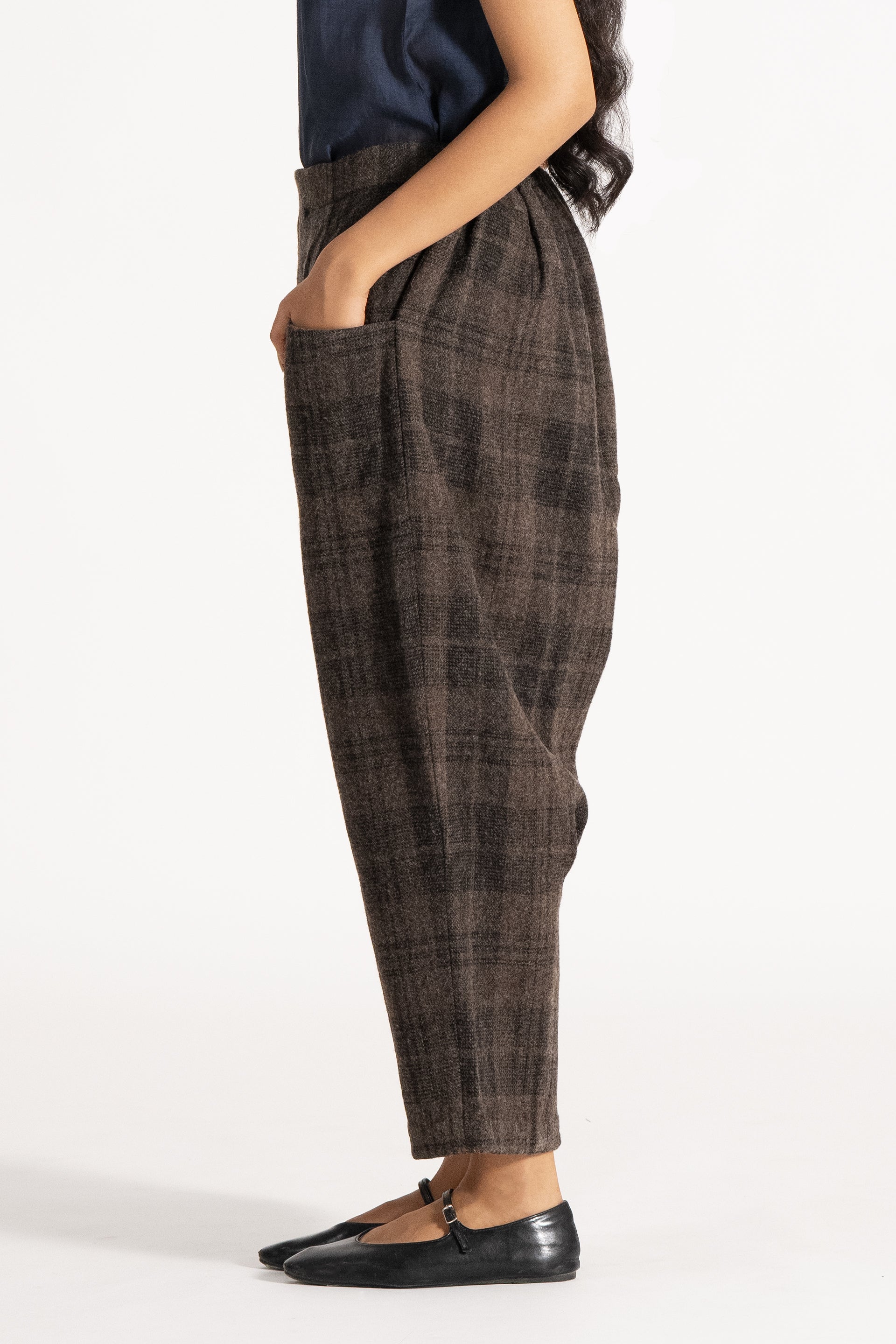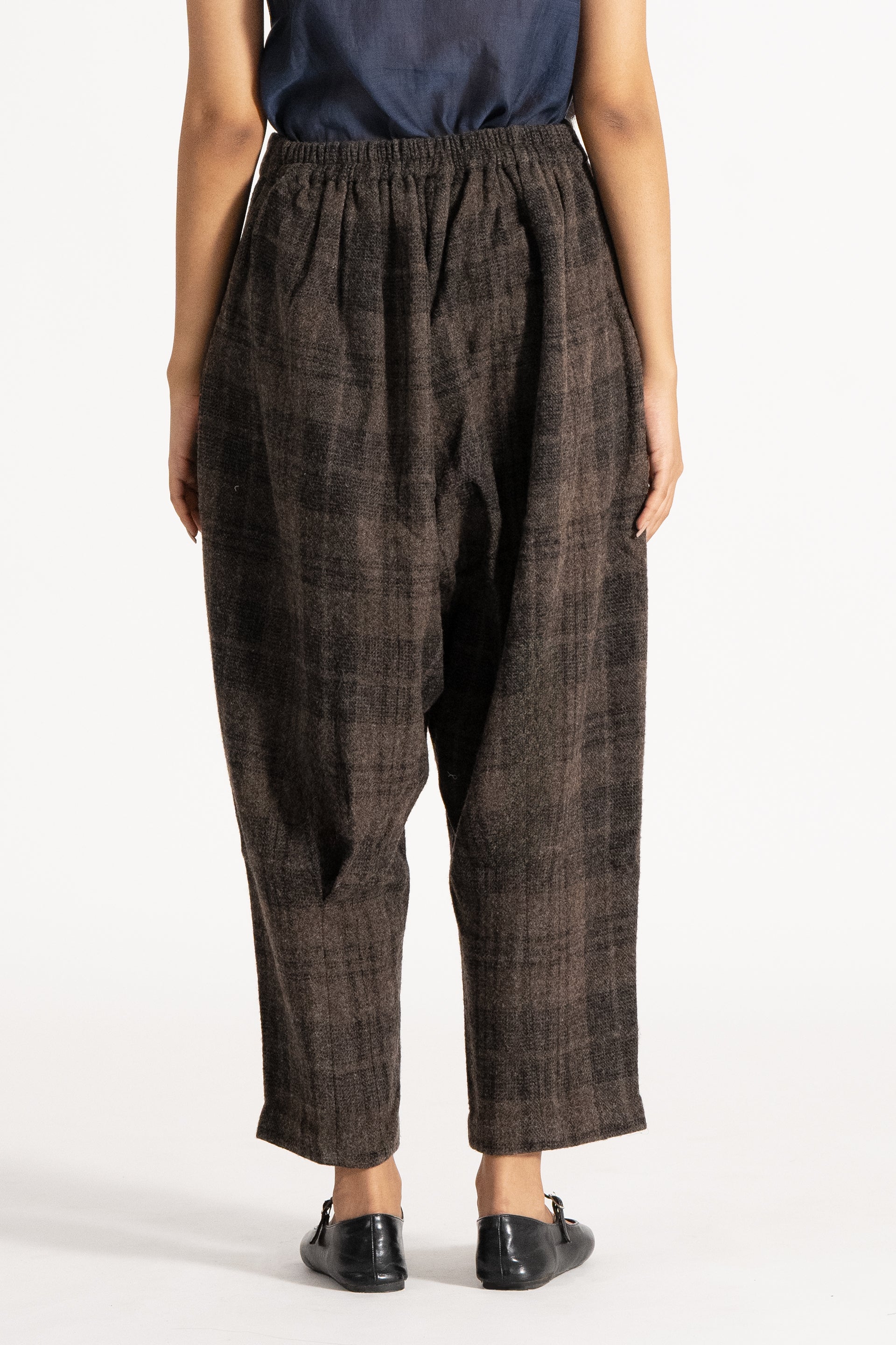 Baggy Fit Trouser In Self Checkered 100% Merino Wool