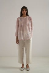 Straight-fit linen pants crafted from a pink fine striped hand-block print base