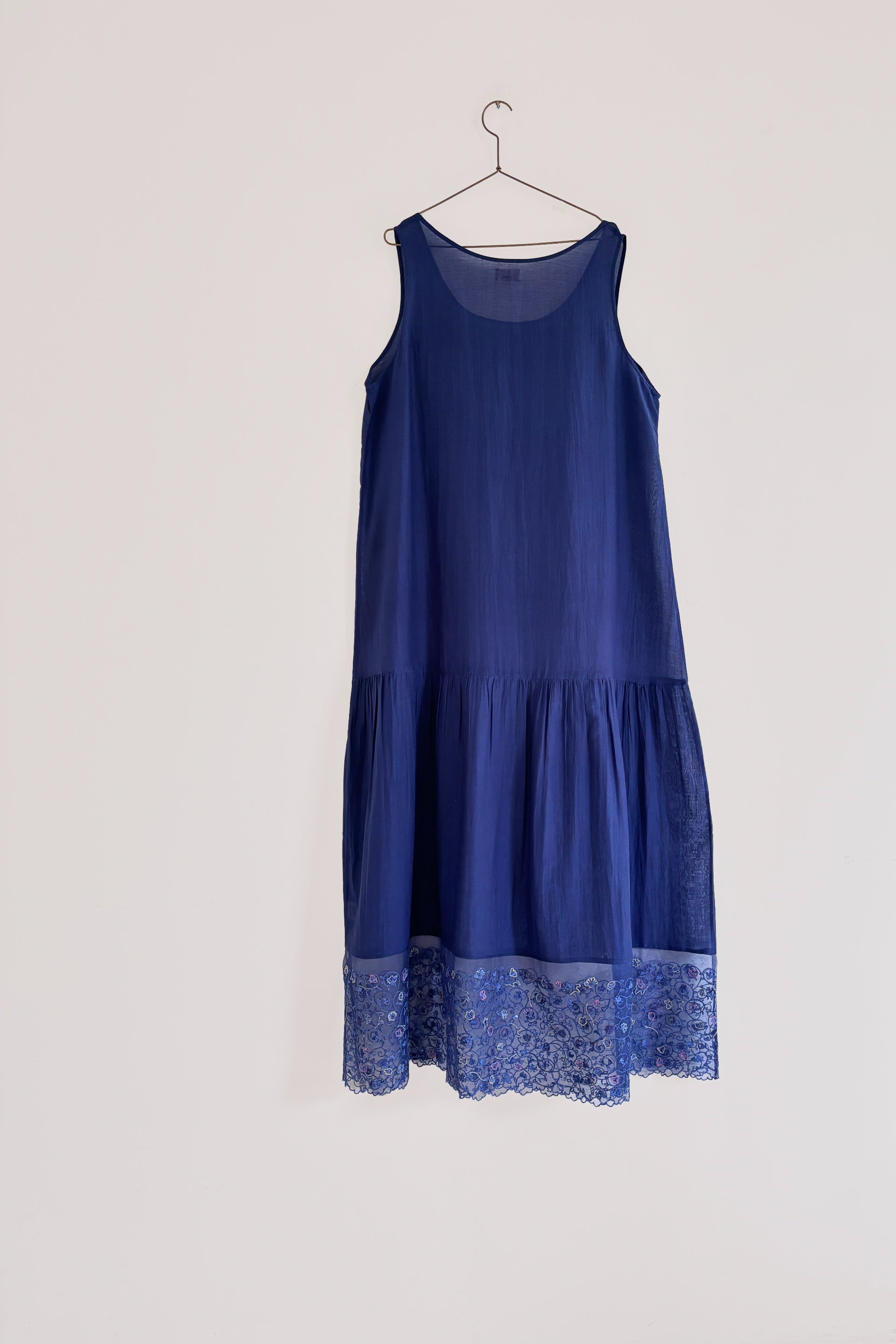 A tiered lining in cotton silk, adorned with an embroidered organza trim along the hem, beautifully highlighted by intricate thread and zari work throughout.