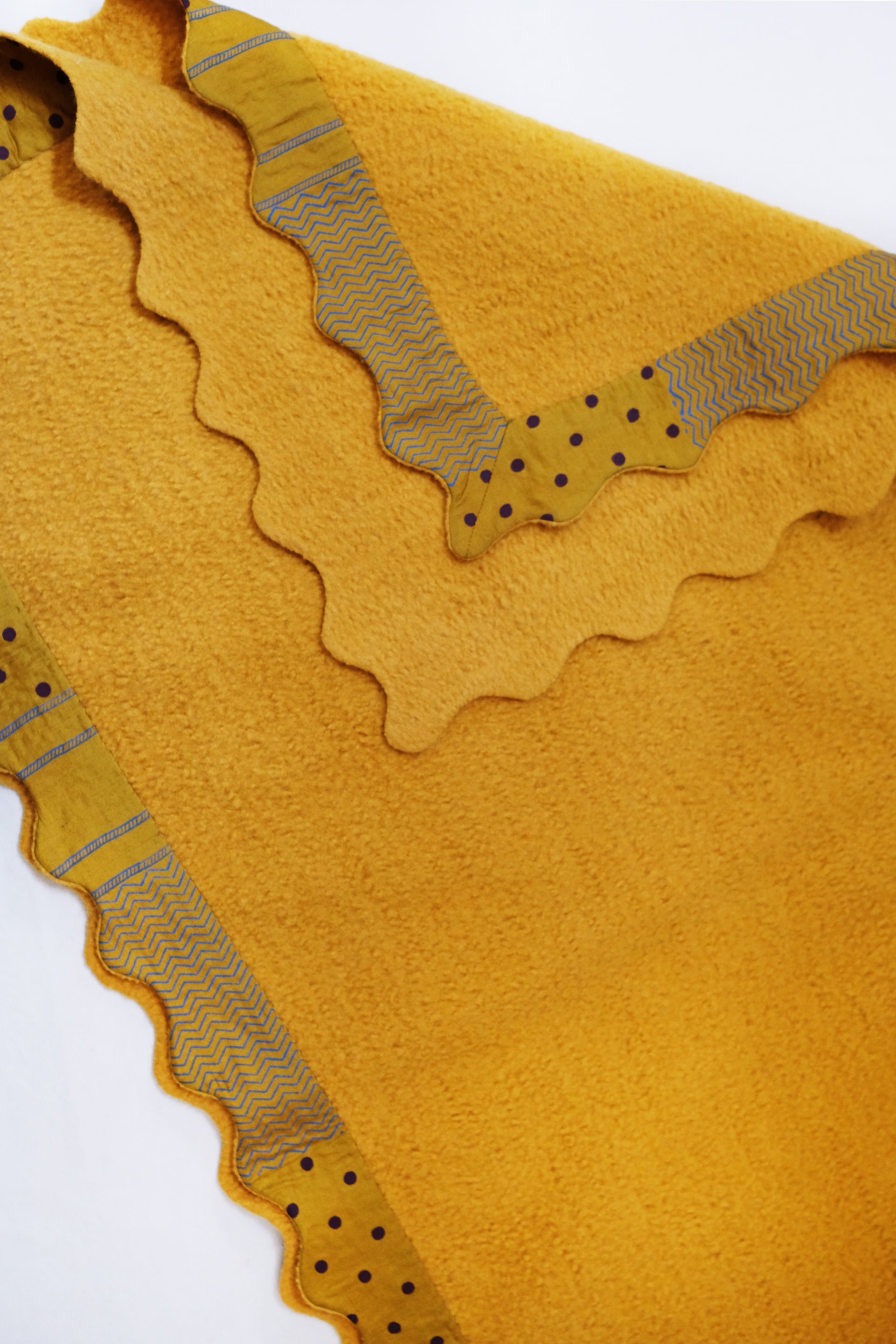 Mustard Cashmere Wool stole finished with intricate handblock-printed detailing along the borders for a refined artisanal touch.