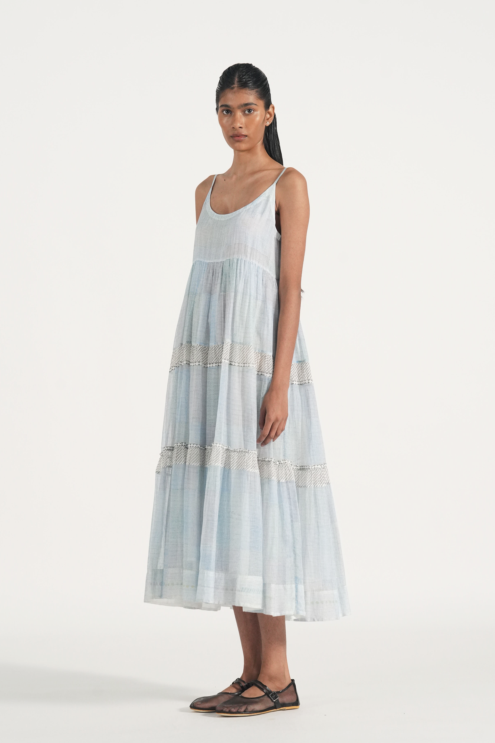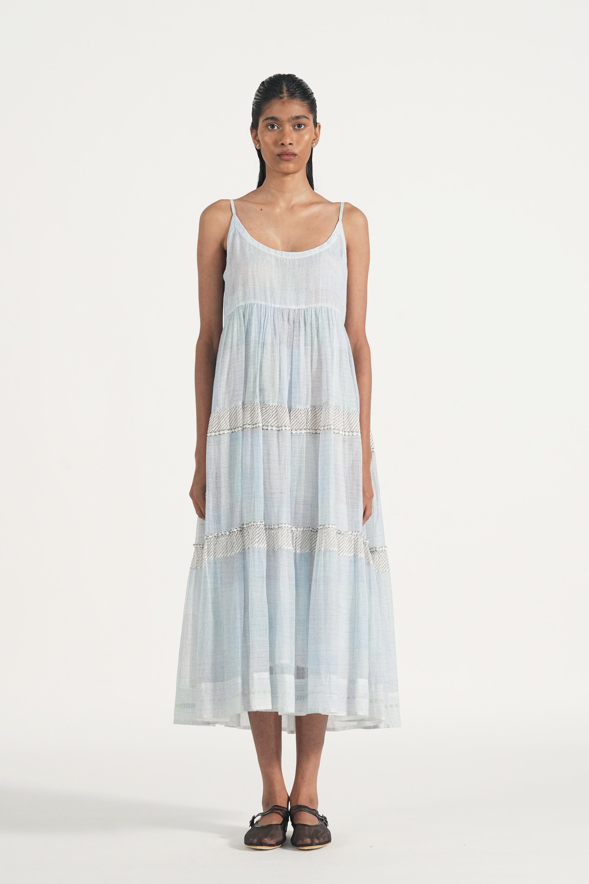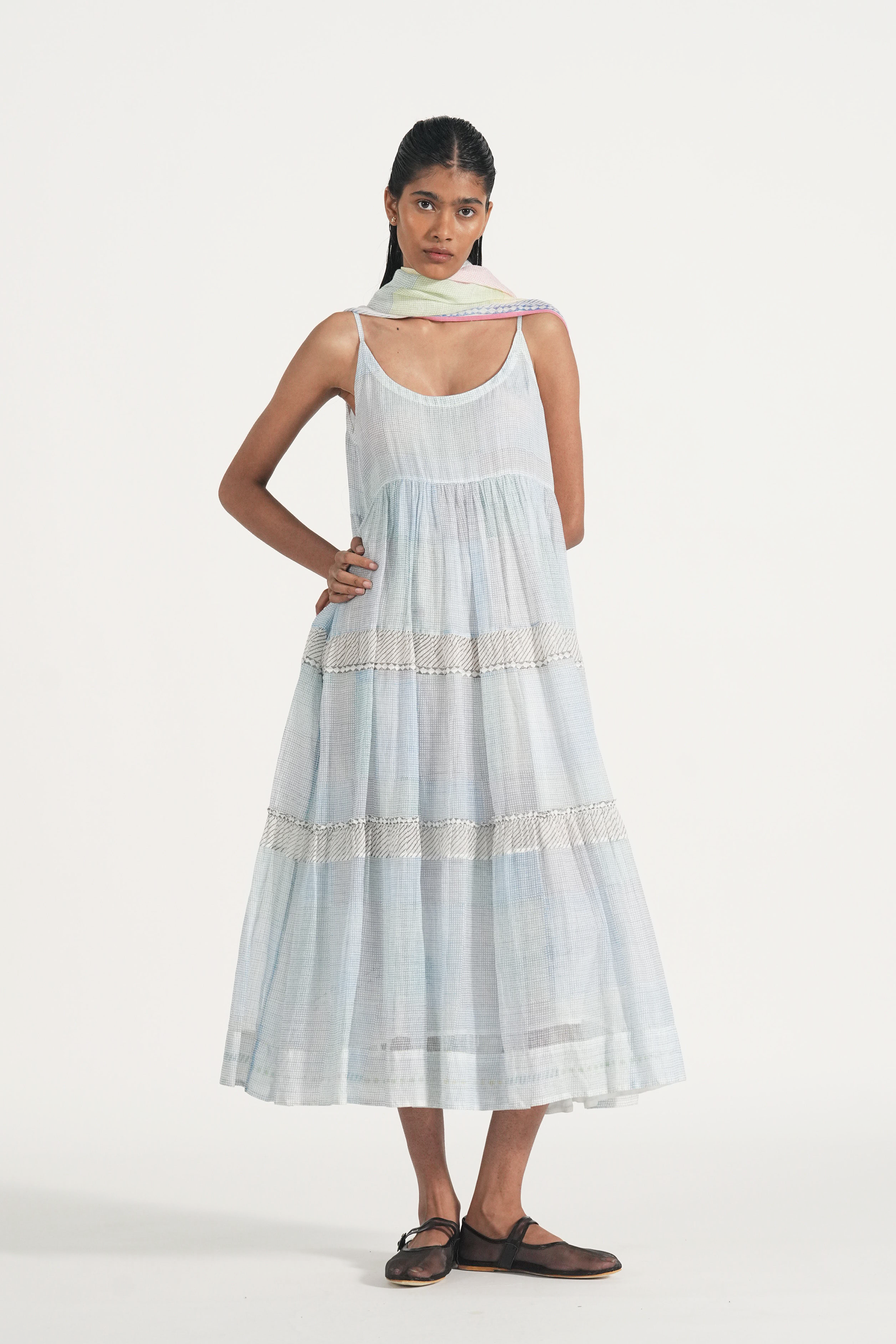 Spaghetti strap summer dress, hand block printed multi check print. Llined in co-silk.