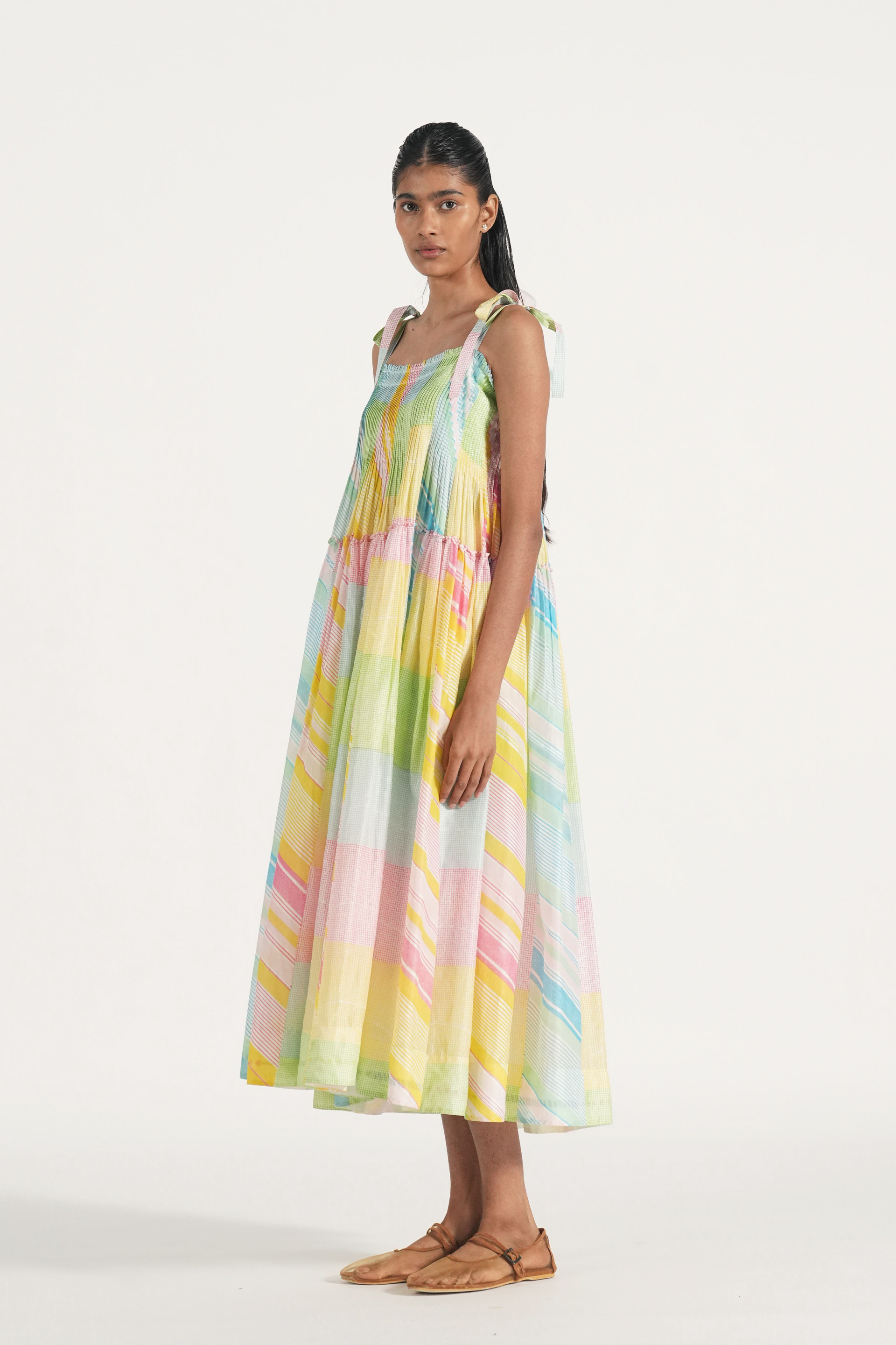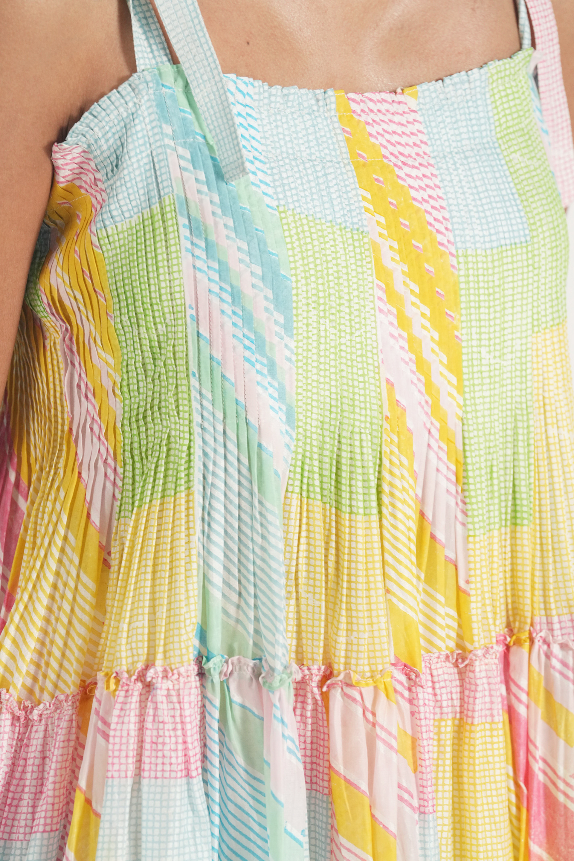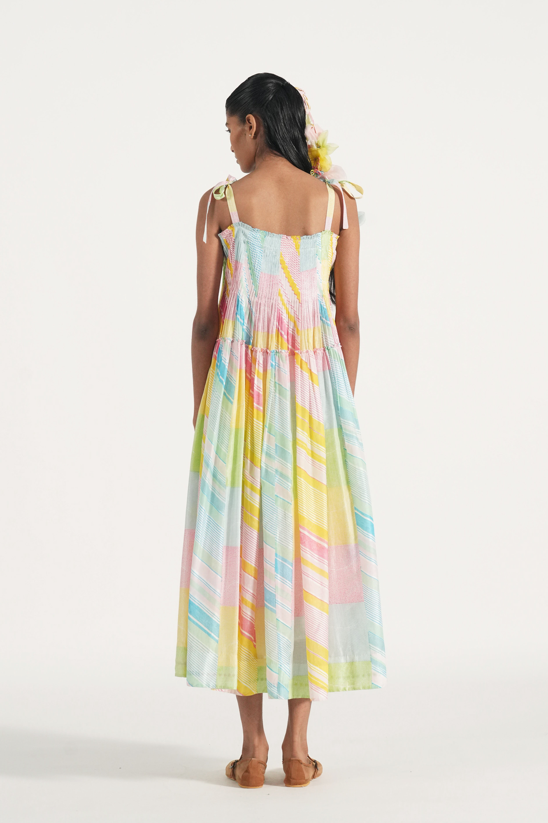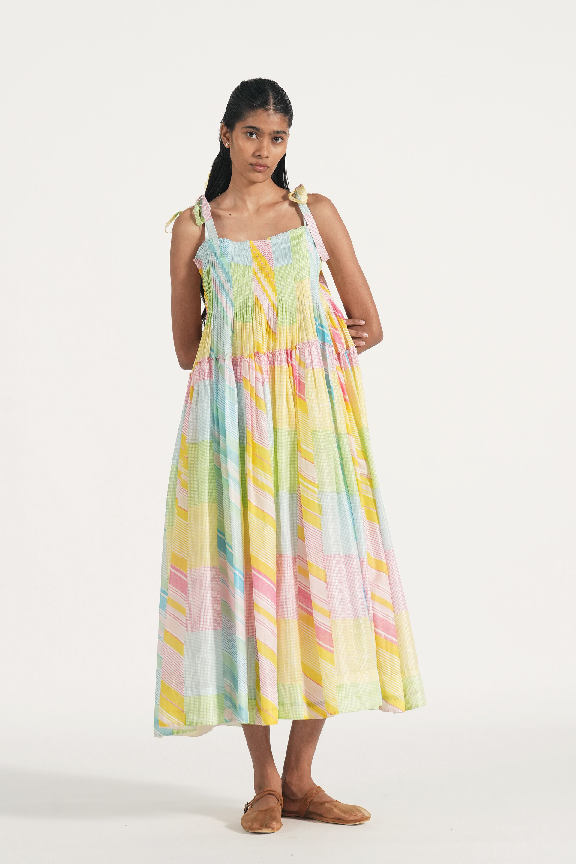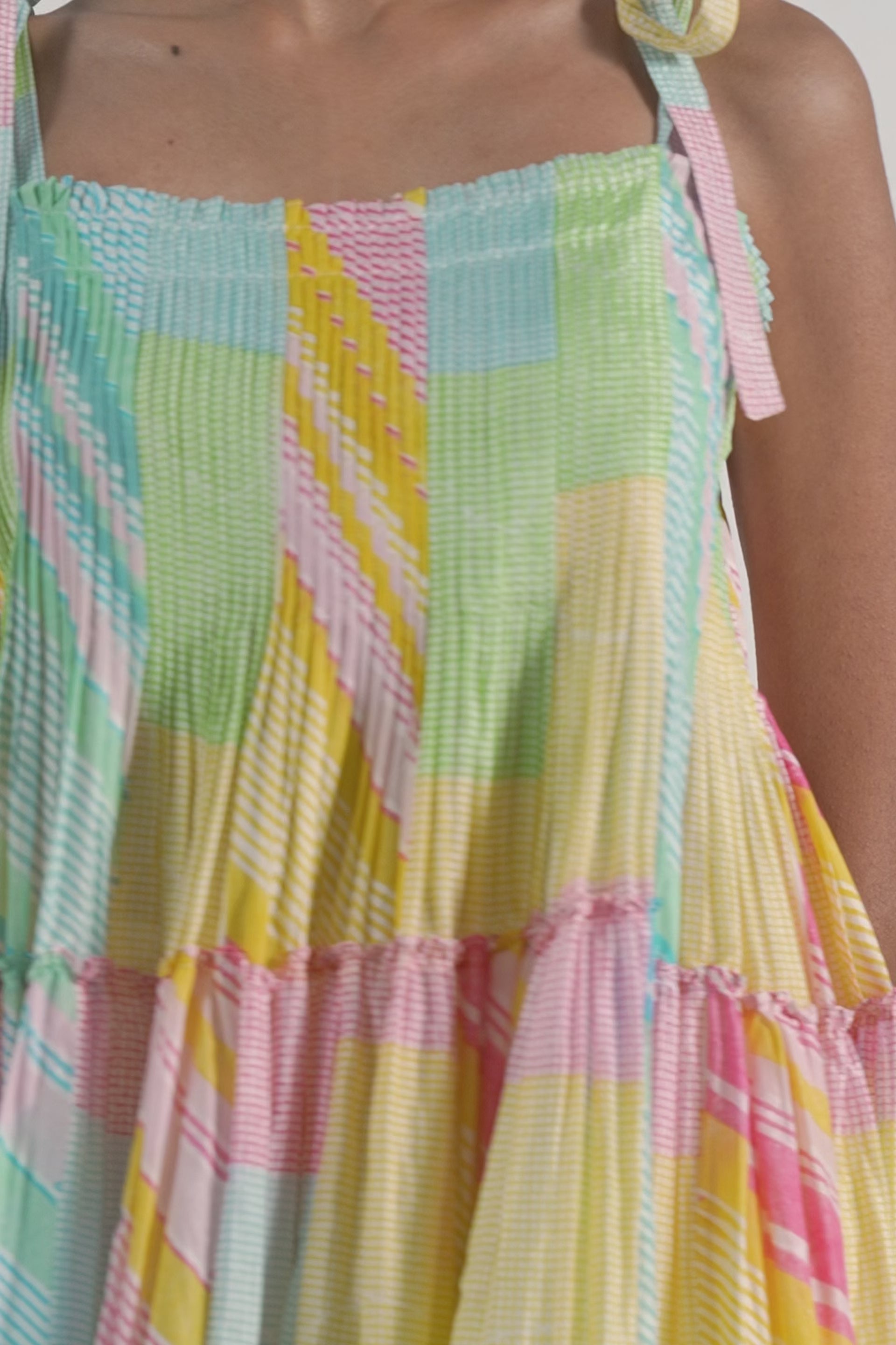 Tie-up strappy dress in multicolor graph+ checks block print design.