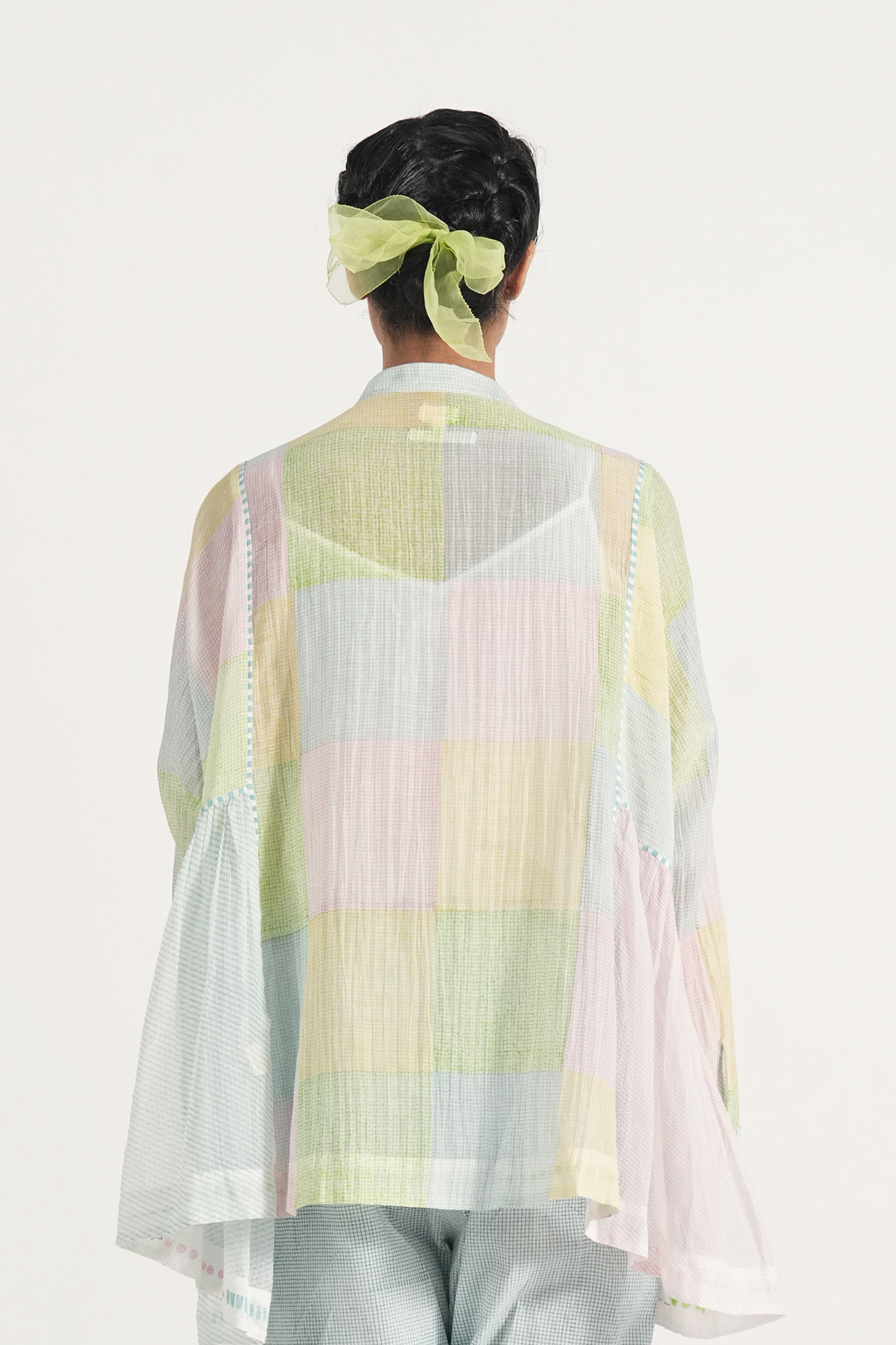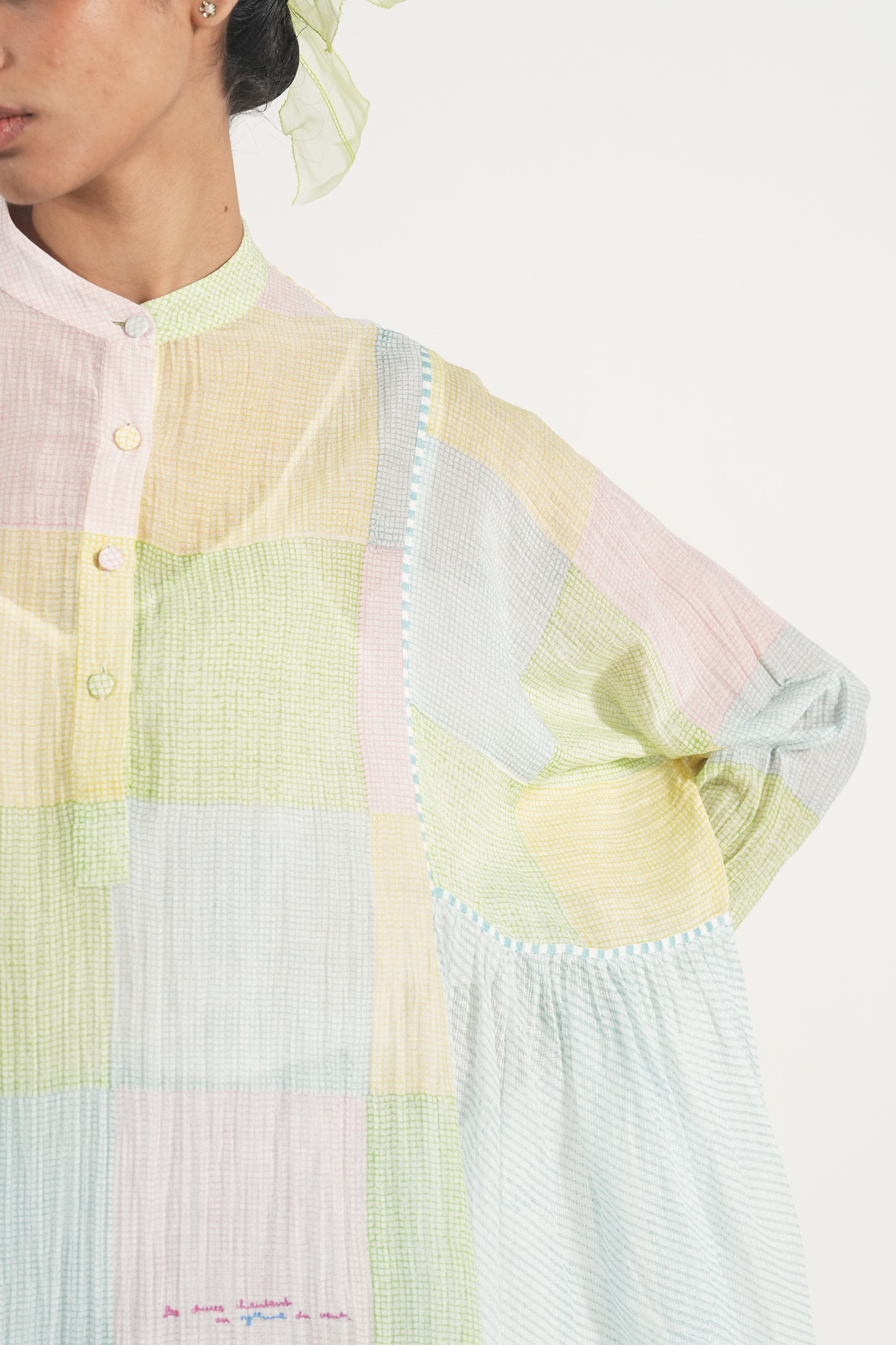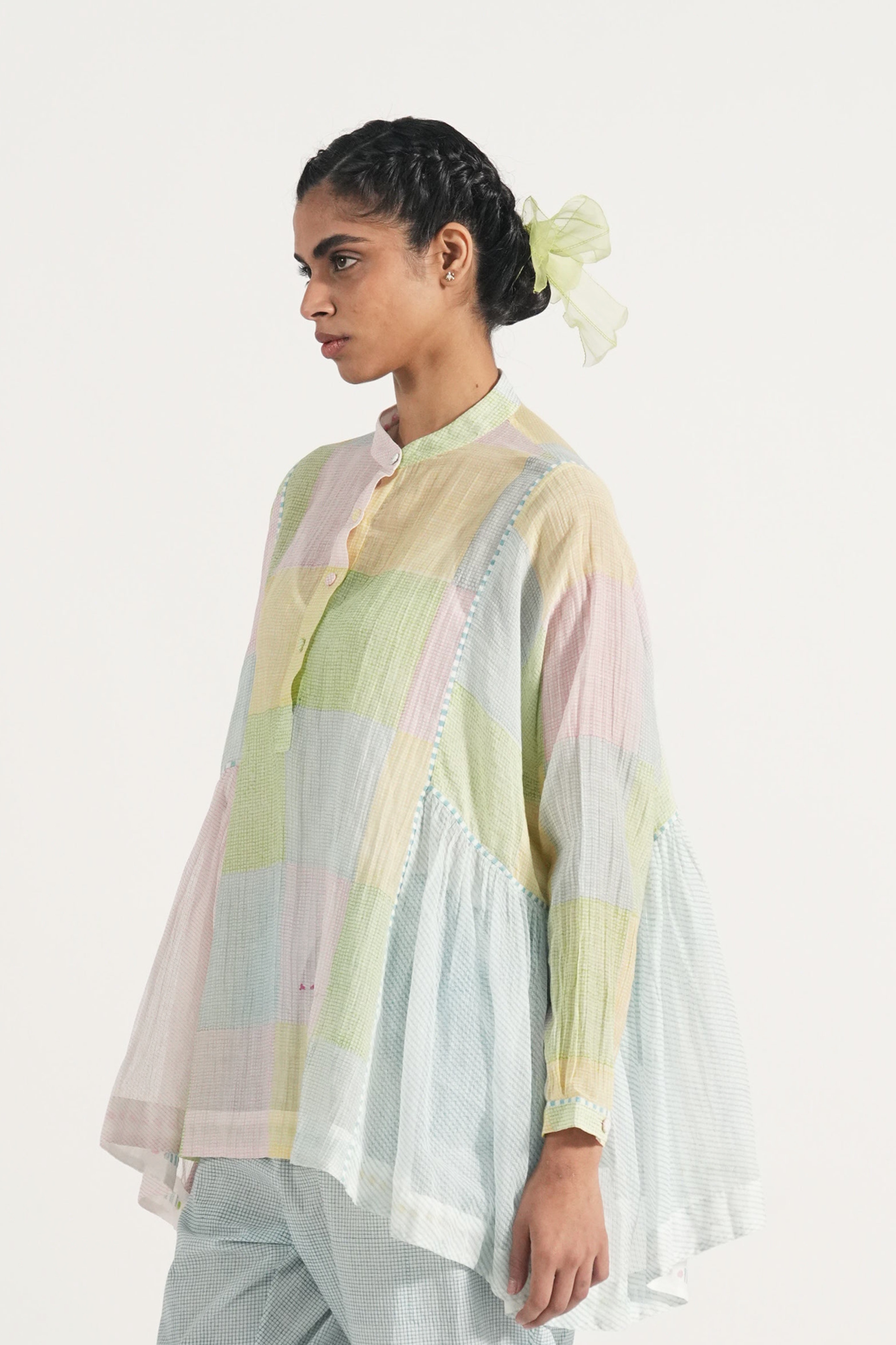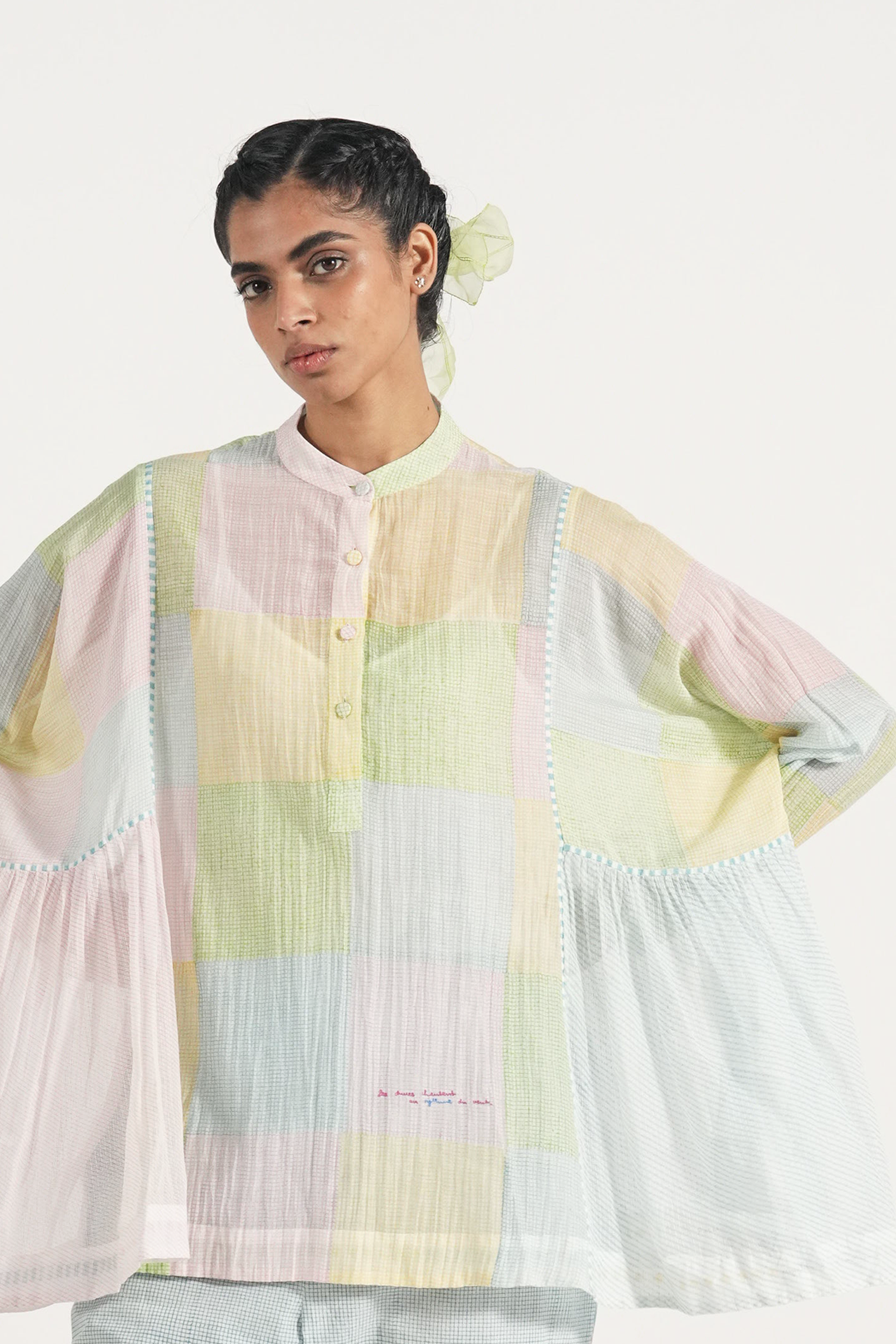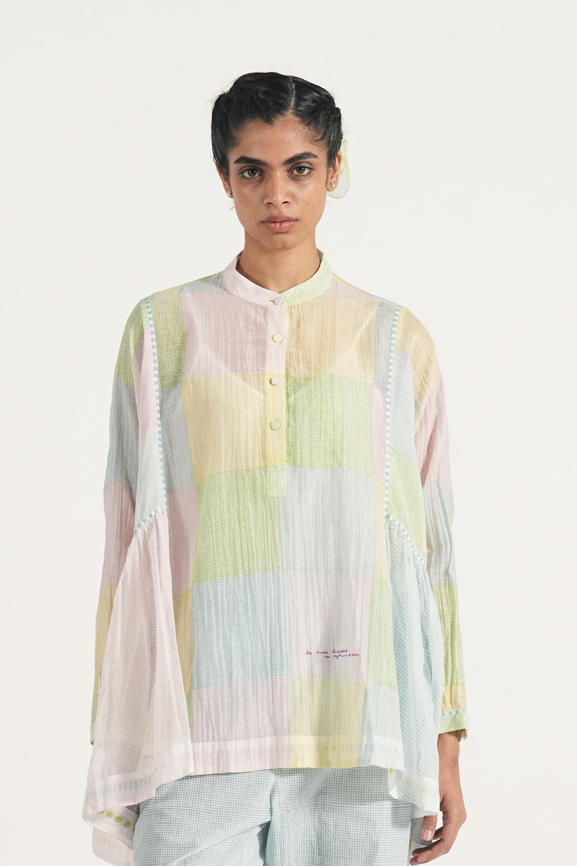 Relaxed fit front placket top in multi hand block print and contrasting binding detail. Comes with a complimentary lining.