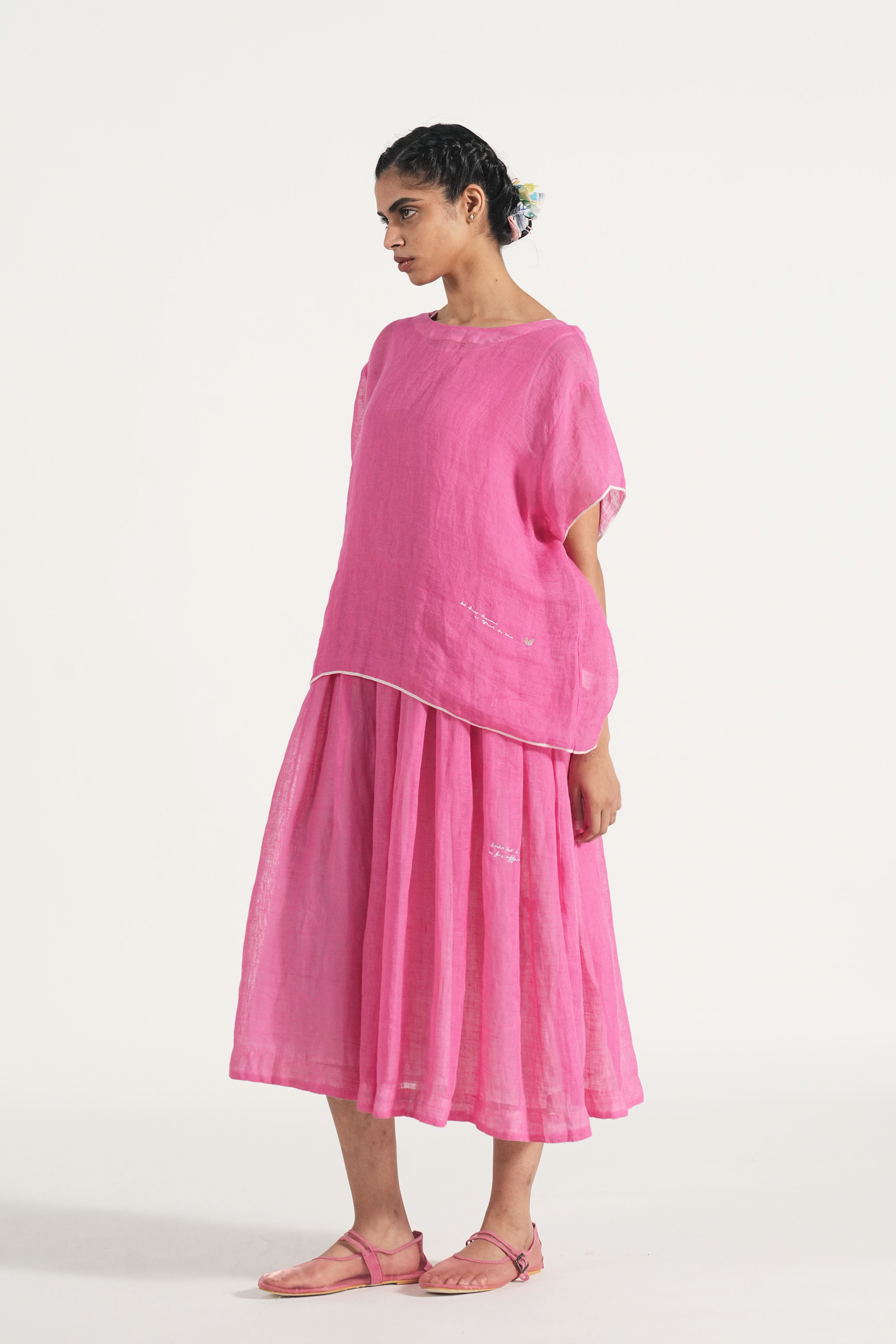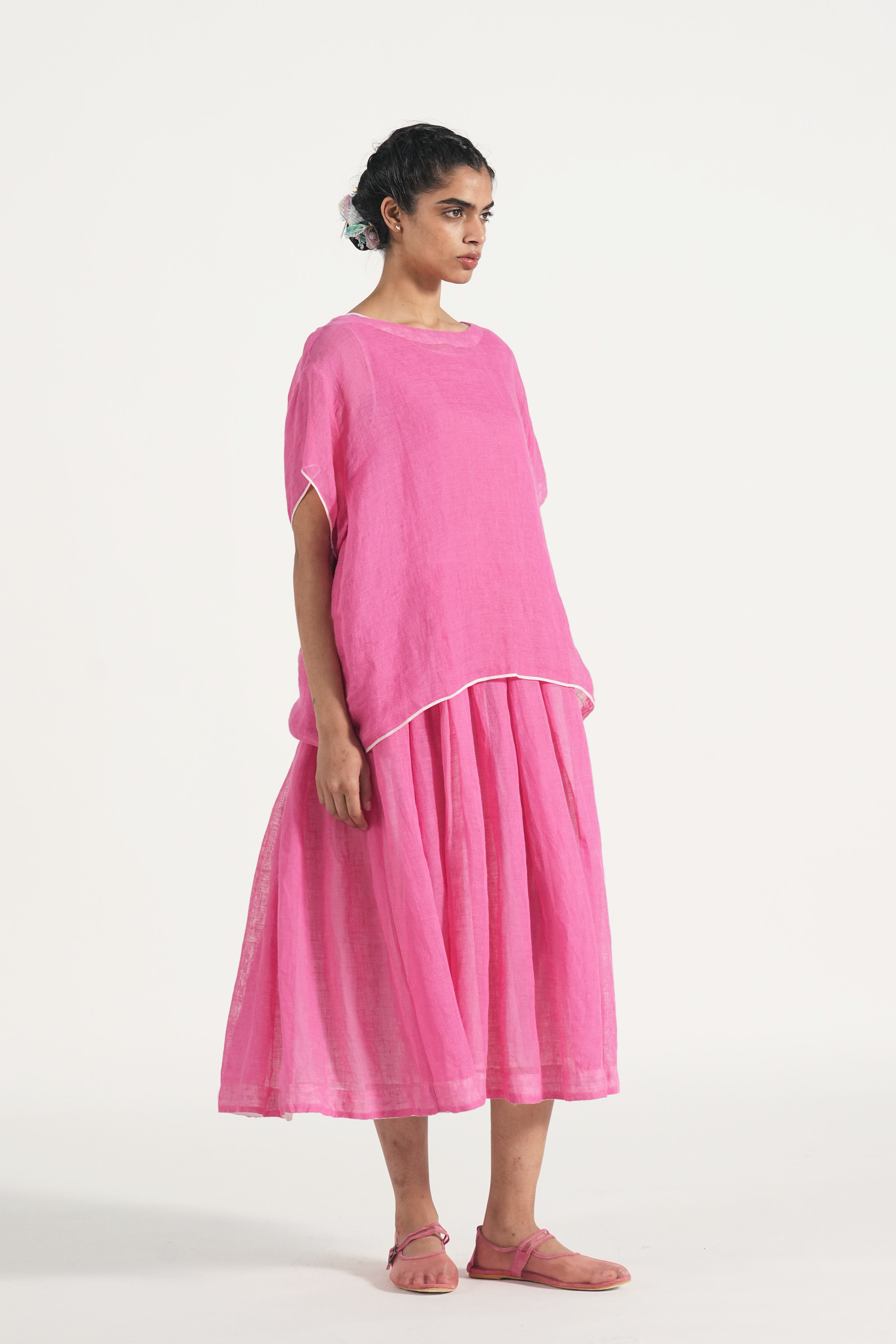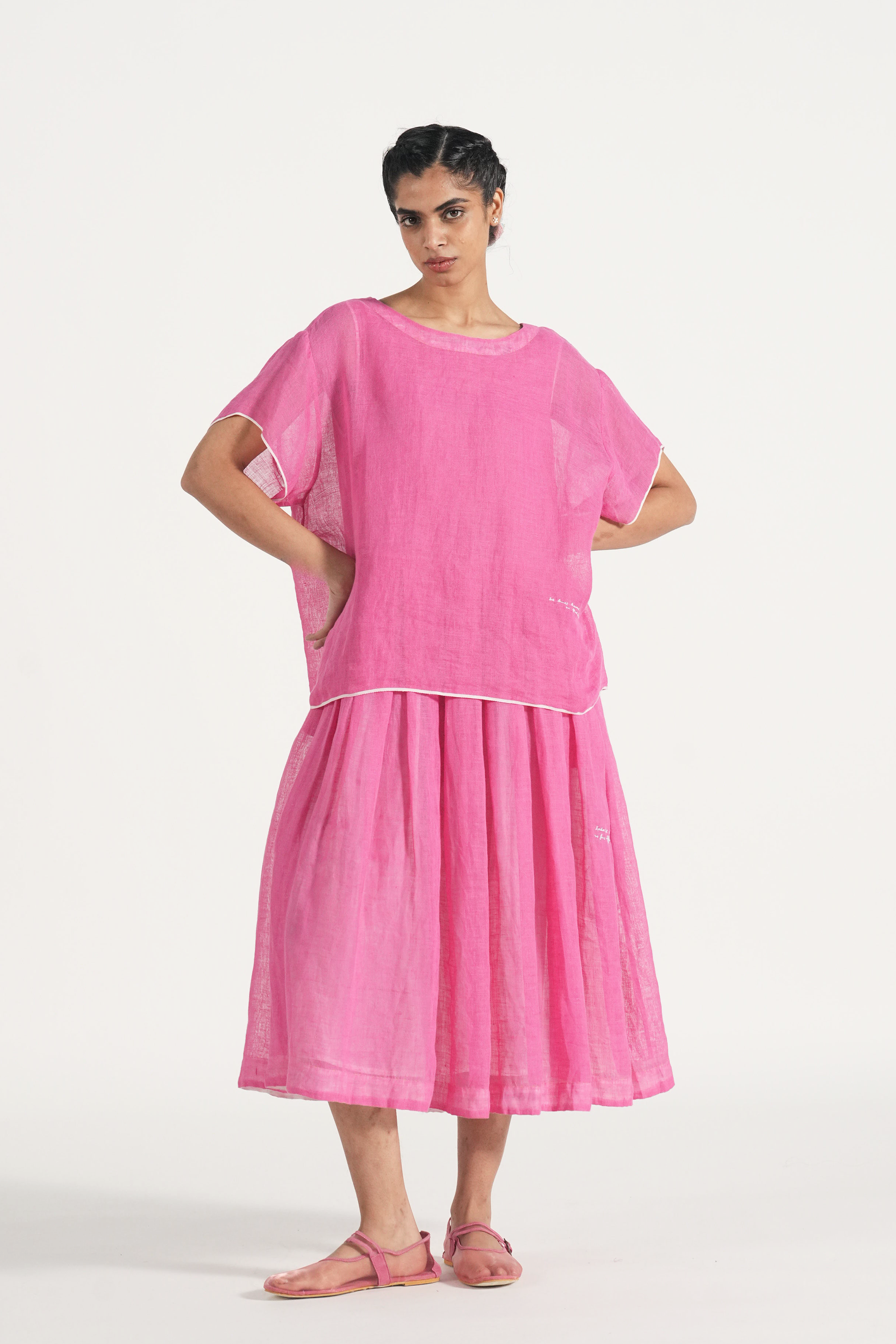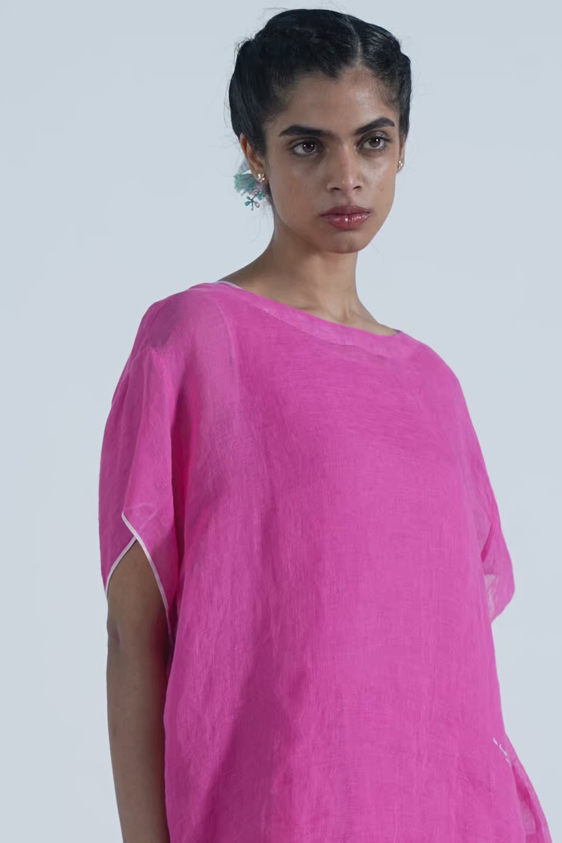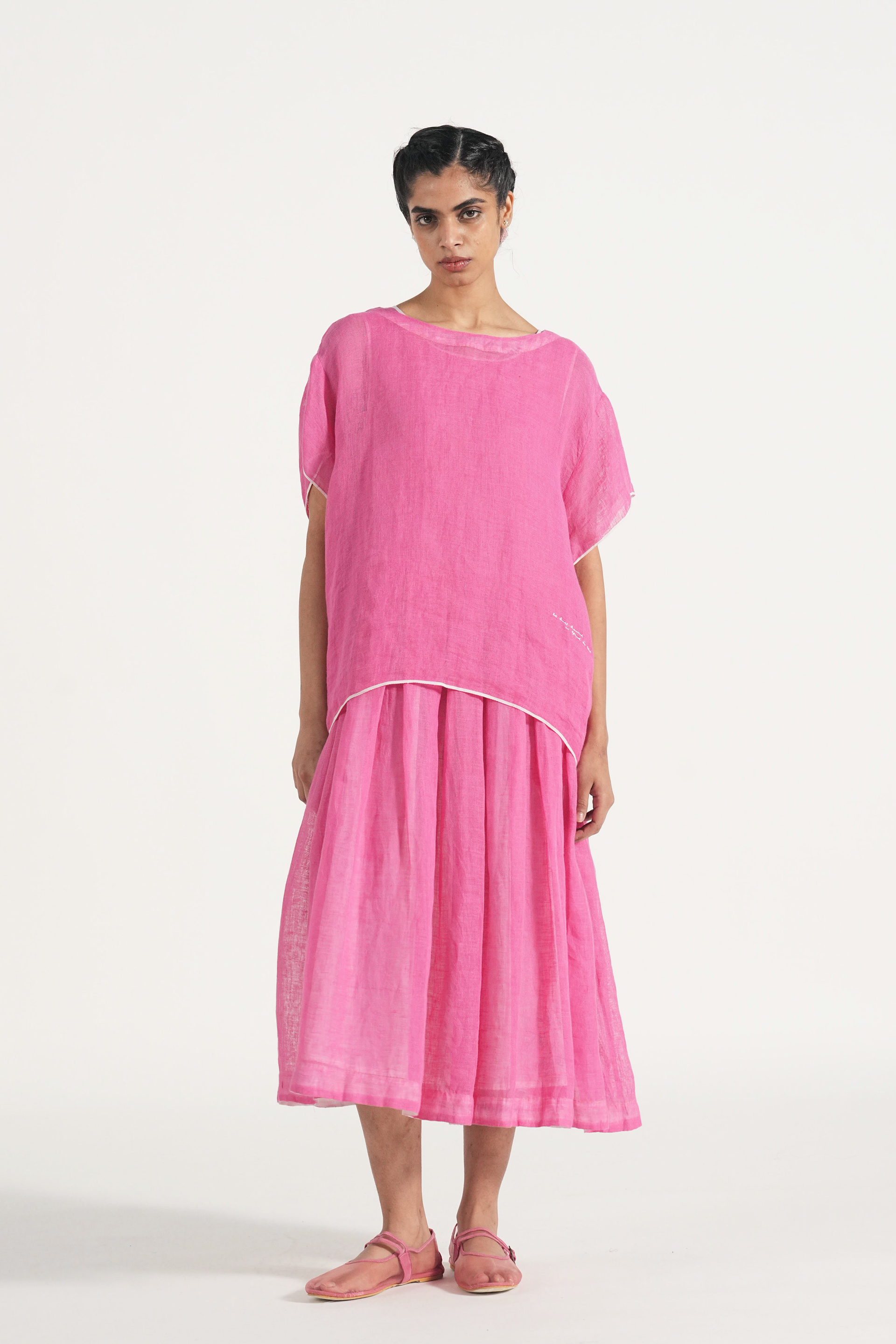 Round neck relaxed fit short sleeve summer top in handwoven linen gauze with selvage details. Comes with a complimentary lining.