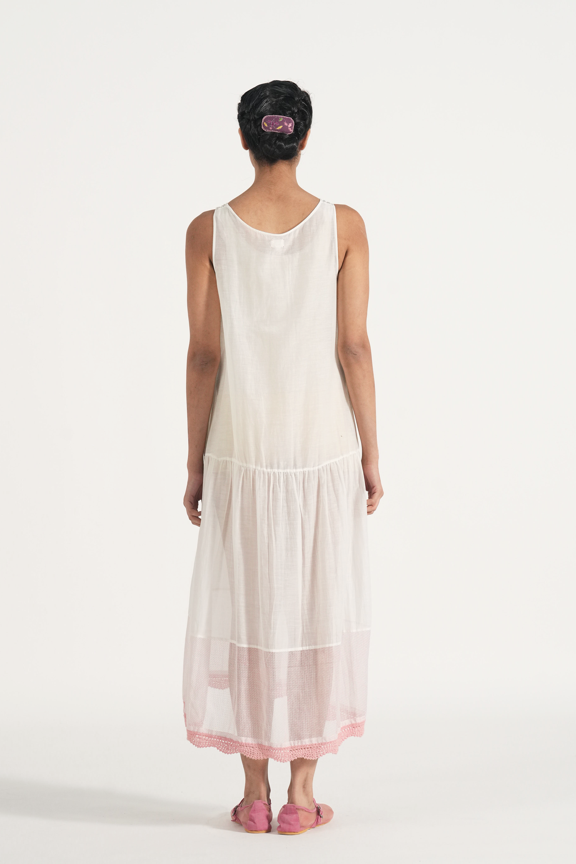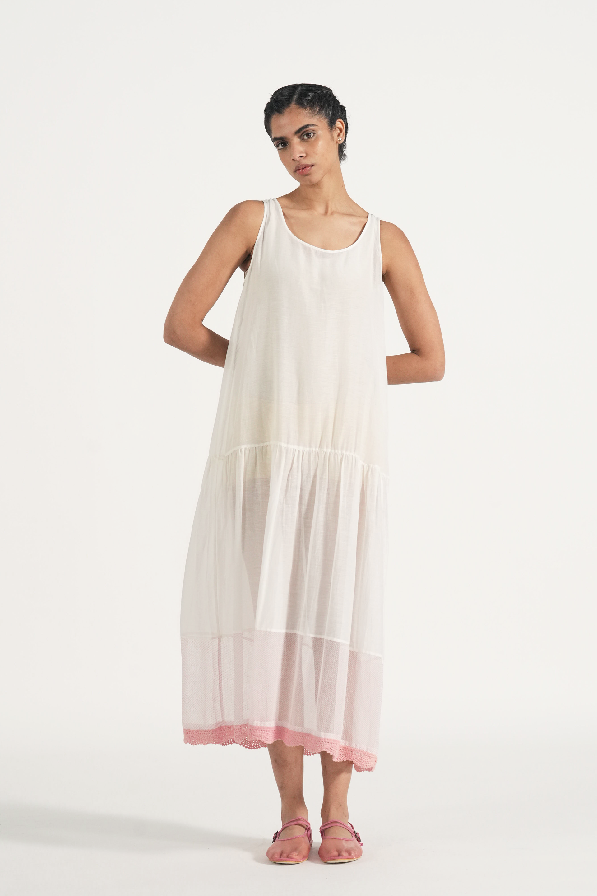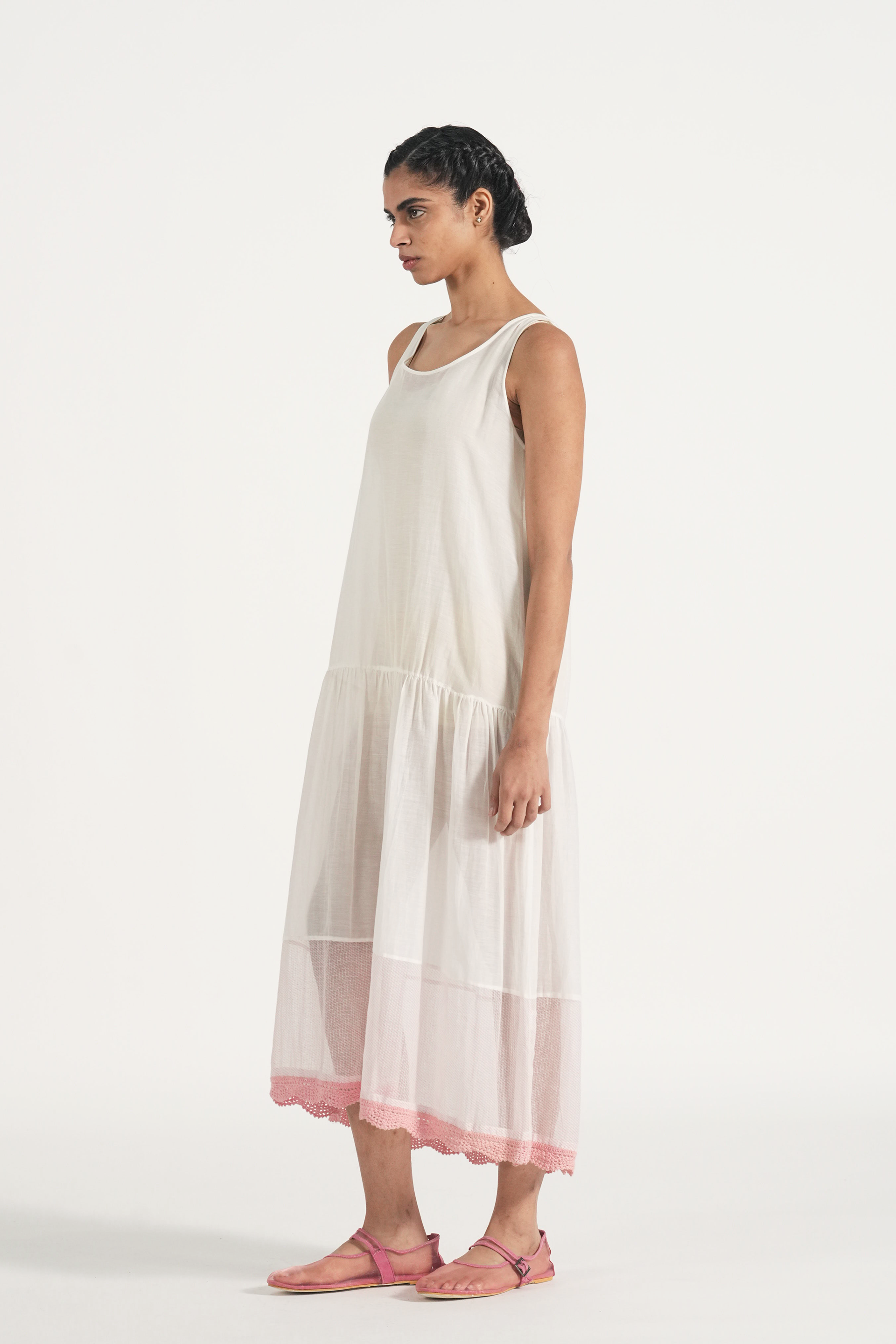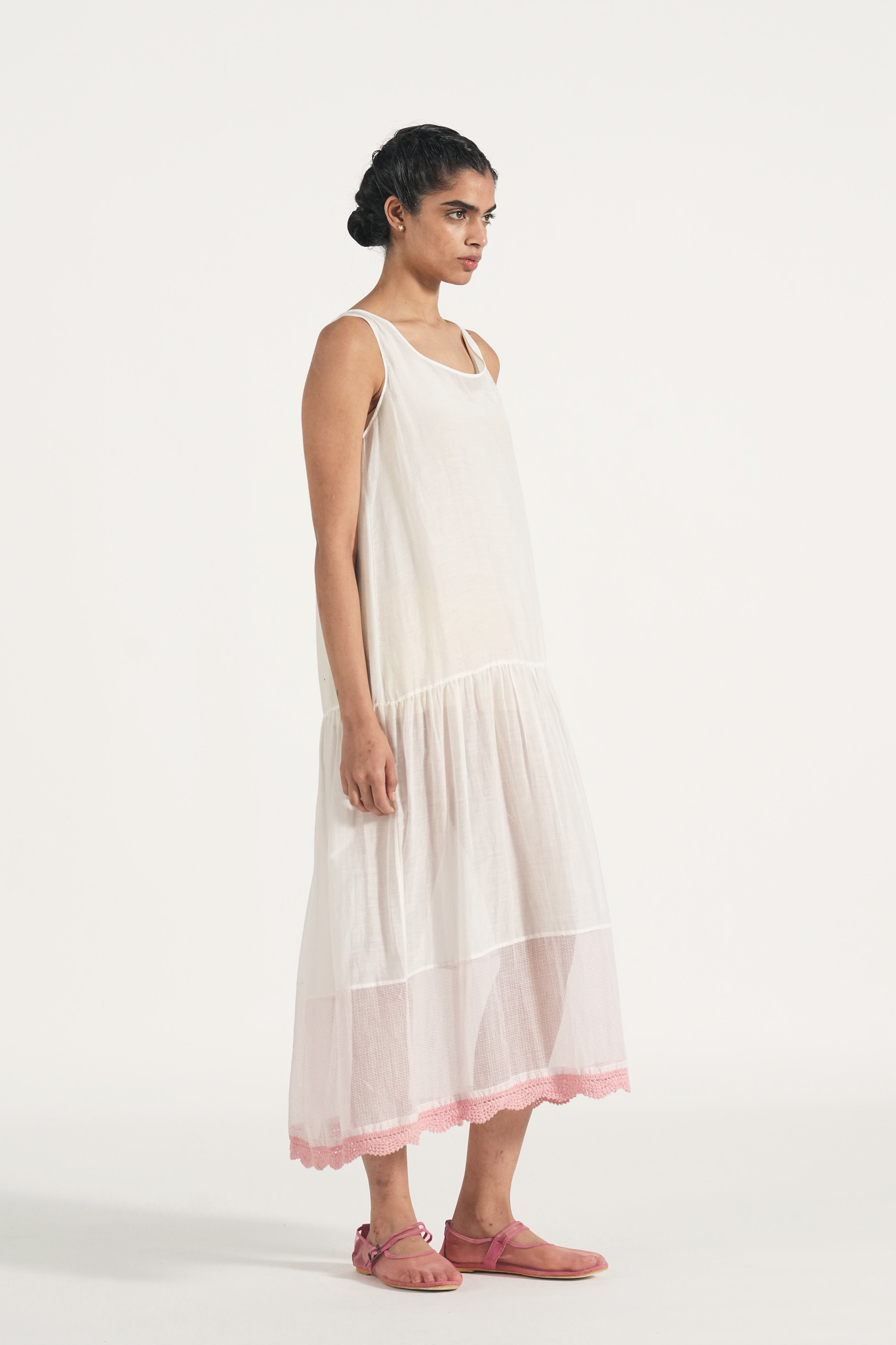 Tank lining with with hand crochet lace insert.