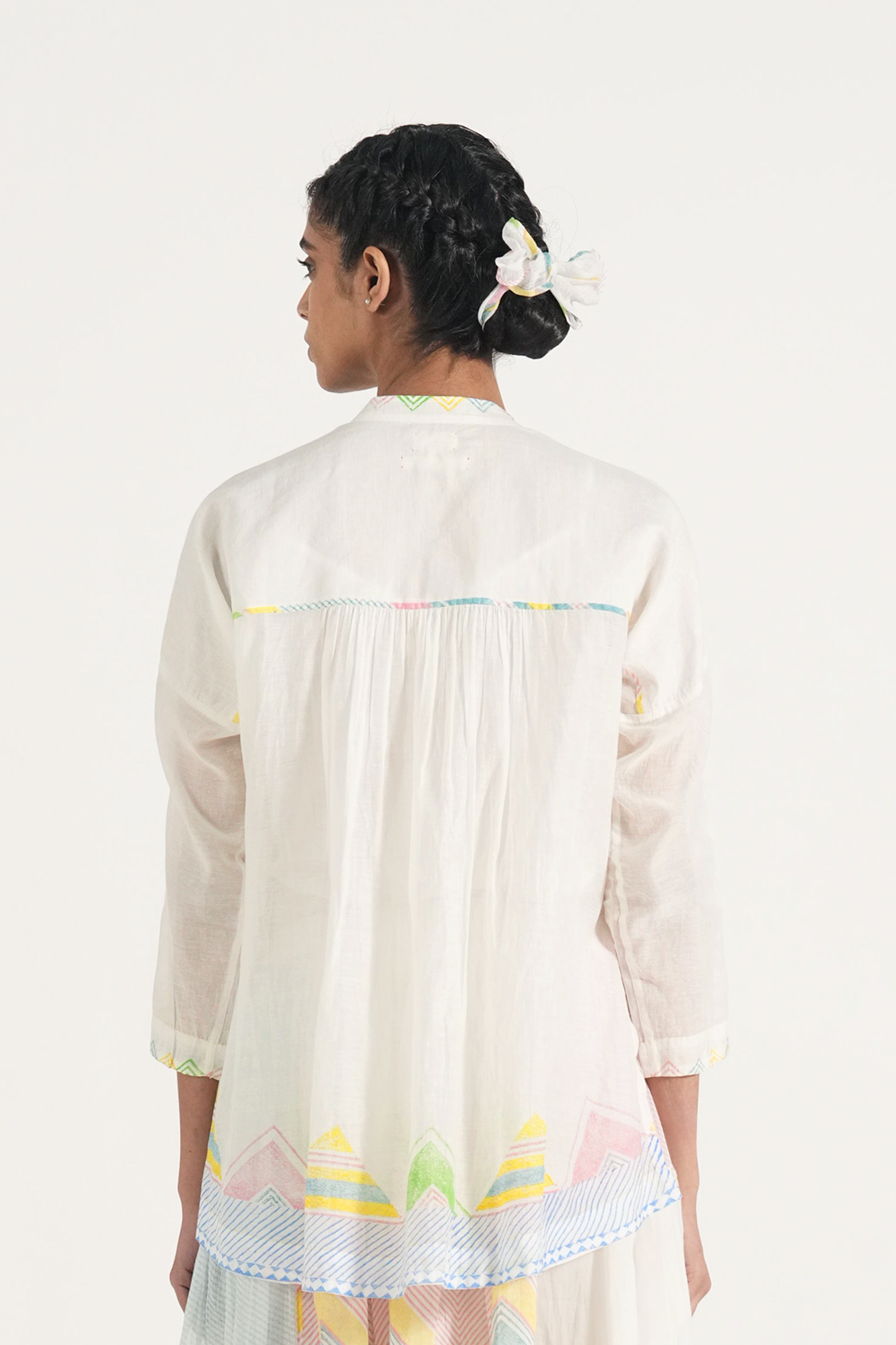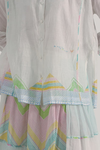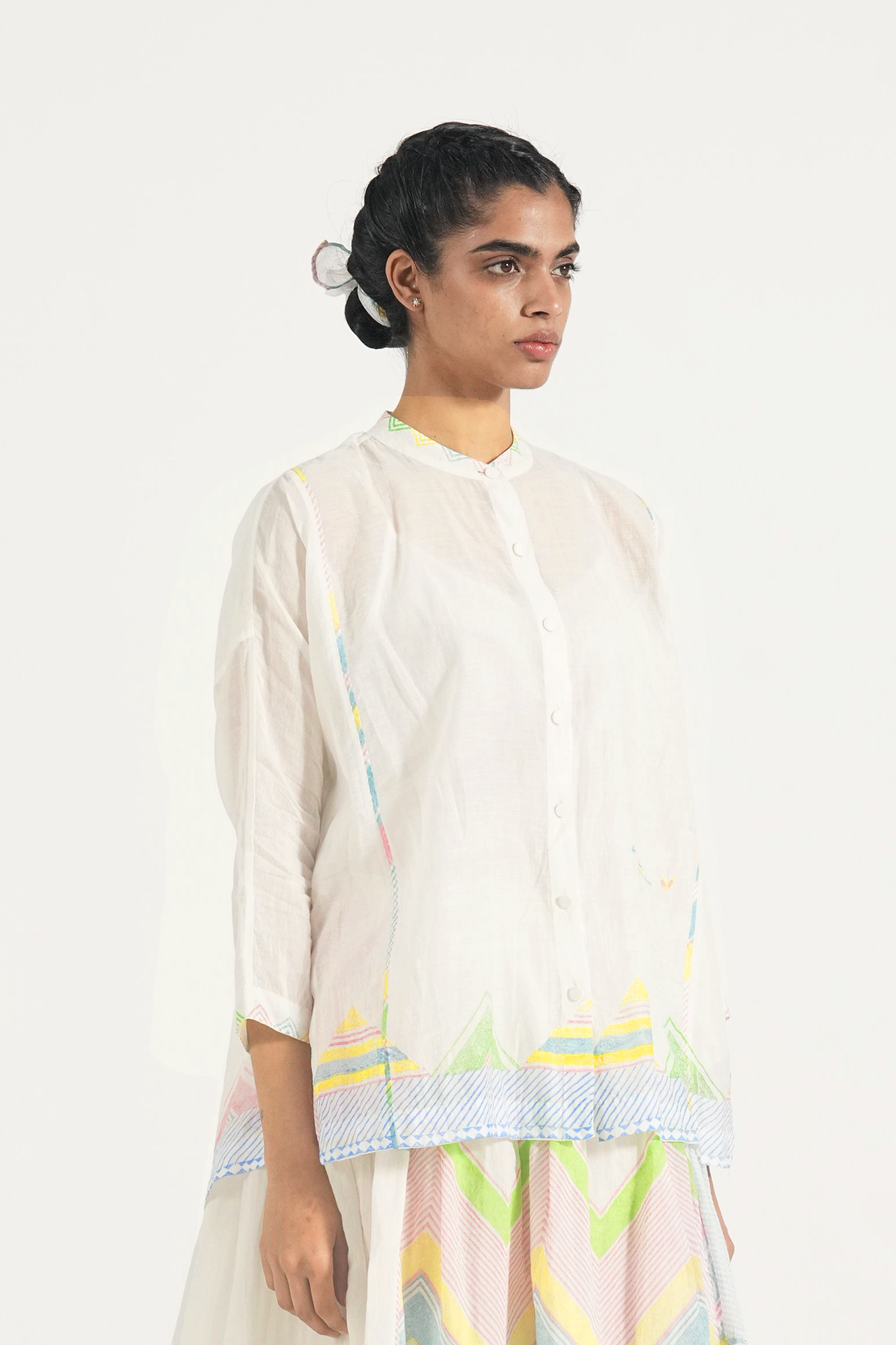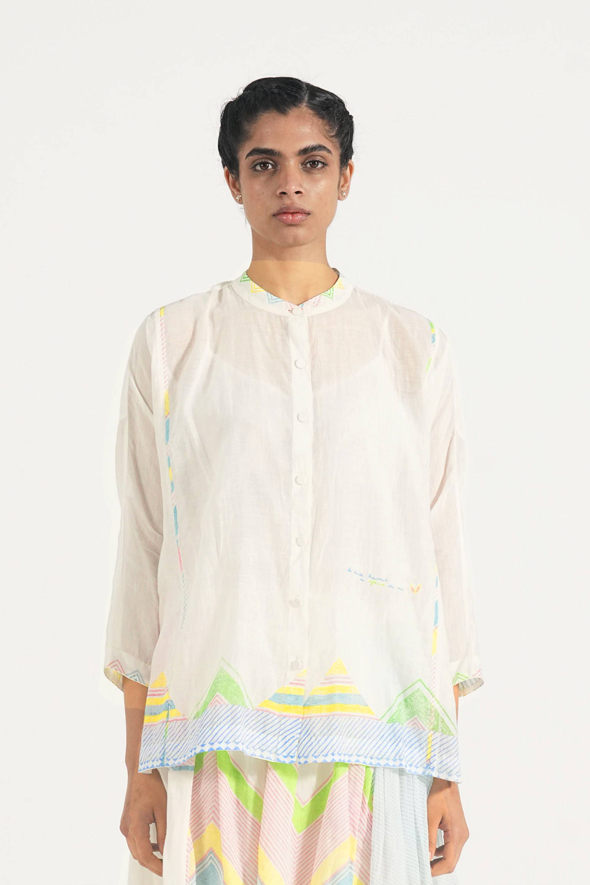 Straight fit shirt multi color chevron print and contrasting piping detail. Comes with a complimentary lining.