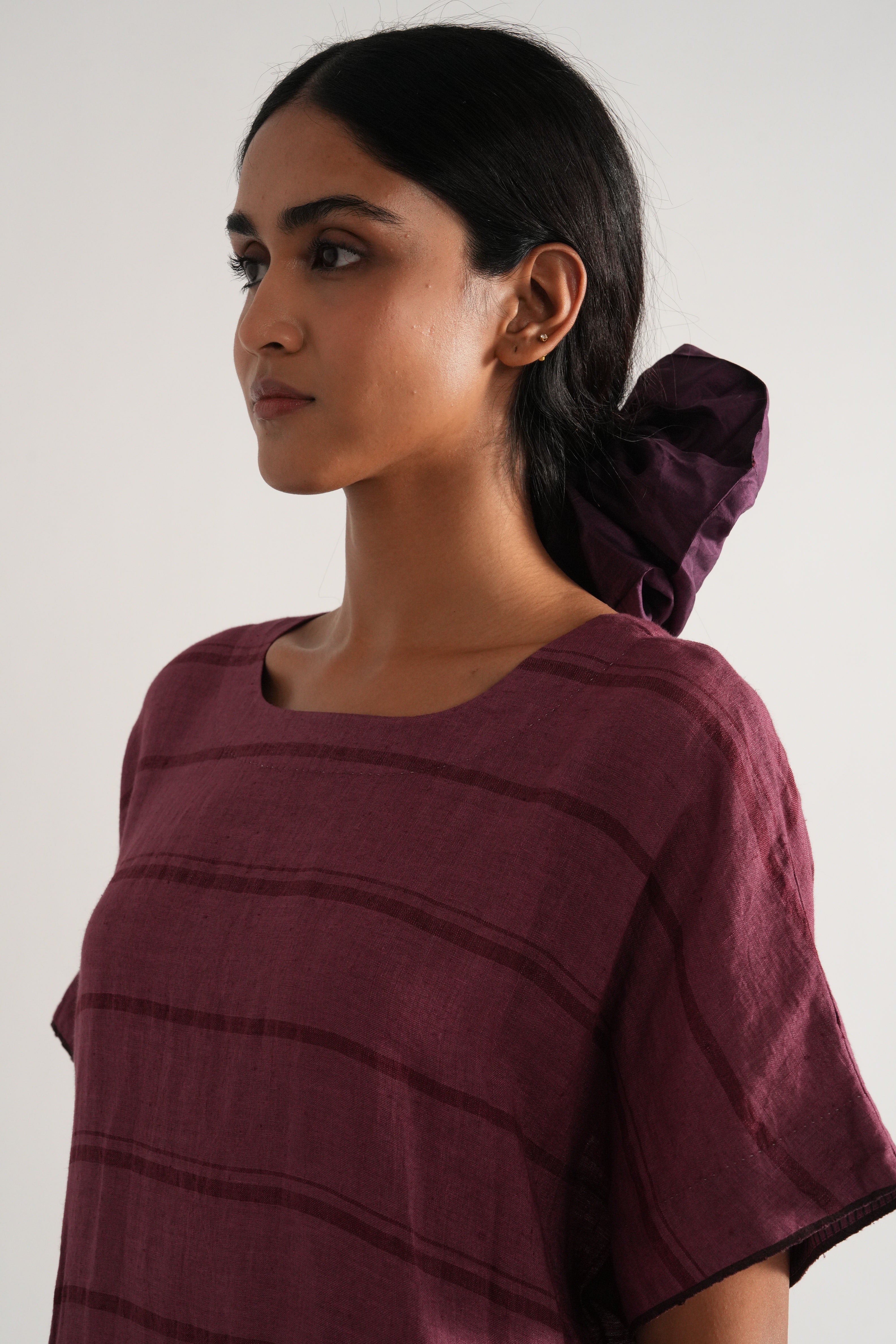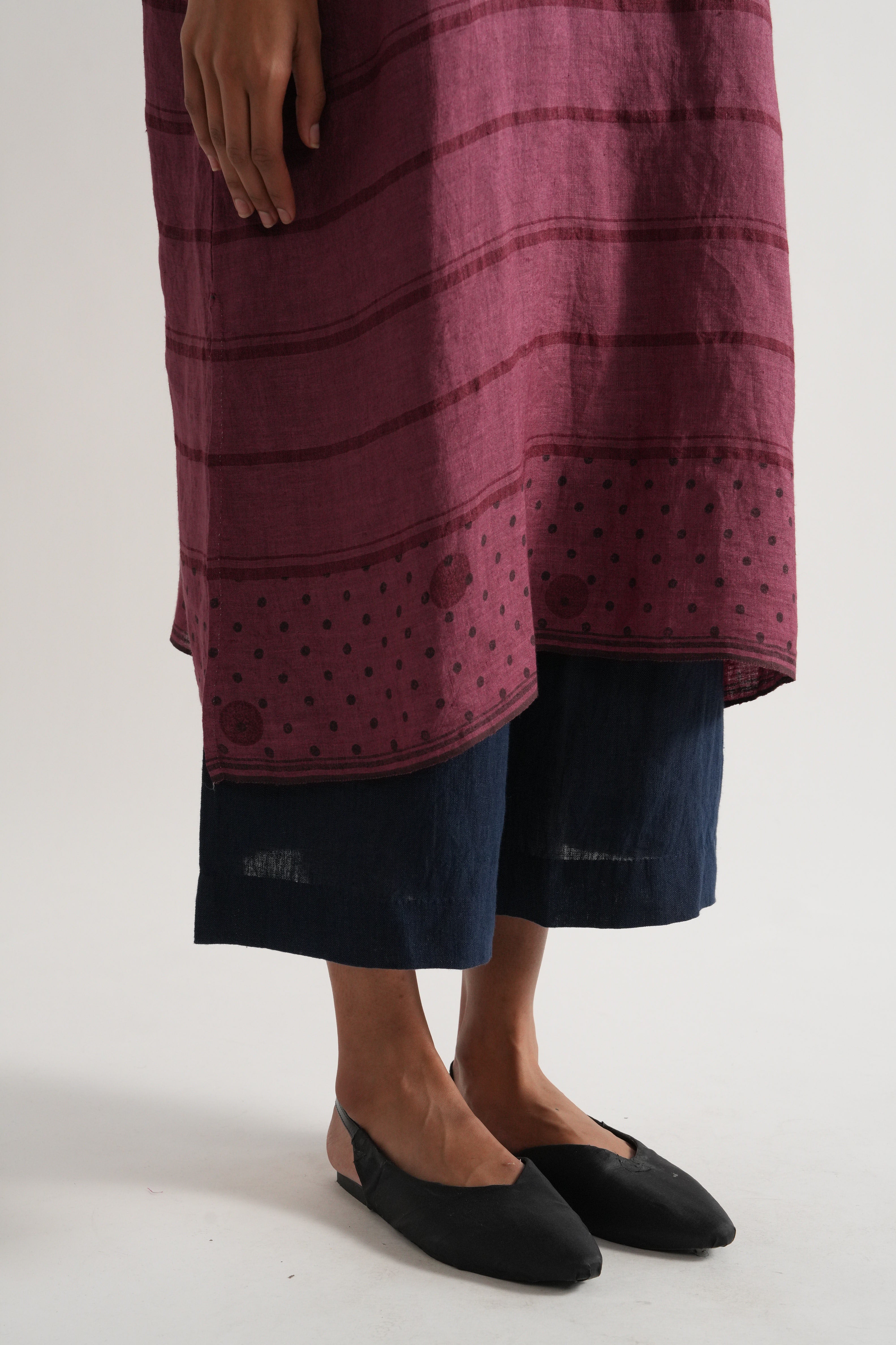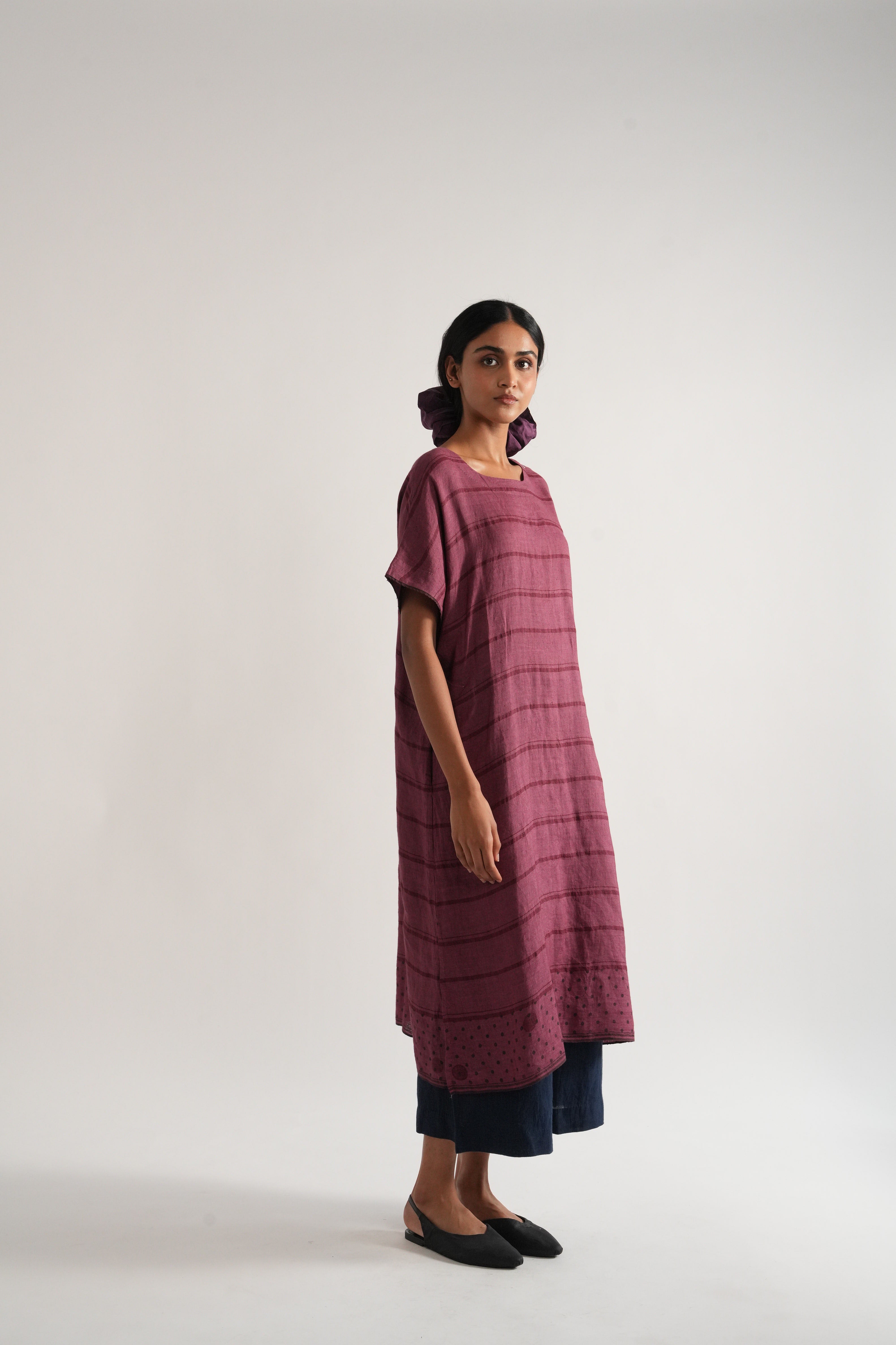 Relaxed fit tunic dress in handwoven yarn dye comes with handwoven striped straight fit pants
