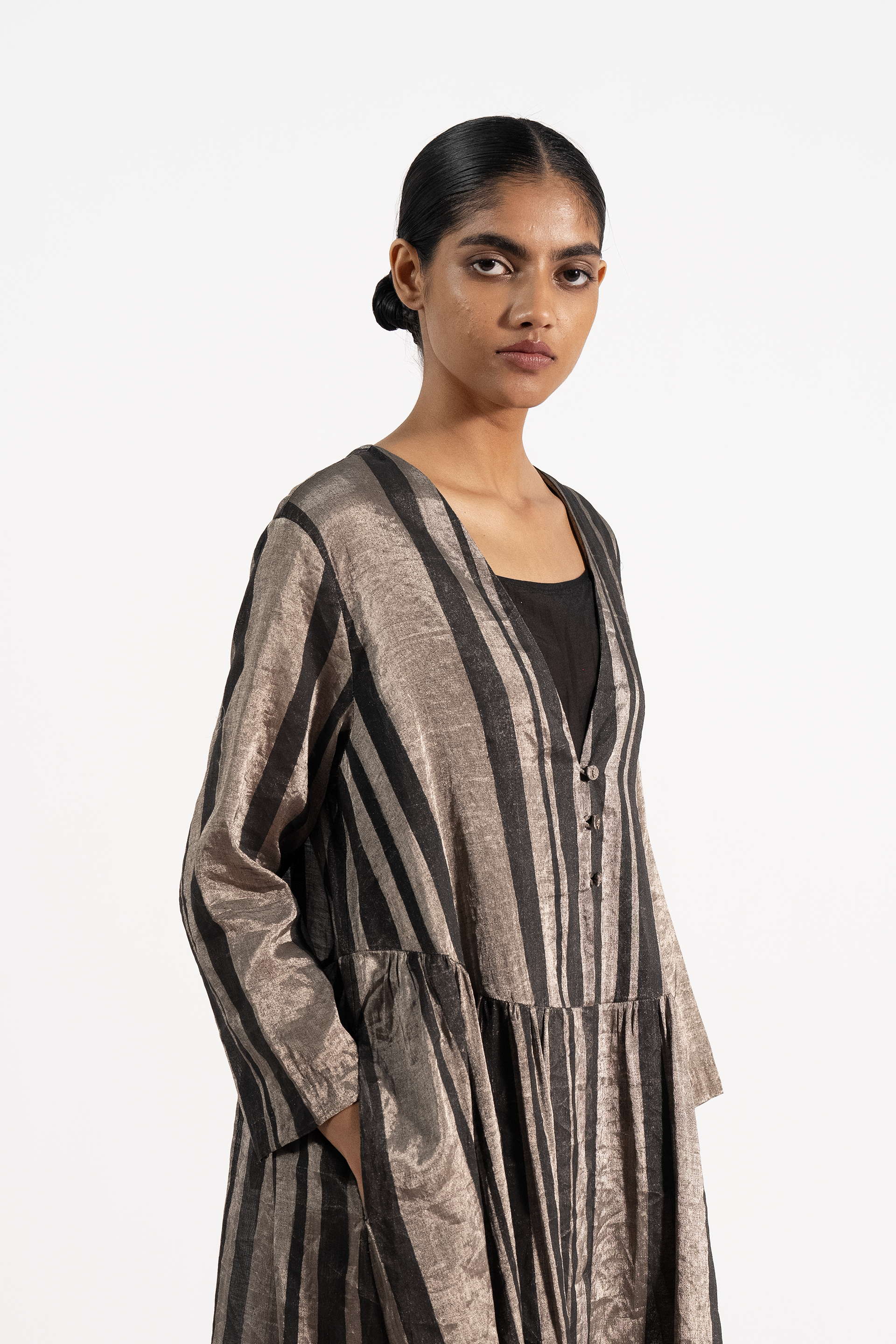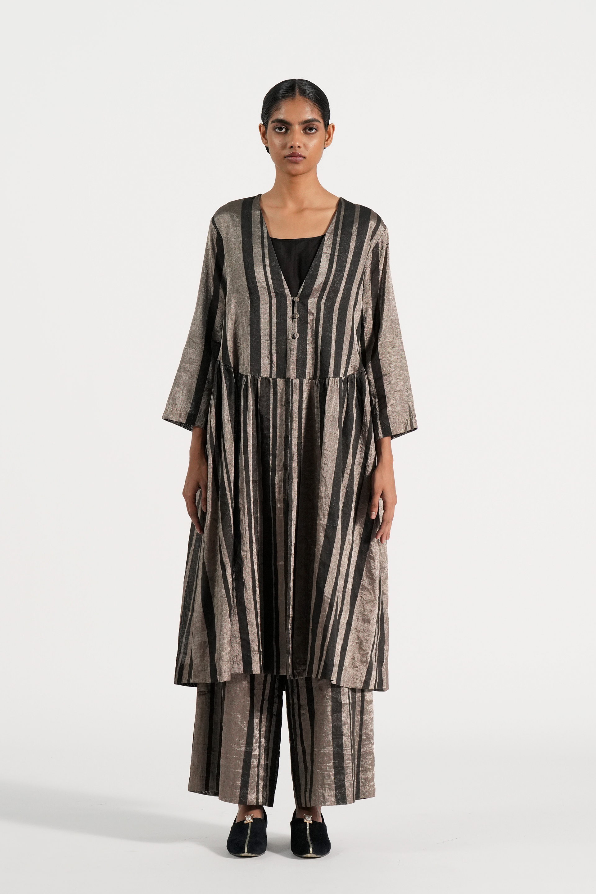 Button Down Jacket Dress With High Low Waist Gathers And Loop Button Detail.. Comes With Straight Fit Trousers With Elasticated Waistband.