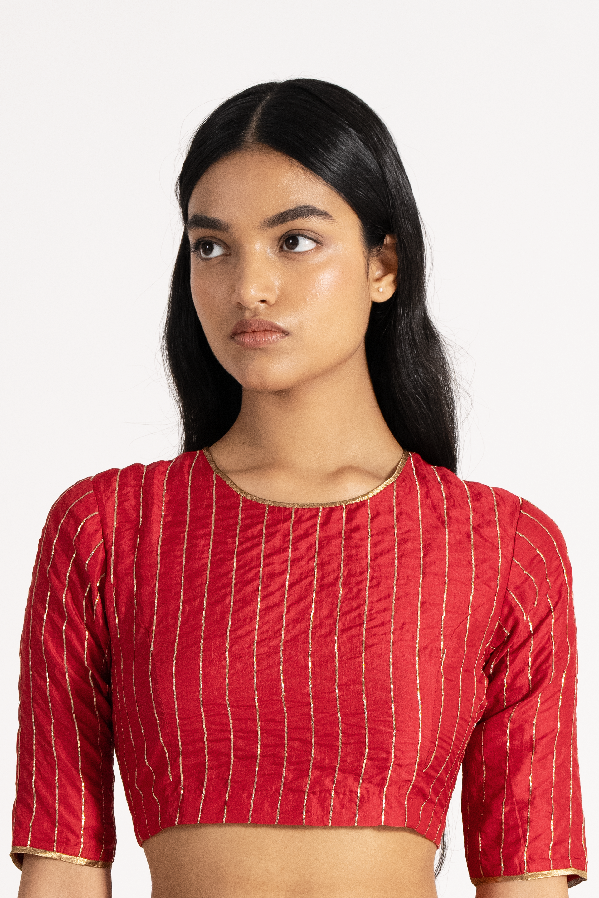 Round Neck Blouse In 100% Silk With Pitta Embroidery On It.