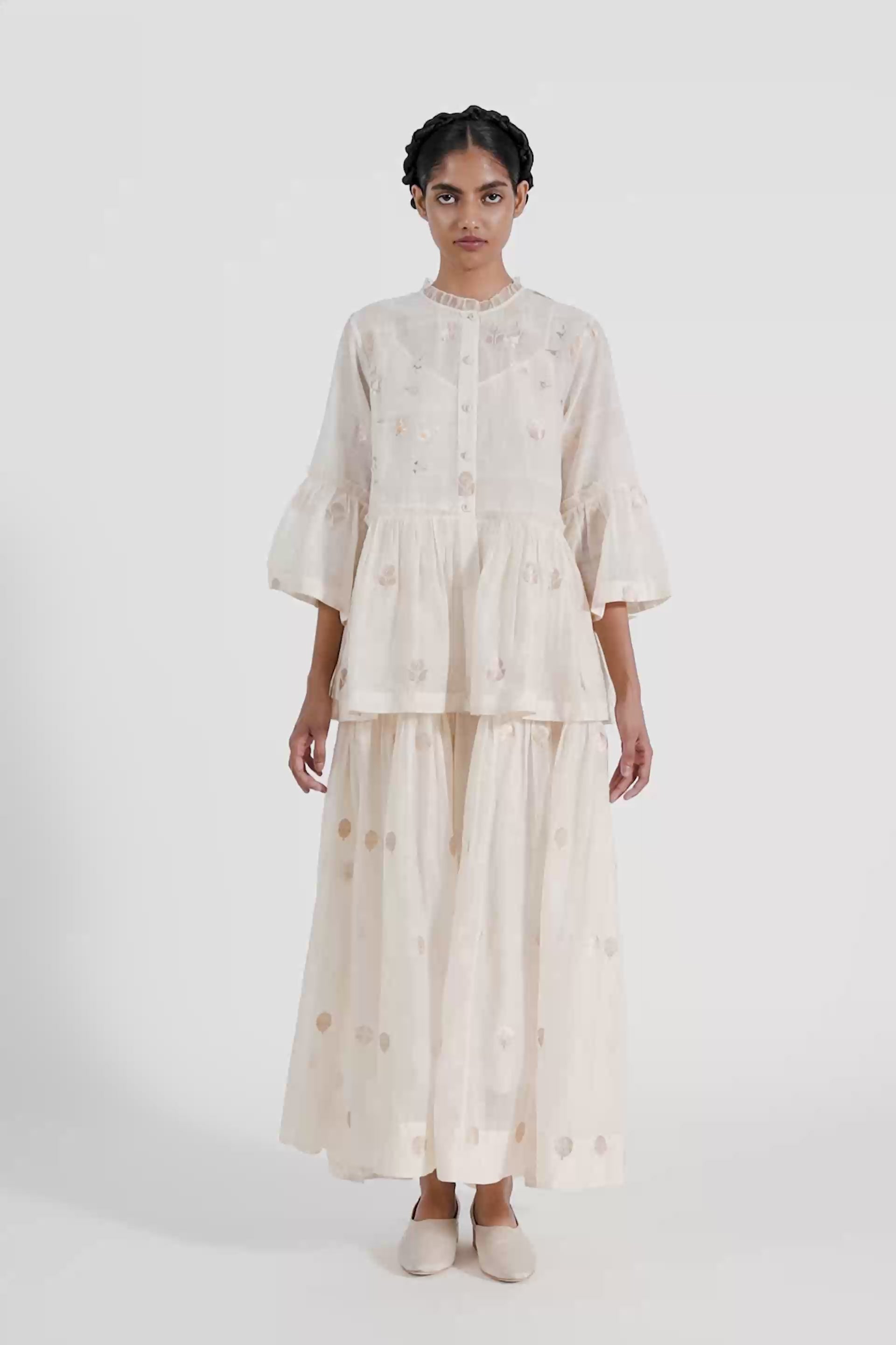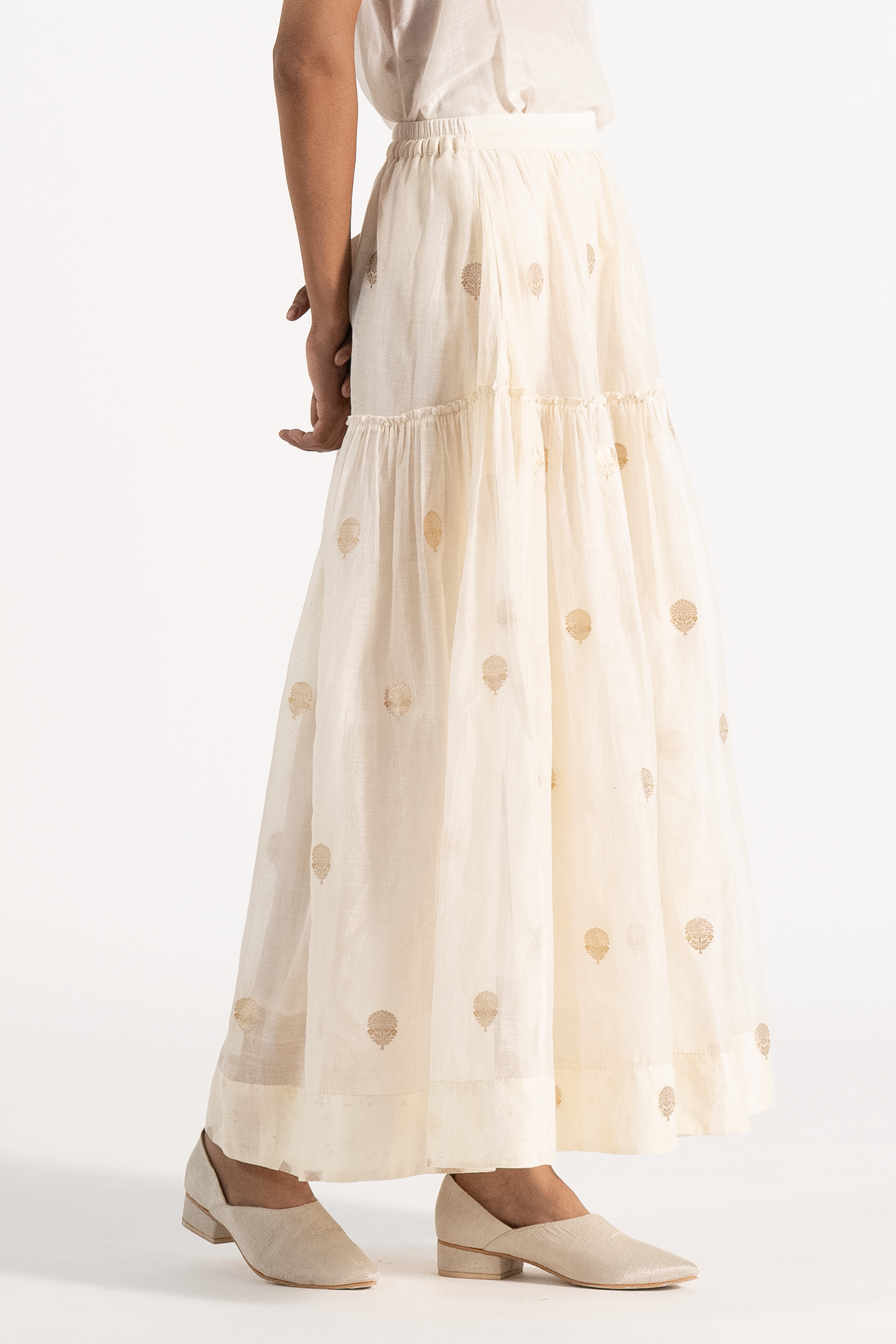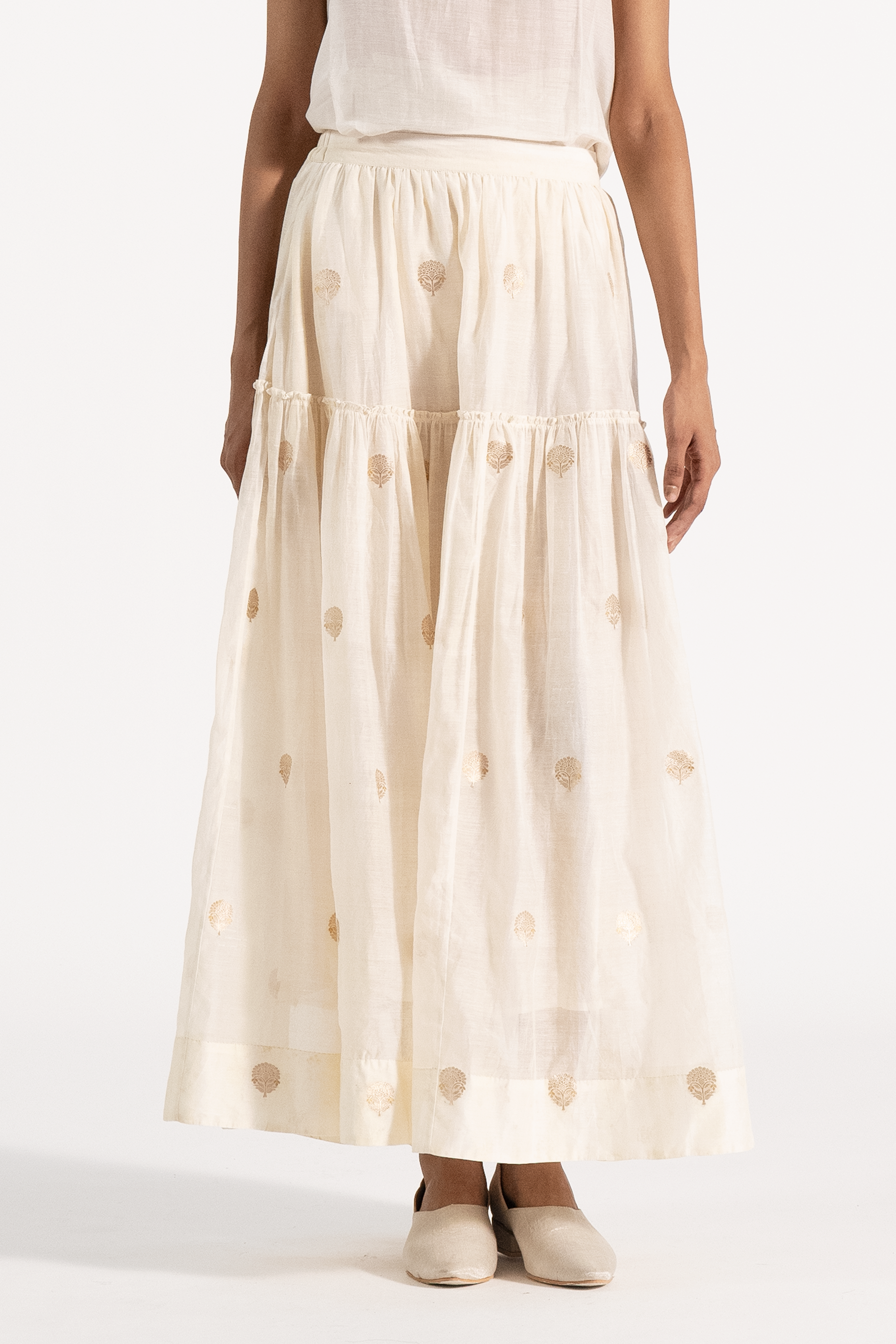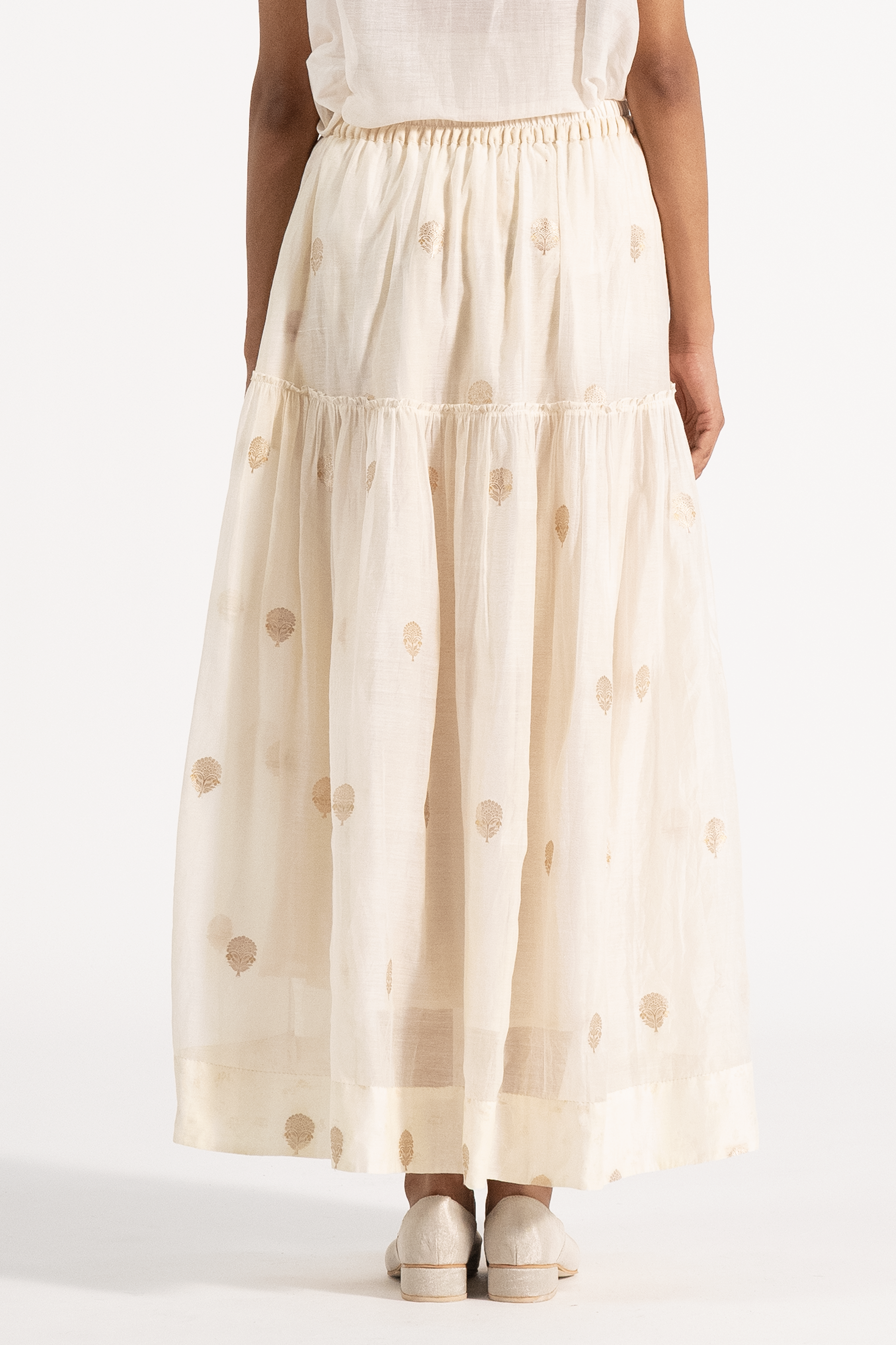 Gathered Tiered Skirt With An Attached Lining In Chanderi Cotton Silk