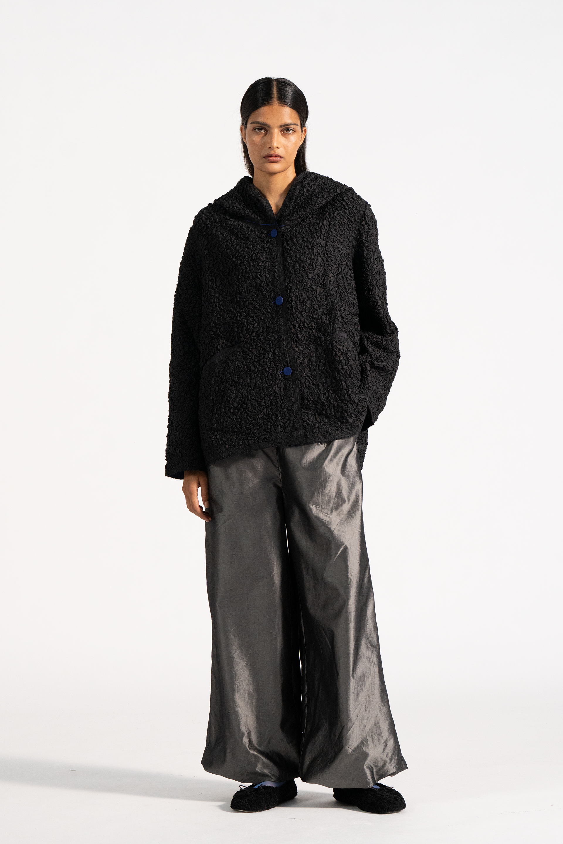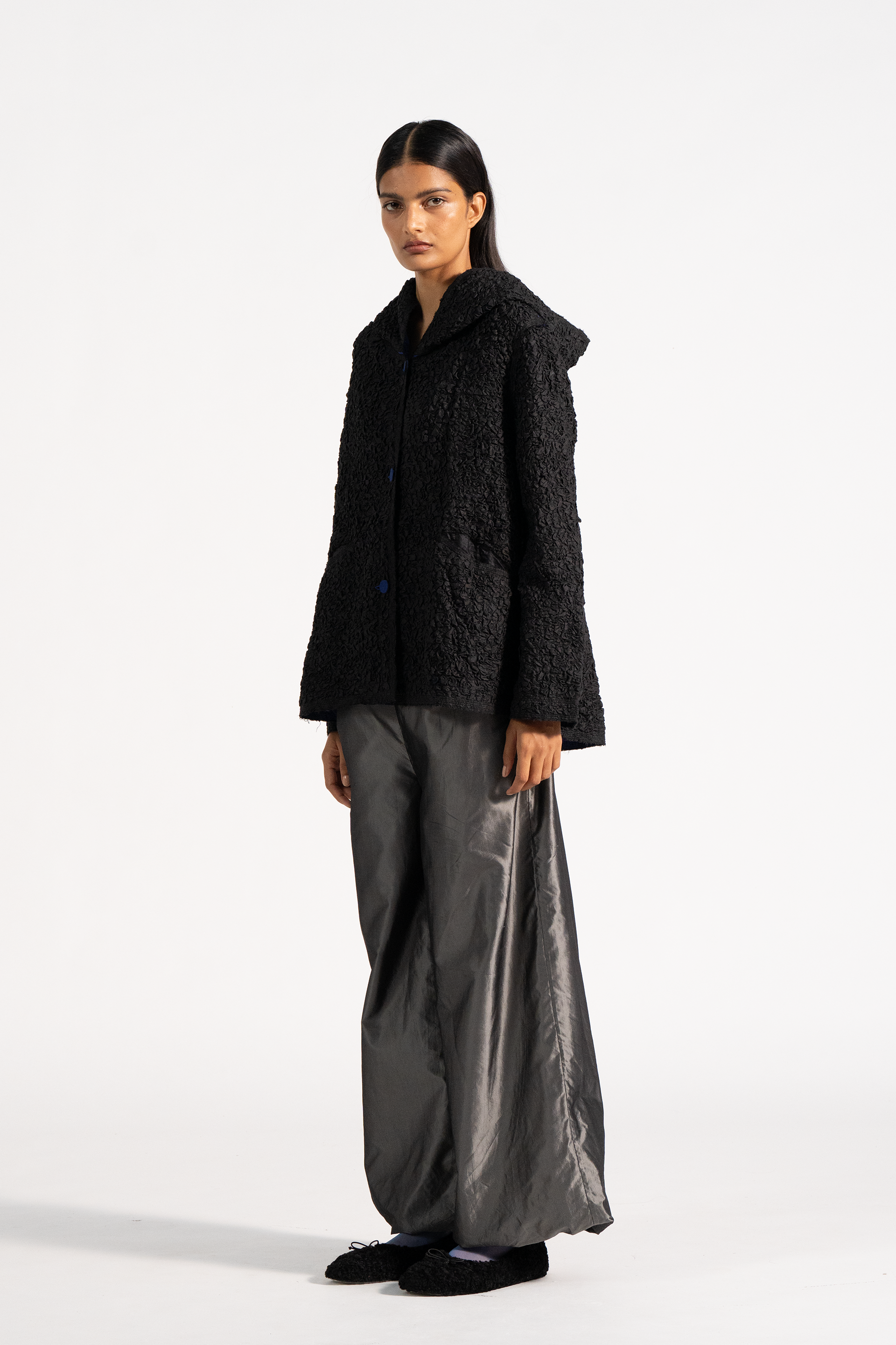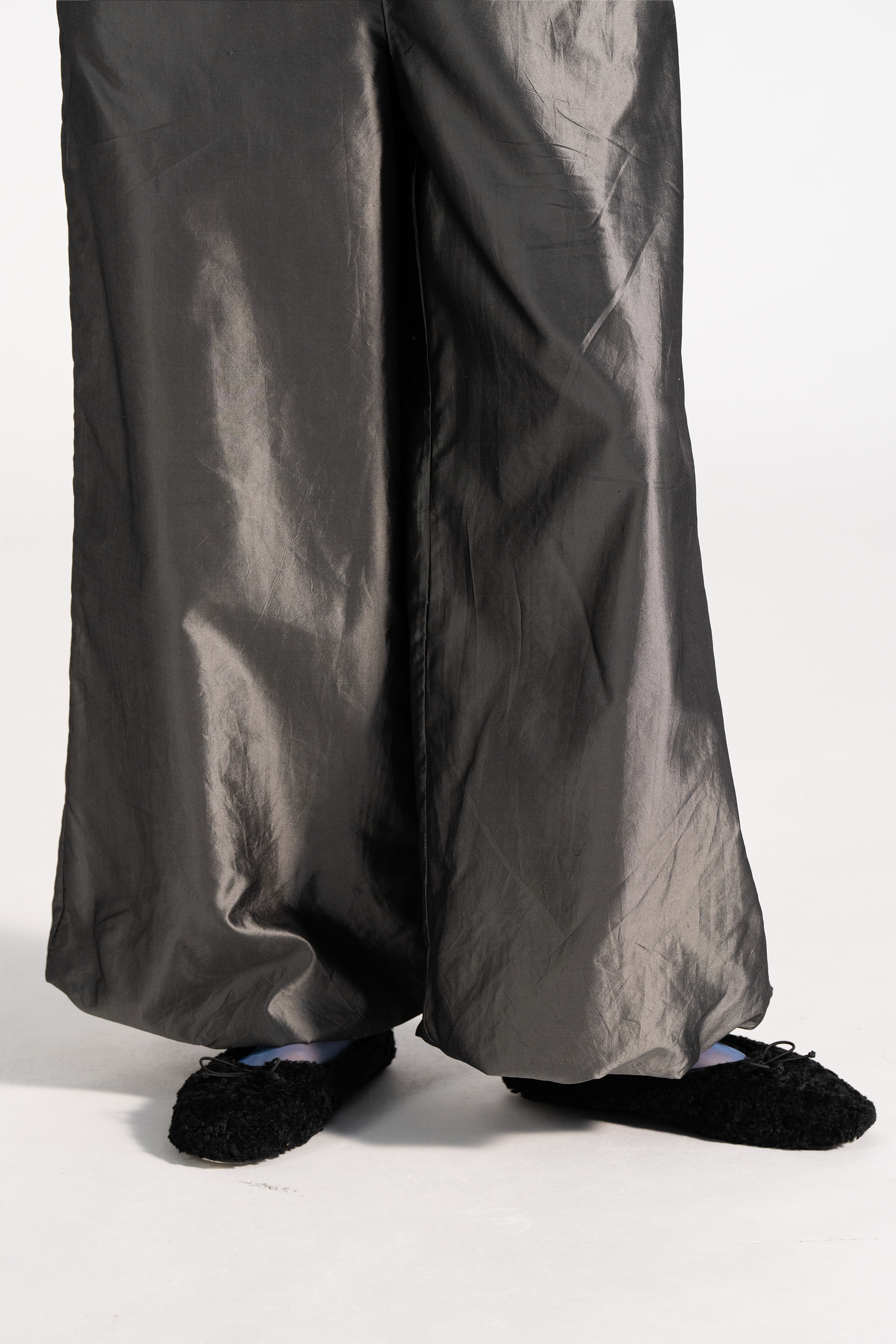 Relaxed Fit Trousers With Balloon Hem In 100% Silk Taffeta