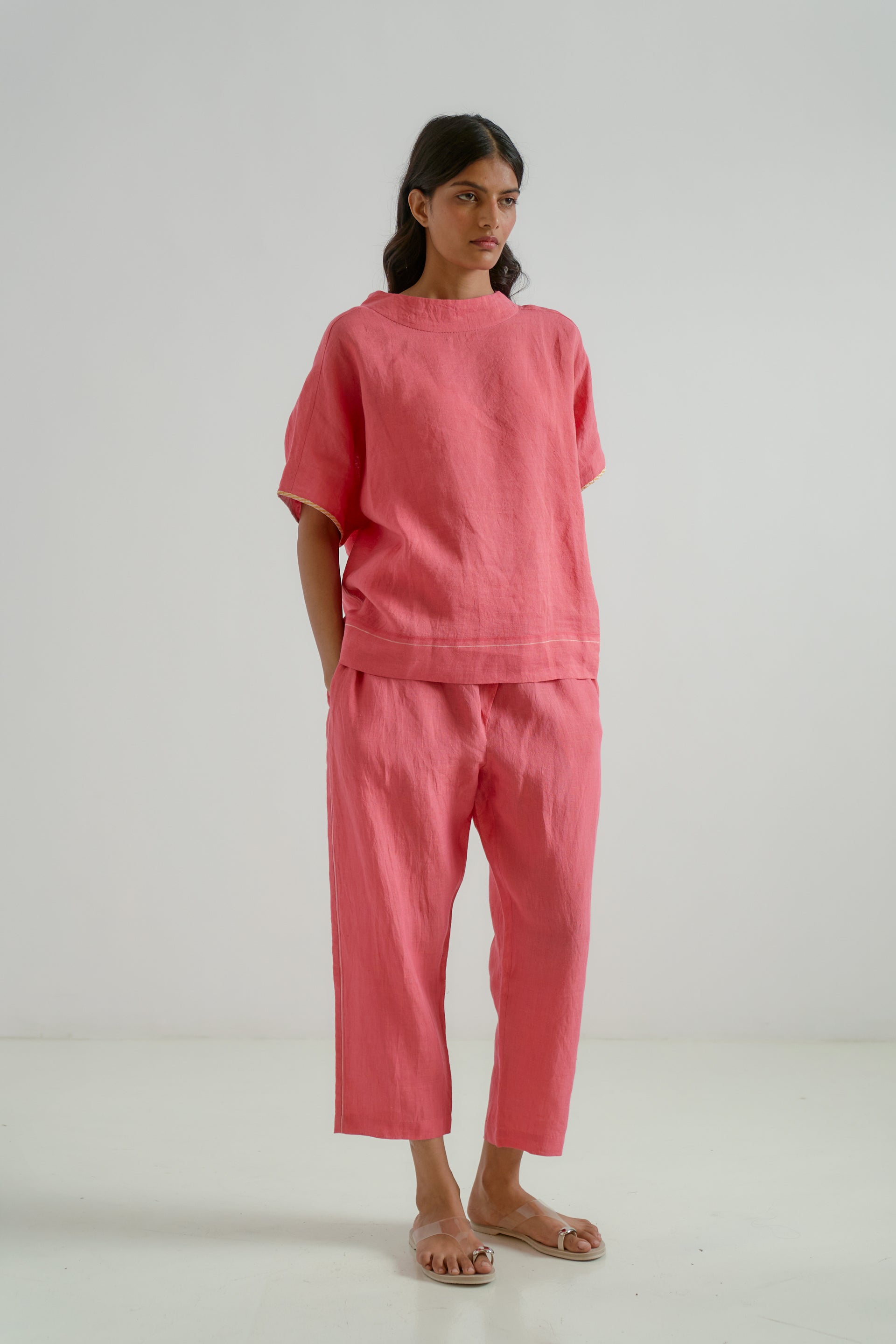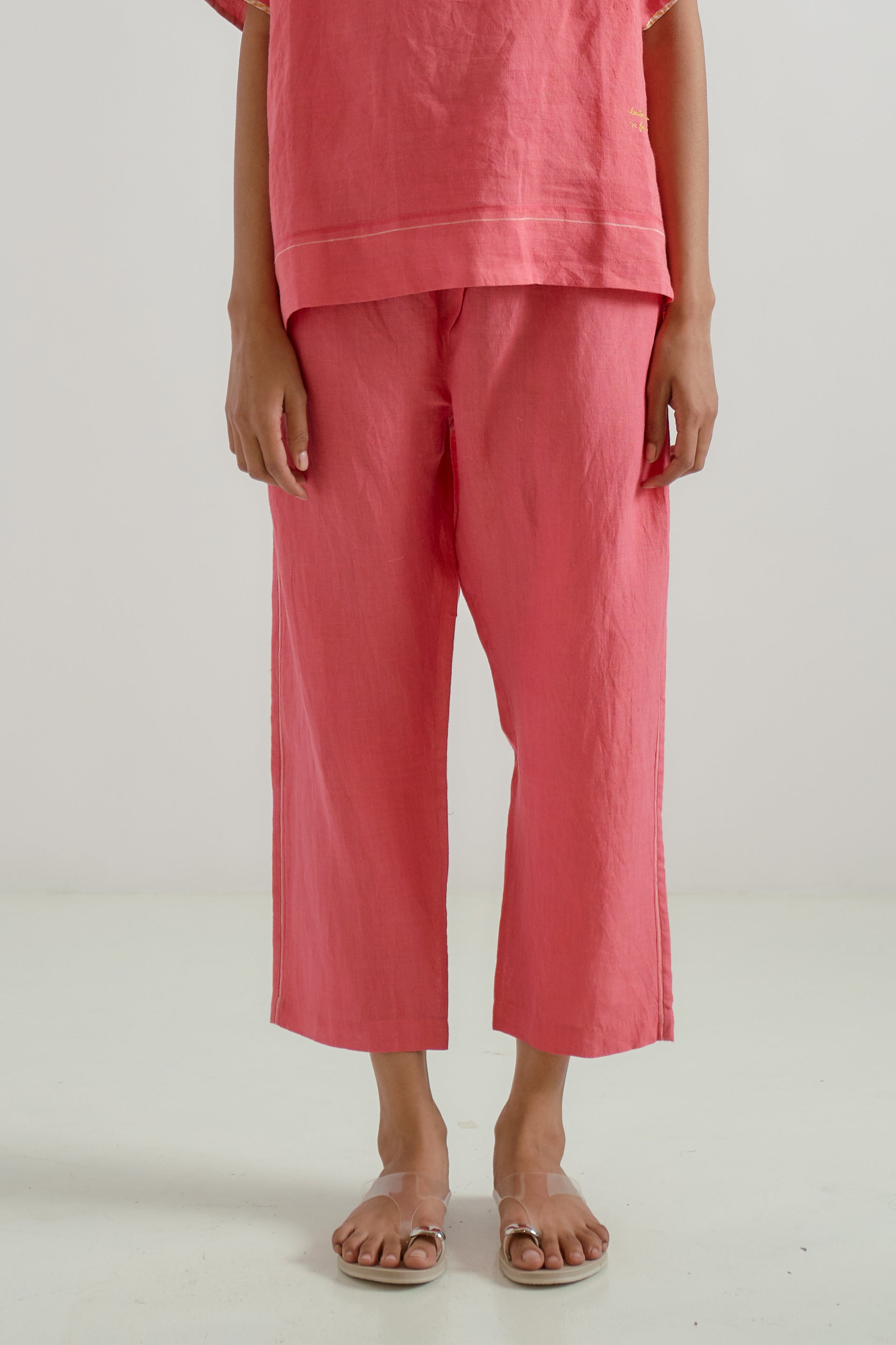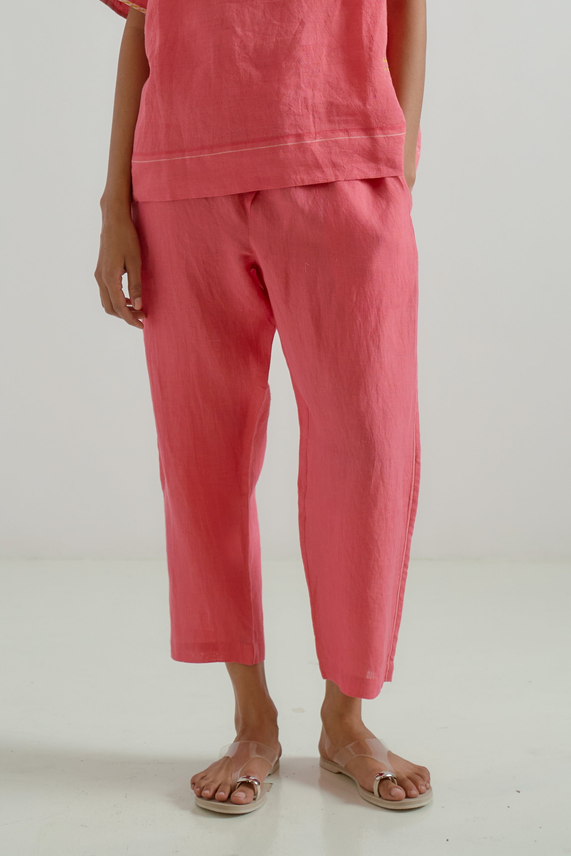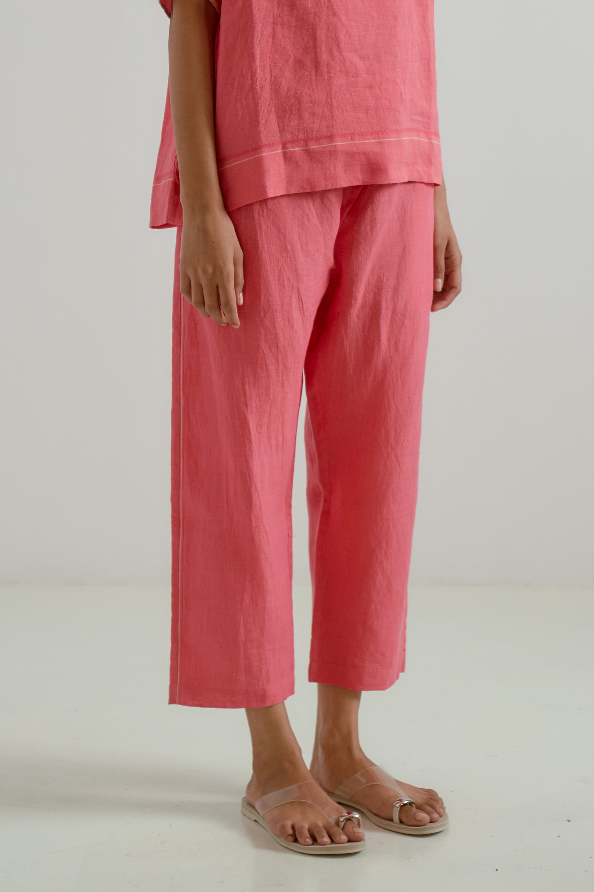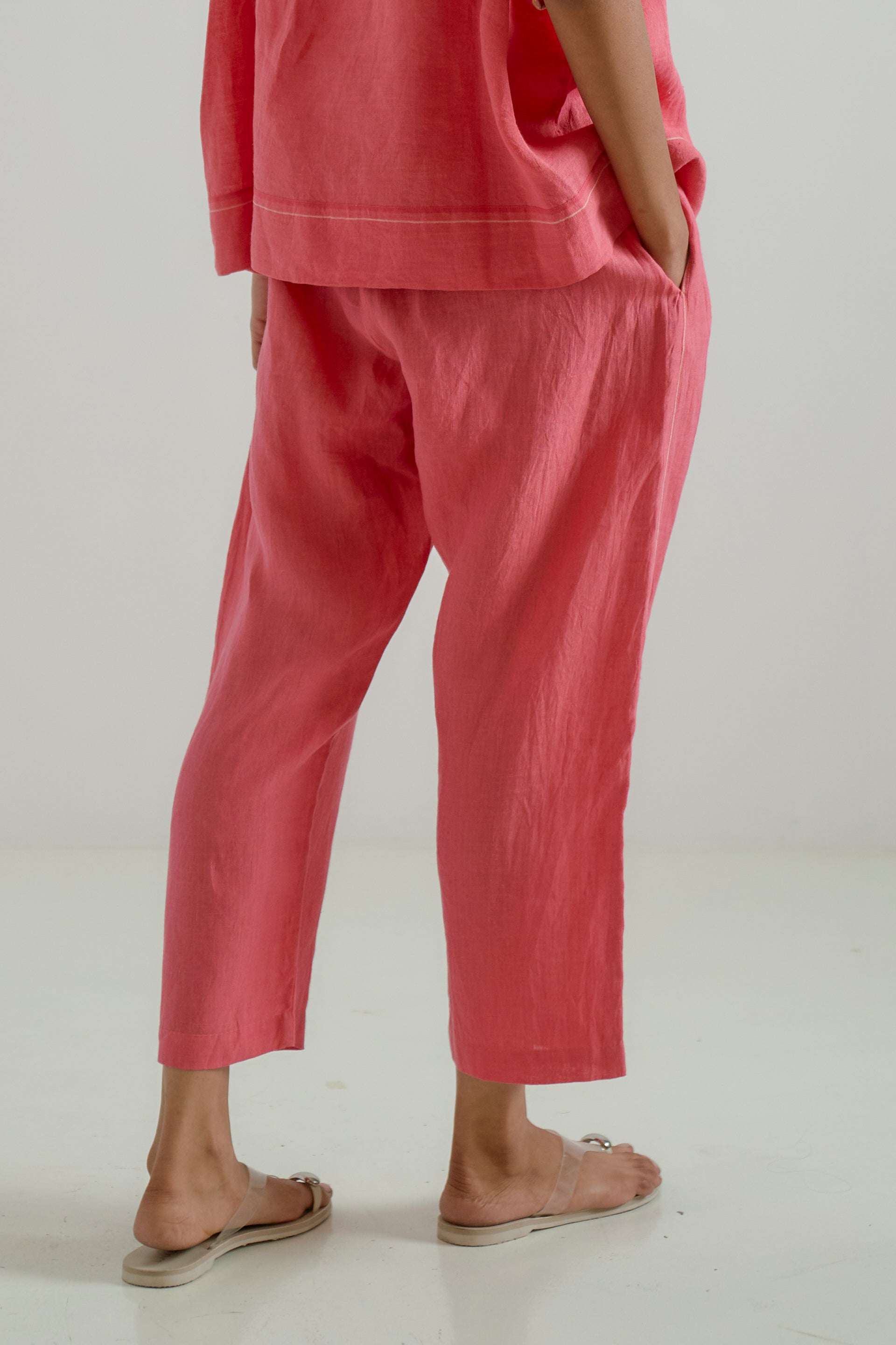 Tapered-fit, mid-rise trousers featuring contrast selvedge detailing along the seams. Crafted from solid 100% linen fabric.