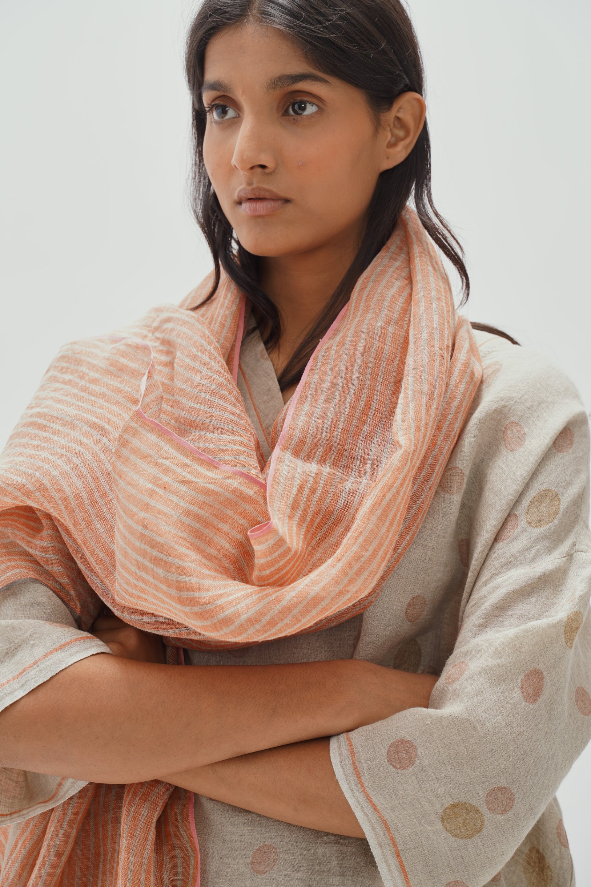 Striper stole with contrast selvedge detail.
