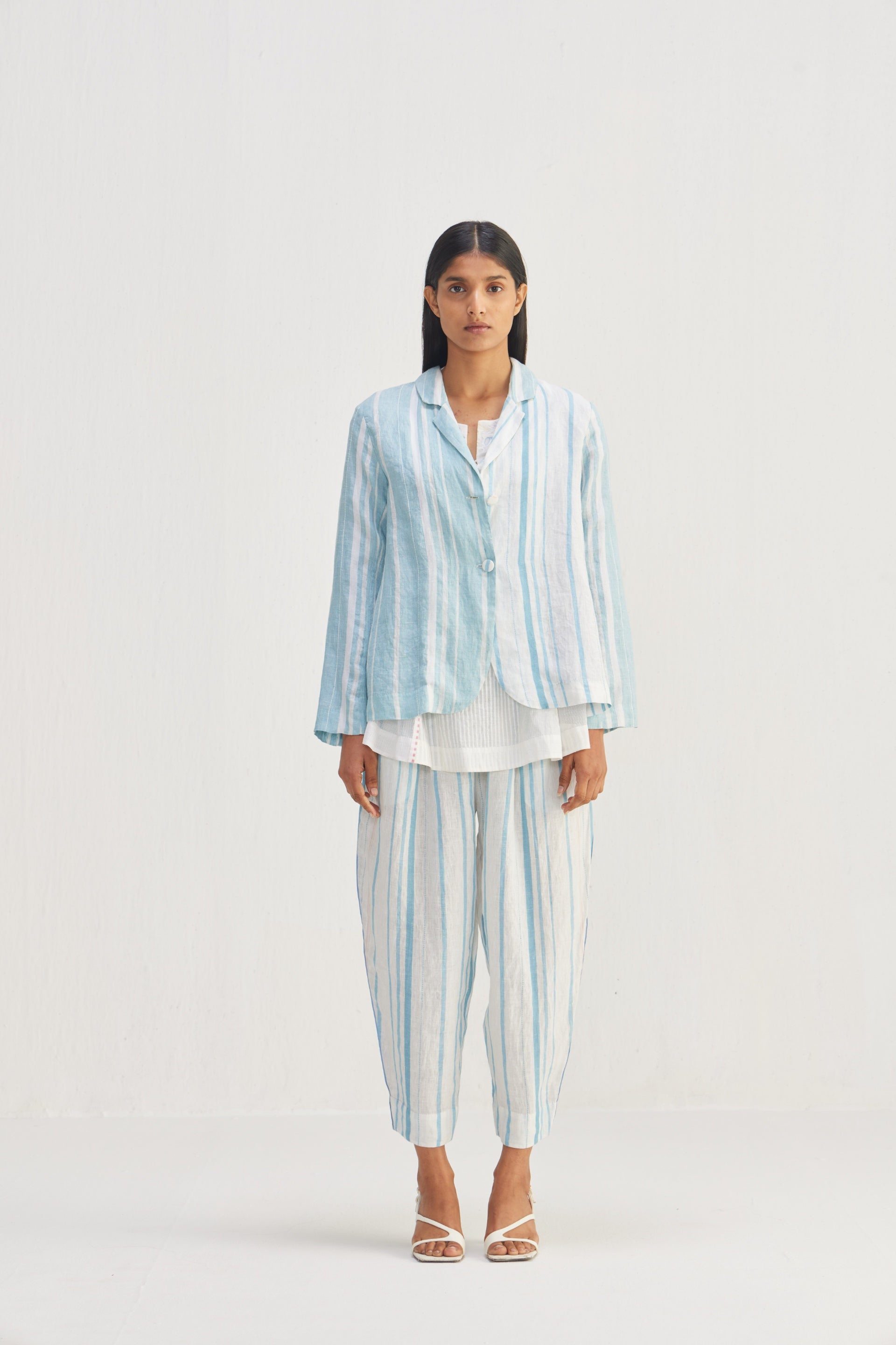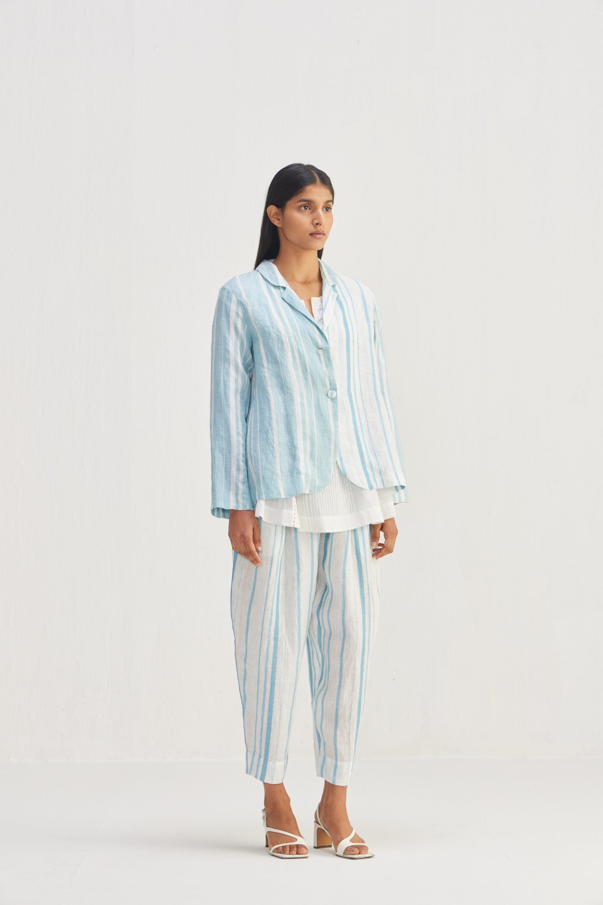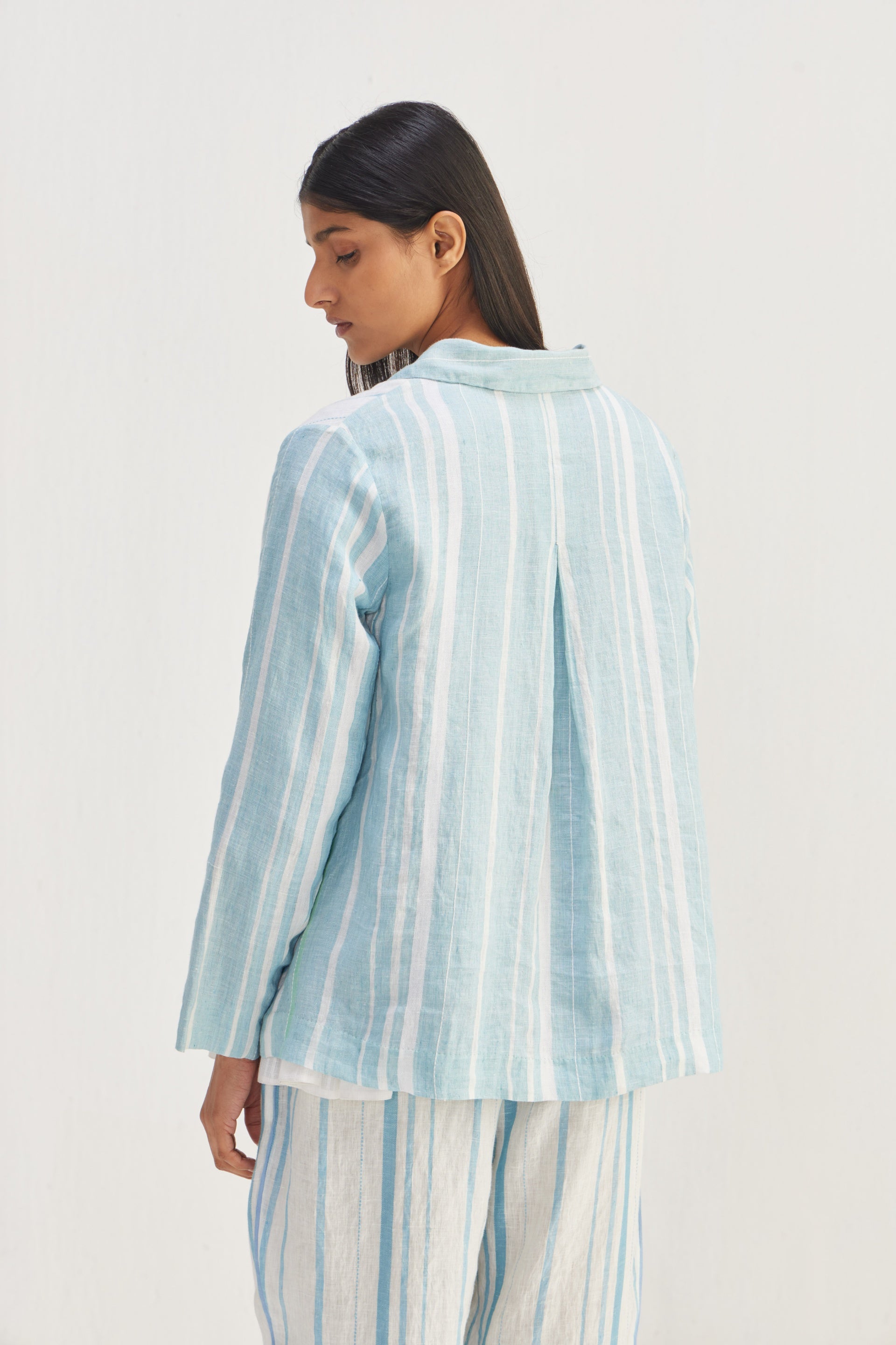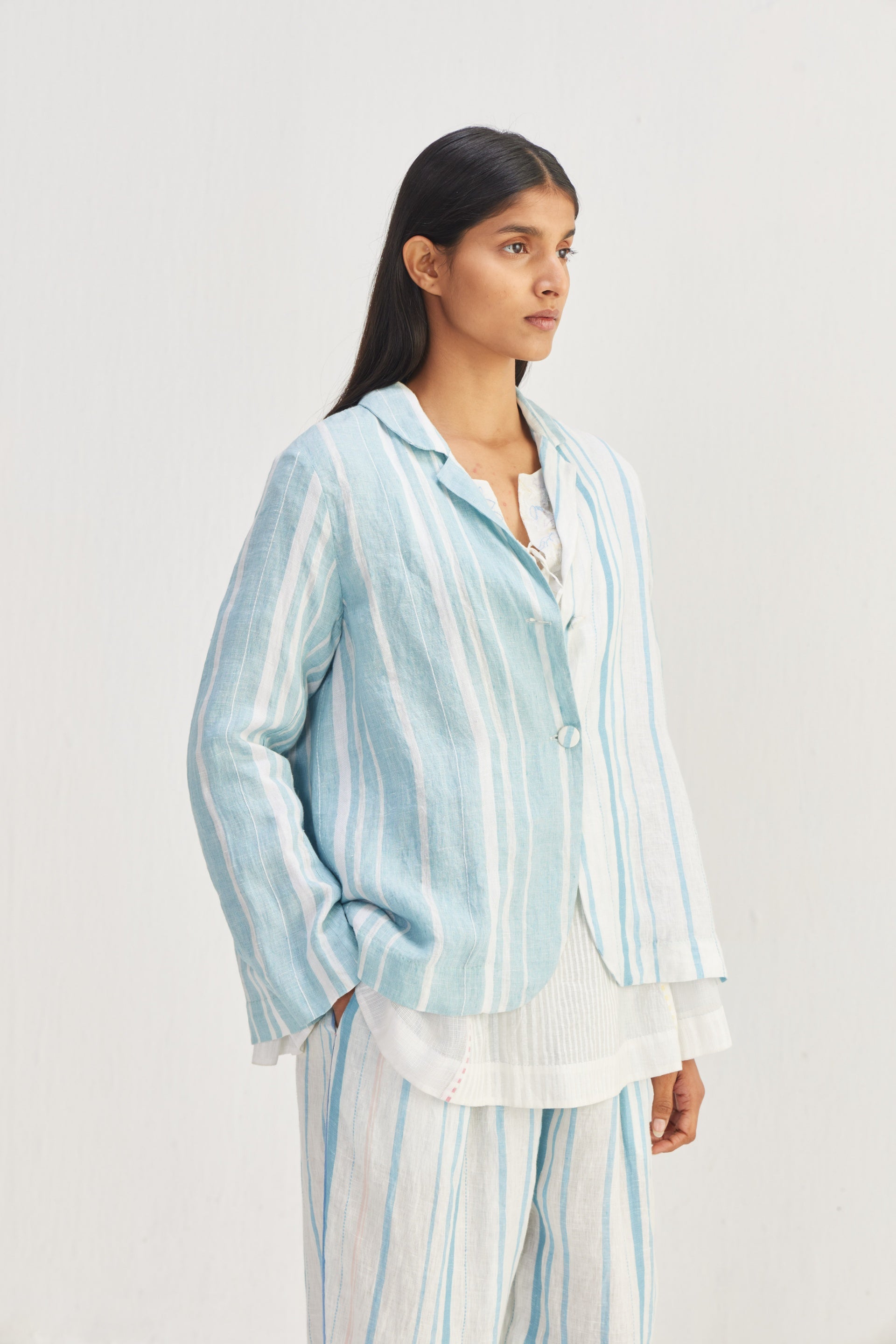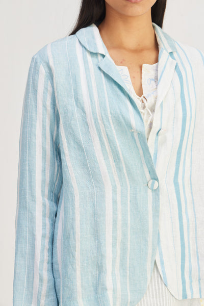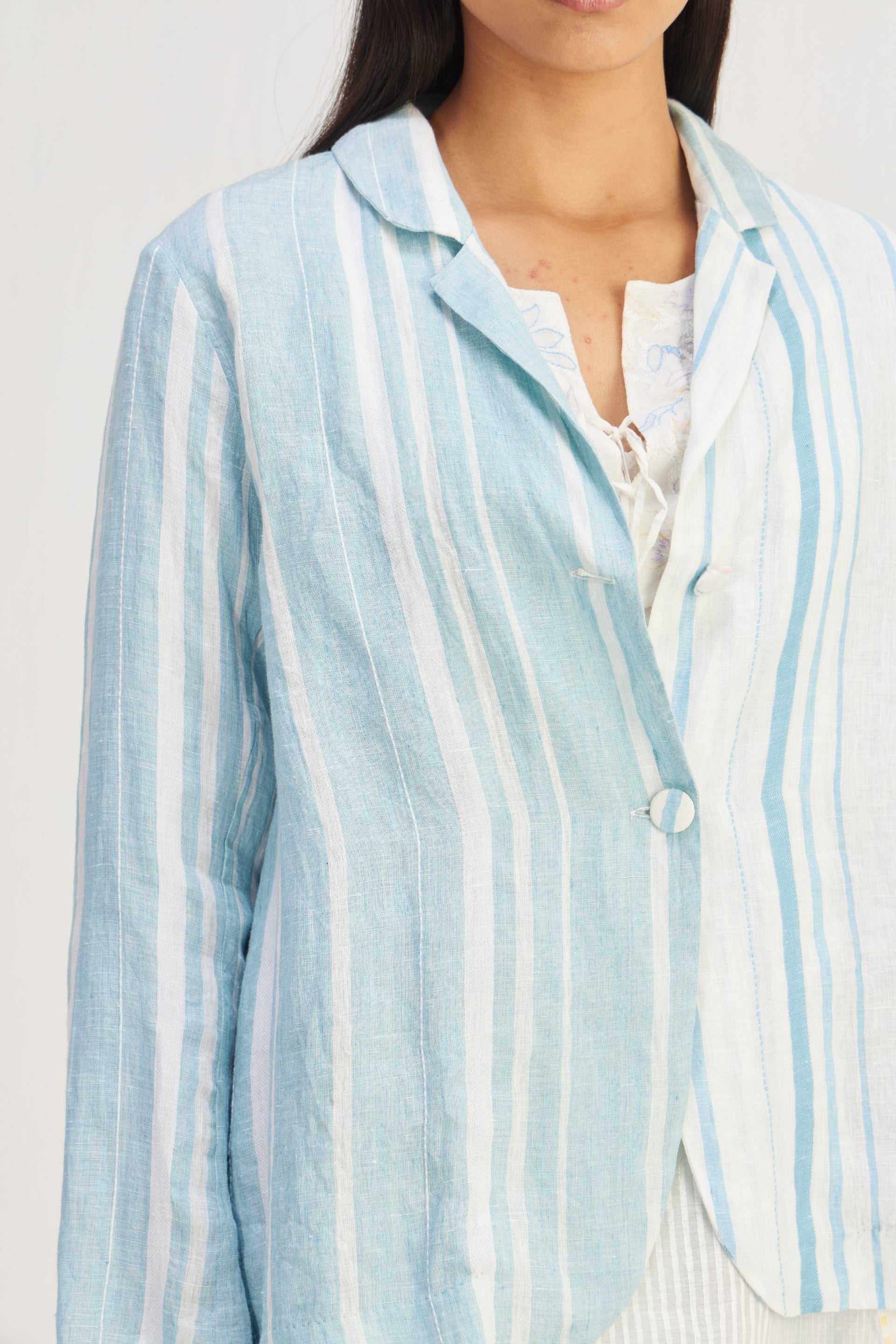 Short multipanel striper blazer. Comes with an attached printed lining.