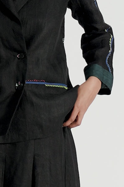 Relaxed Fit Short Jacket With Multicolor Delicate Hand Stitch Detail In 100% Linen Comes With Attcahed Lining.