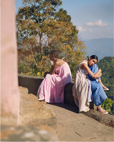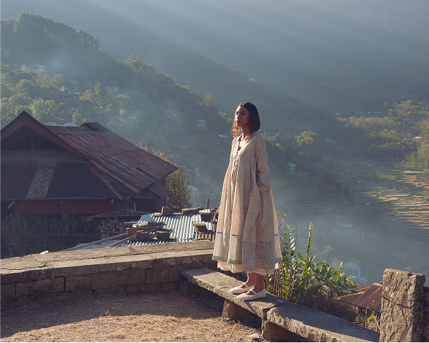 To look at far off landscapes for a sweet escape, to inquire about the way people live, love and long, are elements embedded at the core of brand Eka. For spring-summer ‘24, our line-up of saccharine-toned nostalgic dresses find familiarity in the spiraling lanes of Kohima. The city’s terracotta walls, dream-blue sky, whisper-sheer clouds, kind and warm-hearted people, form the backdrop for a spring-summer ‘24 collection of watercolour layers.