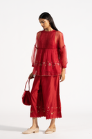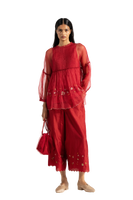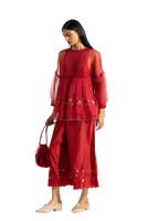 Relaxed fit tiered top in 100% silk organza with multicolor floral embroidery. Comes with a complimentary cotton silk lining.