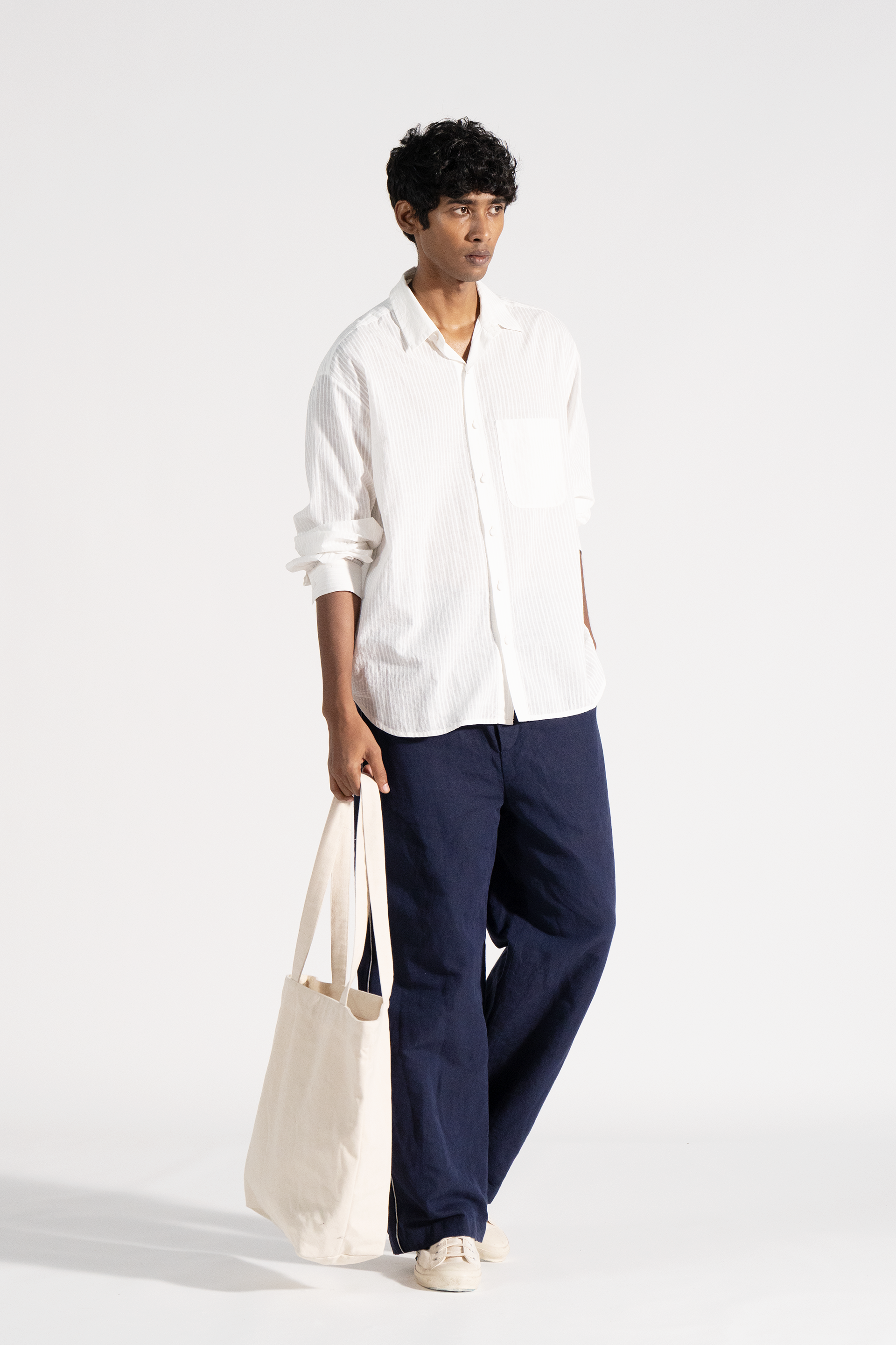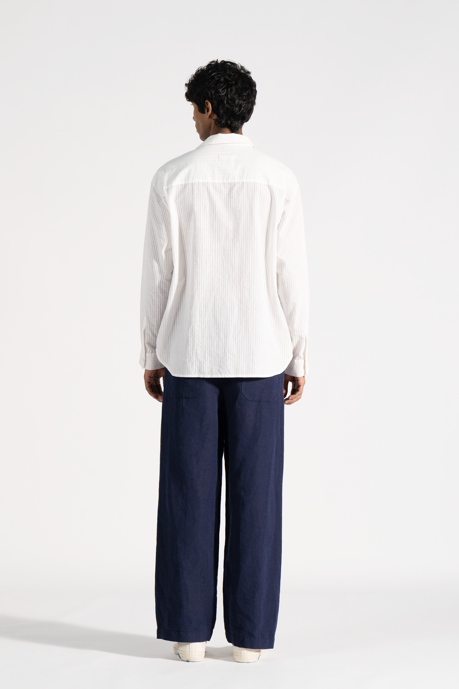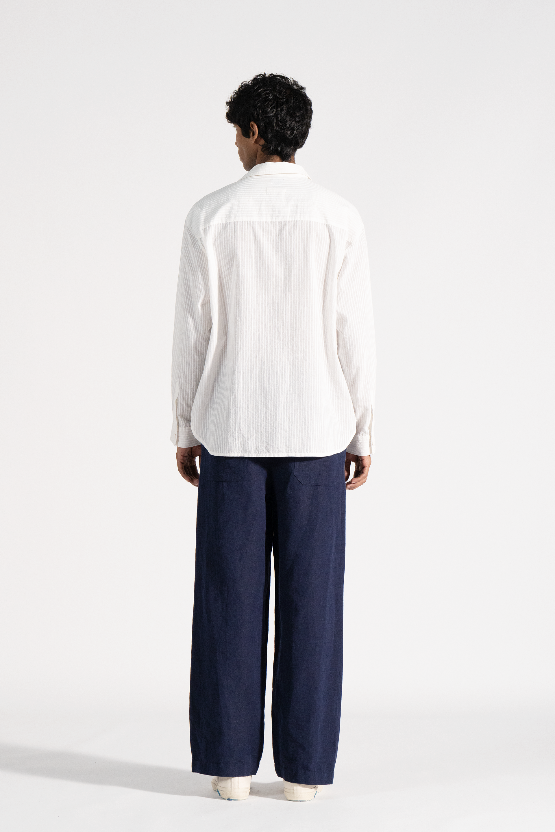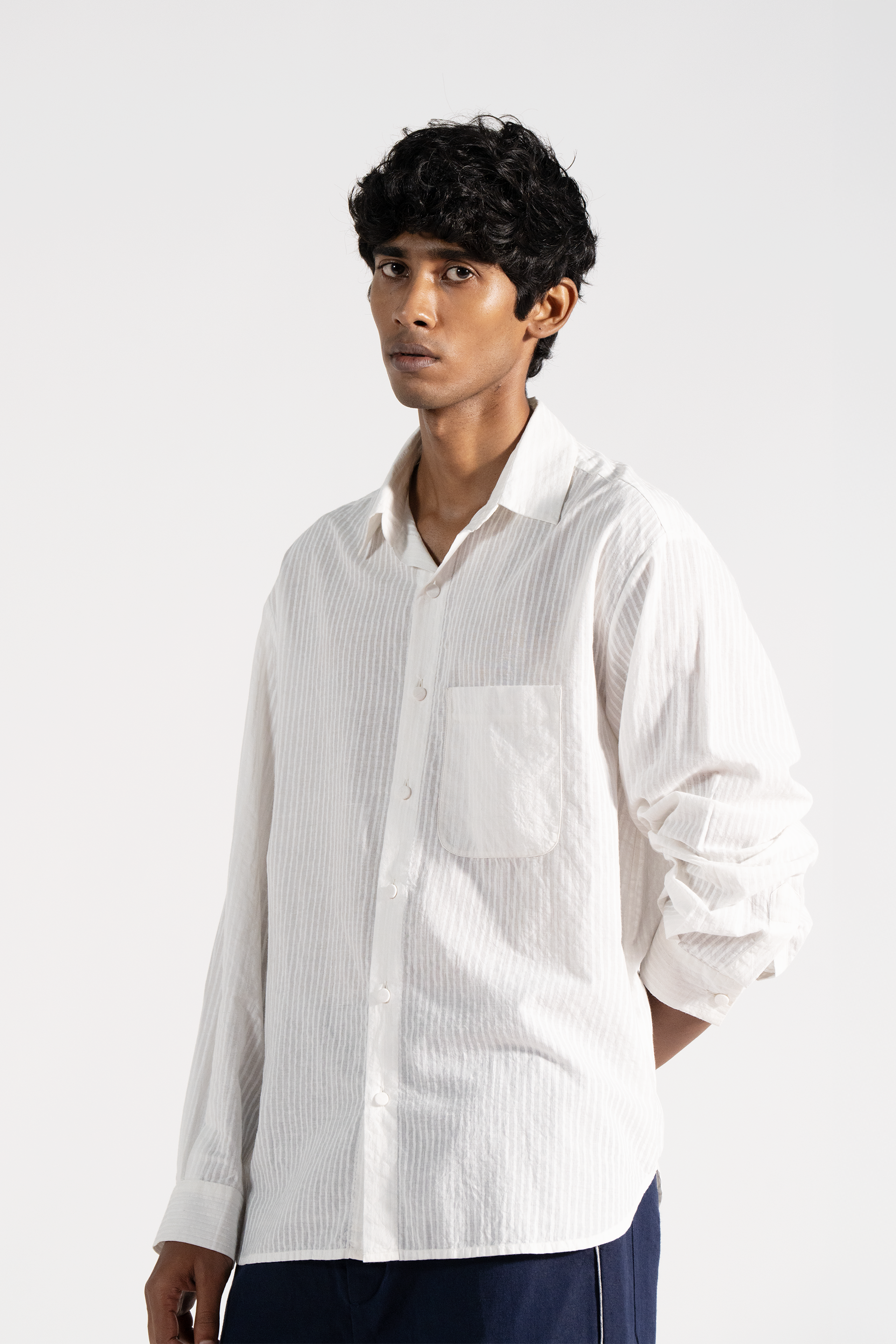 All-over handblock stripe print shirt in khadi.