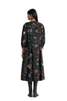 Button Down Puff Sleeved Midi Dress With All Over Floral Print In 100% Merino Wool.
