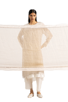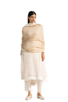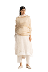 Zari linen gauze dupatta with tissue border and gota binding.