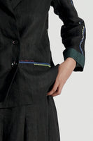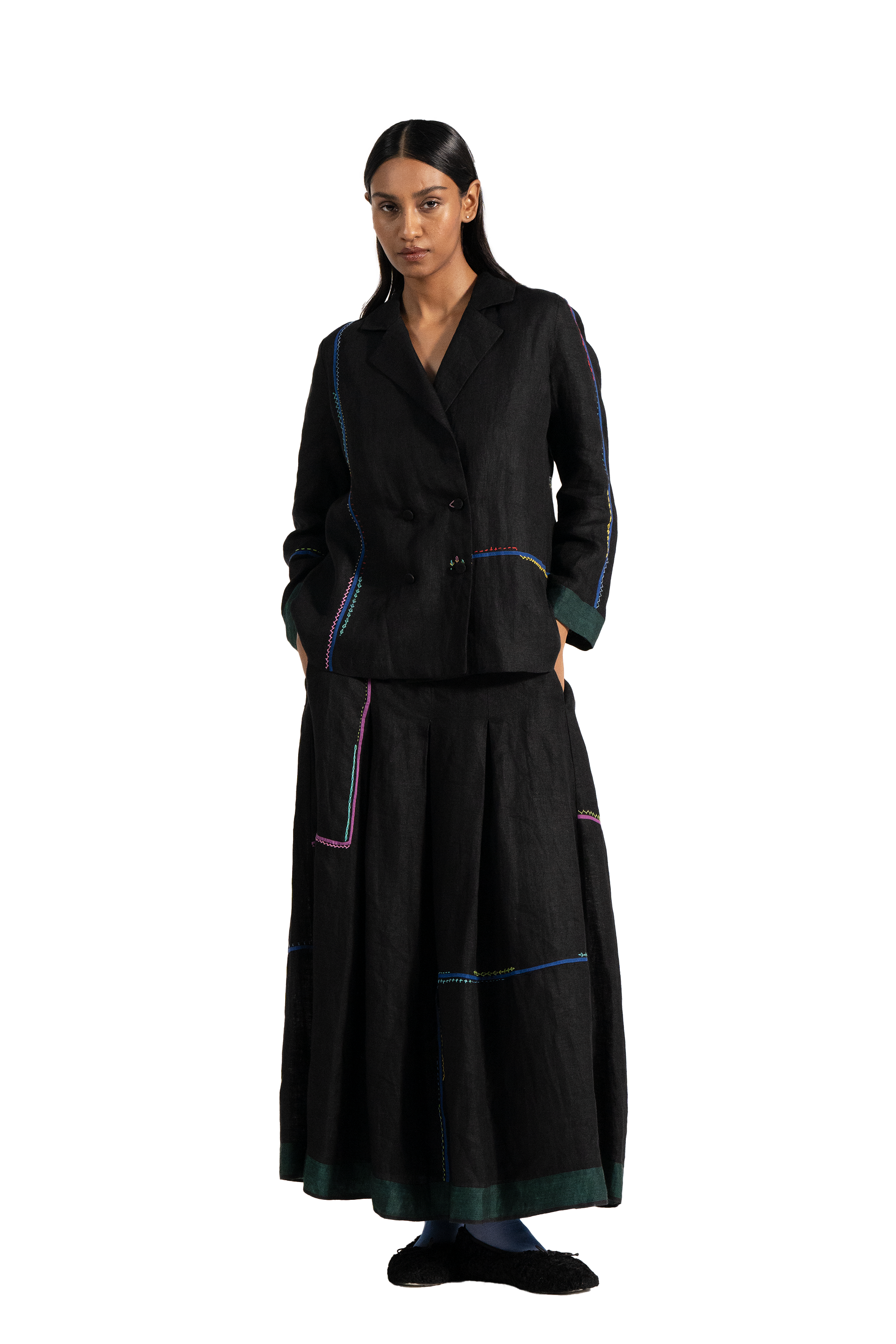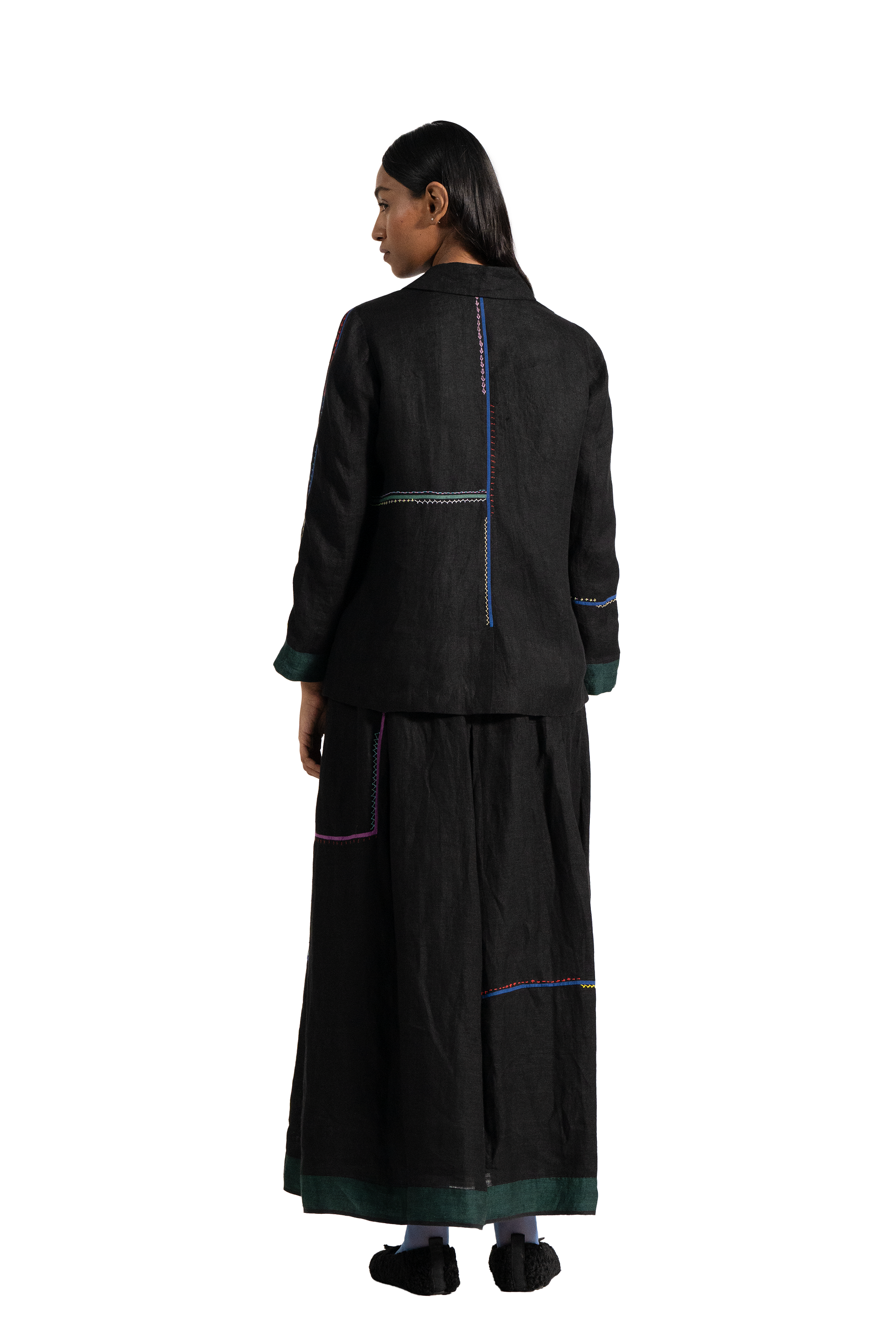 High Waisted Maxi Length Skirt Multicolor Hand Stitch Detail 100% Linen.