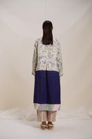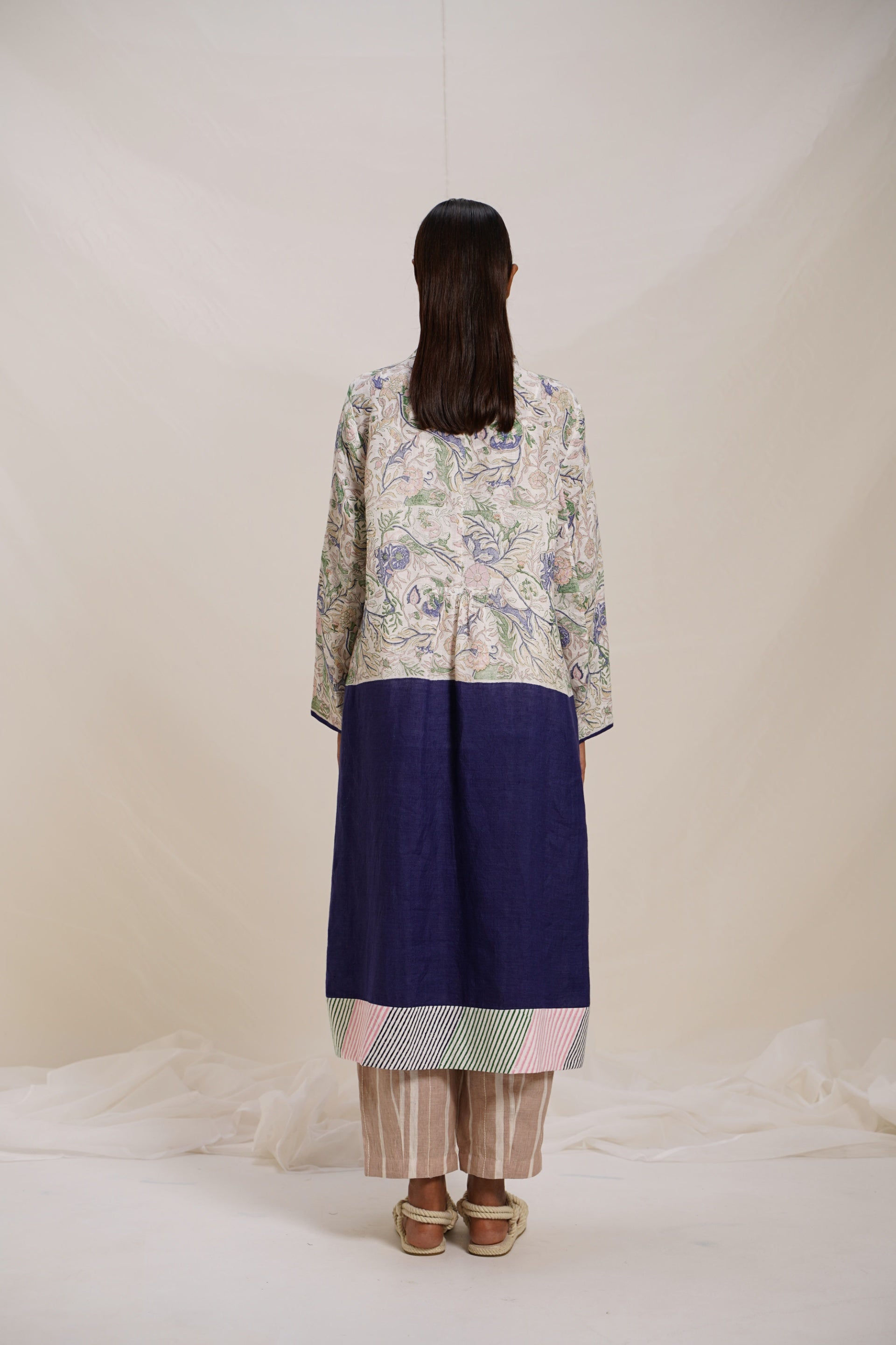 Long length half hand block printed, half solid jacket with printed striper piping.