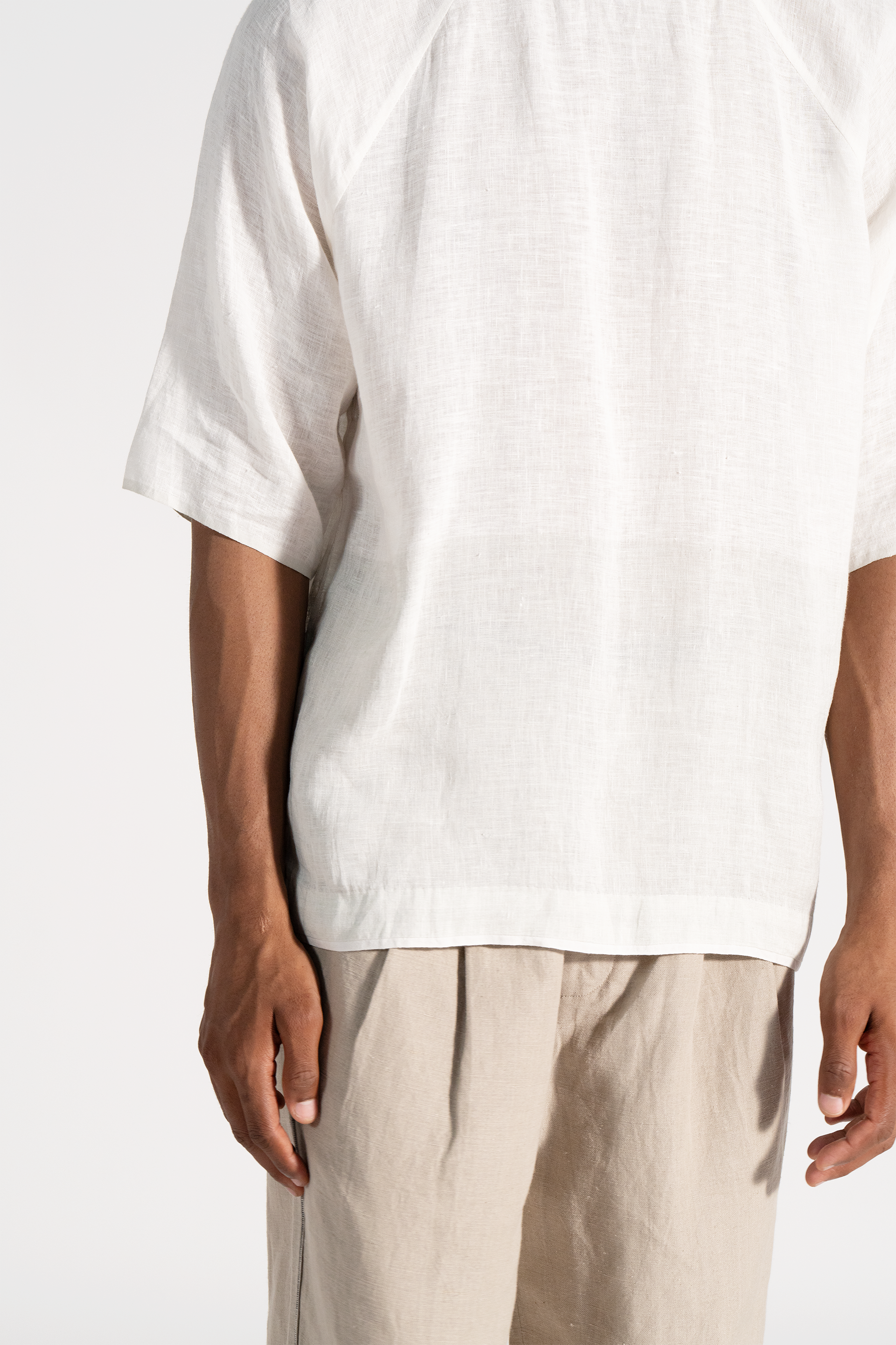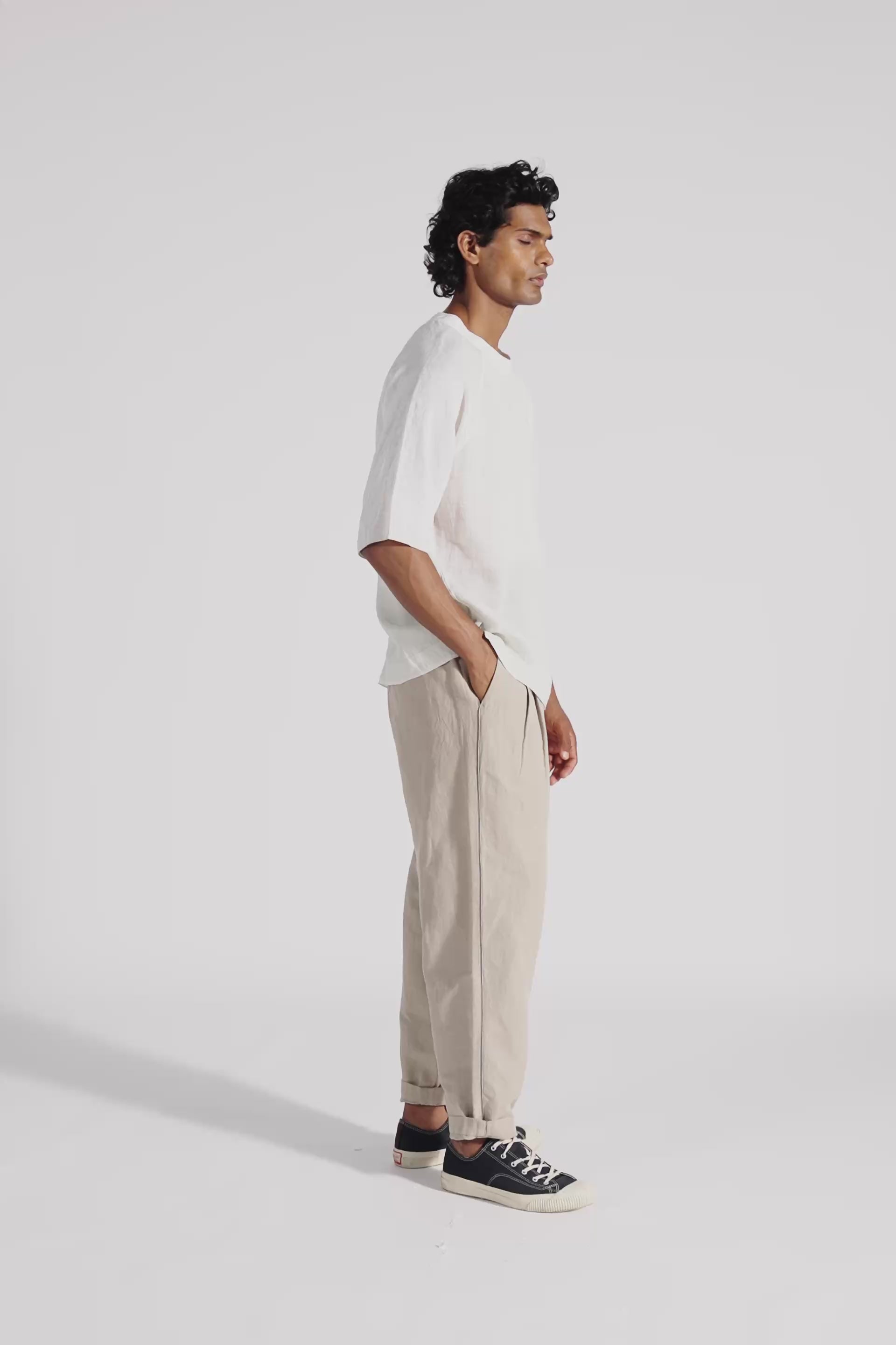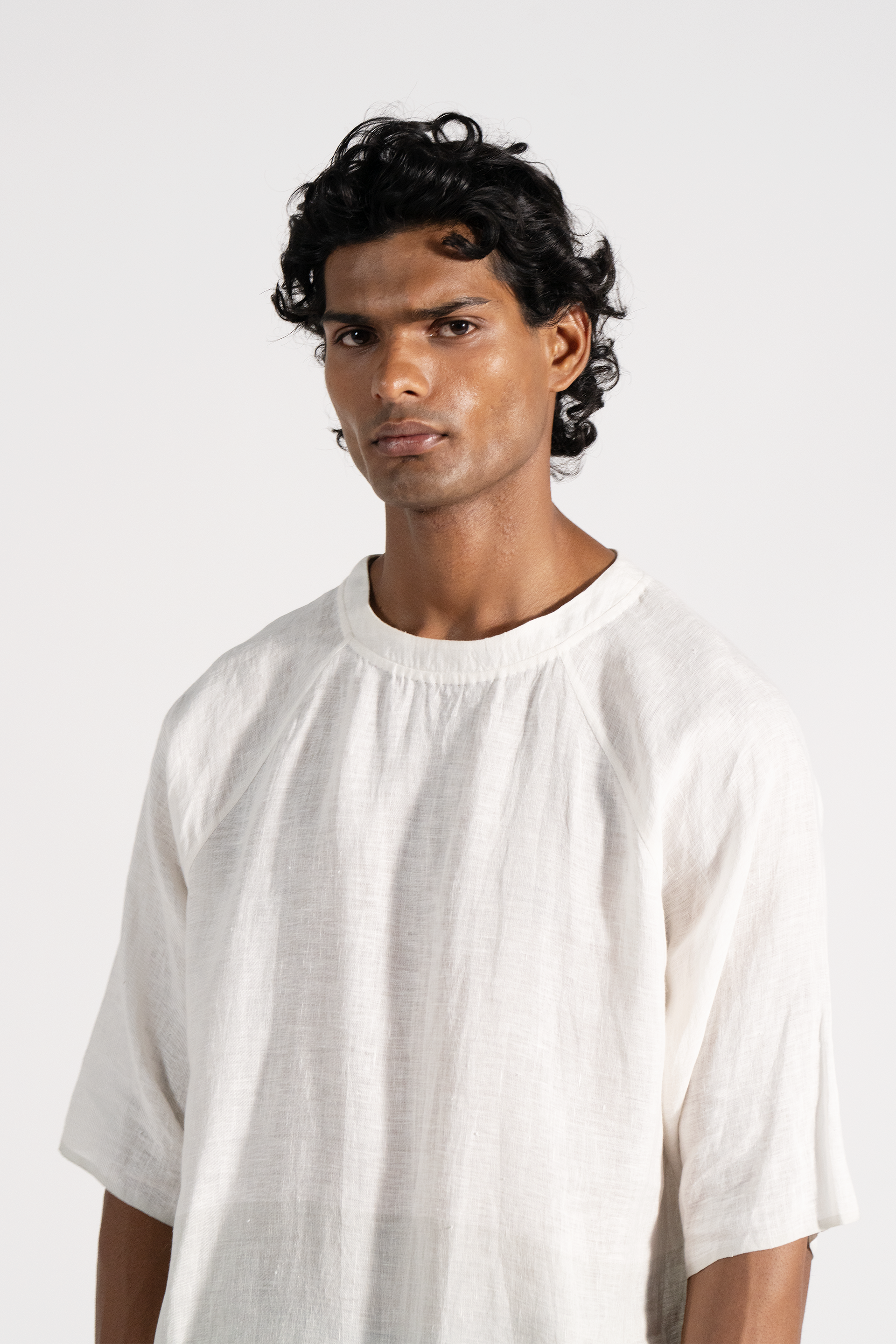 Crew neck, relaxed fit with raglan sleeve linen t-shirt in dual tone.