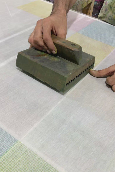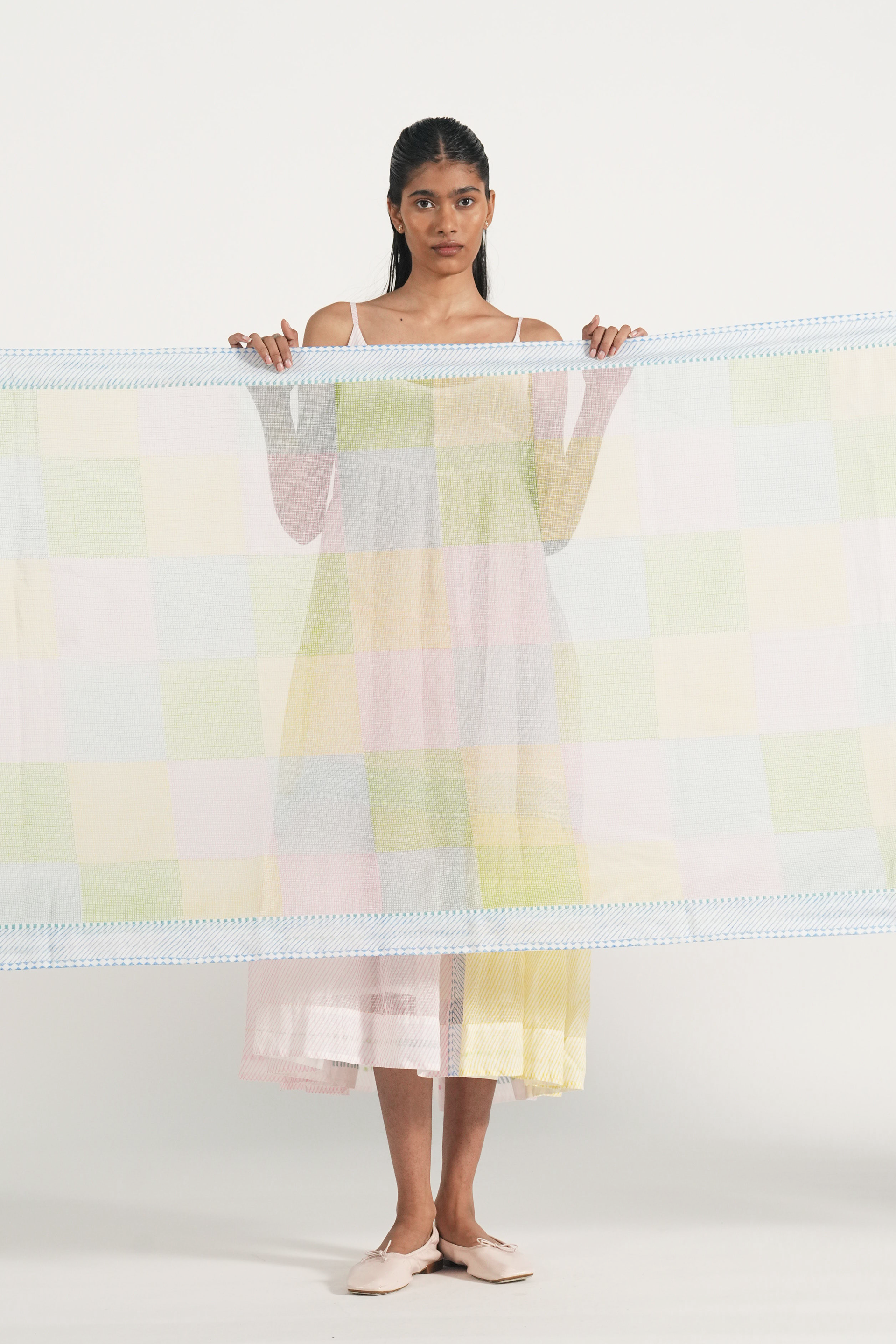 Dupatta stole in multicolor hand block printed checks with hand block printed border finishing on all sides