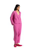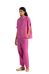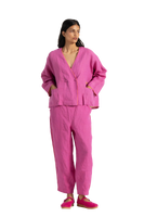 Relaxed fit tapered hem trouser with dart detail on hem in 100% linen.